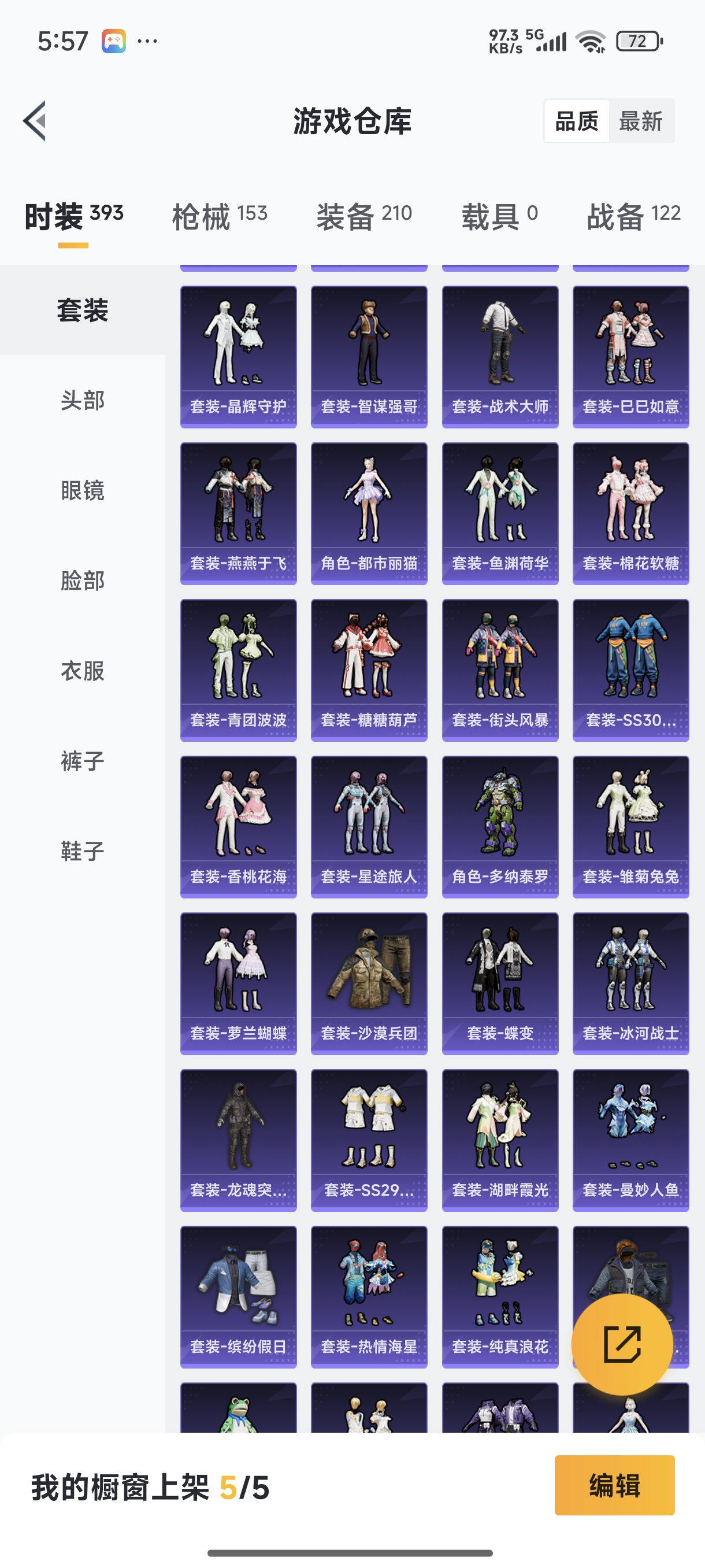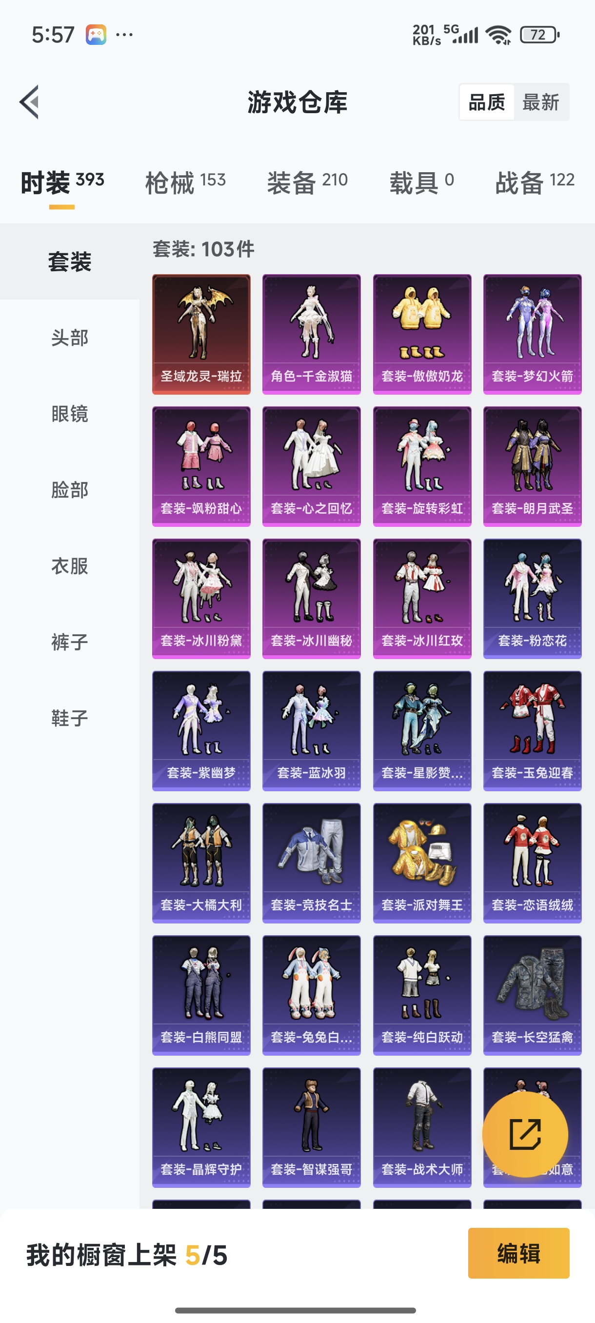 【苹果QQ】122套装-159枪皮-0载具 奇异狩猎者 2号机款机体服 梦幻火箭 音爆索尼克 浪漫波比 M762-甜蜜誓约 M416-五爪金龙 UMP45-相思残雪 黄族统领飞行器 金曜白虎 新侠客行 街舞达人 街舞之王 仓鼠灰灰 团圆交子 瑞龙福将 摩登艾咪