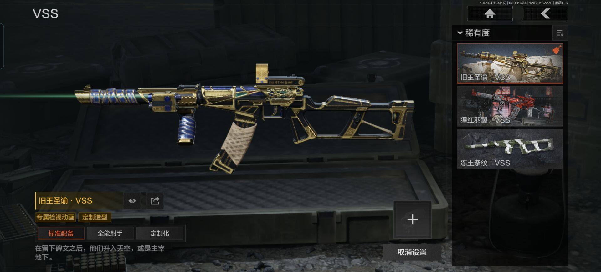 [16510288]库存价值1.9 1近战武器 1金枪皮 可修改实名 【柯恩币数量】758943 【近战武器】苍穹利爪 【金色枪皮】旧王圣谕·VSS 【紫色枪皮】幻域莎绫·M4A1,鱼跃丹青·T85,护命金翎·M24,骑士之剑·沙漠之鹰,骑士之剑·T03,包络战术·莫辛,动感舞步·ACE31,格勒涂装·AK12,包络战术·AK74N,粉绒臻选·AN94,粉绒臻选·AR30,秘域鎏金·RPK16,战术大师·SKS,战术大师·Suomi,战术大师·SVDS,战术大师·SJ16,旗帜脉冲·M110,涂鸦·AK102 【角色装扮(紫)】王国卫队礼装,高地武士套装,速度新星赛车服,和平先锋作战套装,财团之手作战套装,砼城浪客·套装