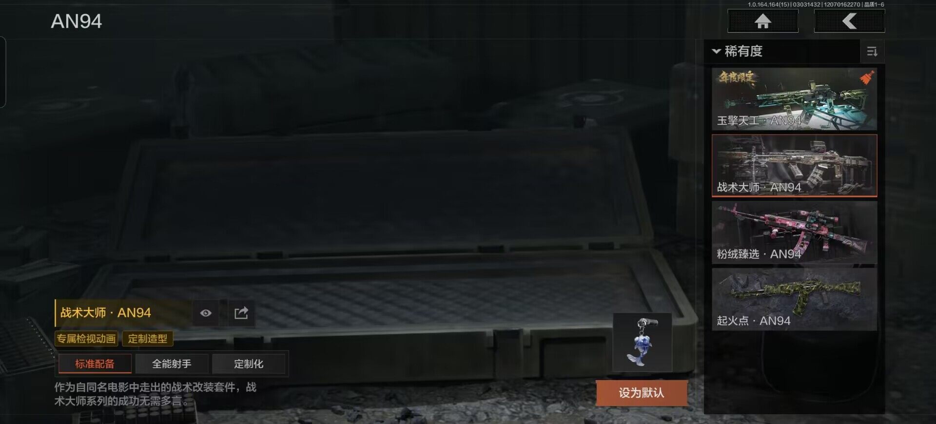 商品描述:【AQD230】等级:30/段位:暗区传说/仓库价值(百万):73/柯恩币:27922990/瑞兔折刀/苍穹利爪/下弦月/赢家匕首/白蔷薇斯黛拉/脉冲马克西姆/包络战术AKM/竞技风潮M4A1/生物危害M4A1/告丧夜曲AUG/告丧夜曲AR57/地脉深处ACE31/战术大师AEK/旗帜AEK/玉擎天工AN94/战术大师AN94/旧王圣谕QBZ191/浮鳞影青QBZ192/乌金黑曜QBZ192/玉擎天工MP5/利齿风暴MPX/旧王圣谕VSS/冰河碎影MK14/近卫荣誉RPK16/芭斯特/清影/冲刺极限QBZ192