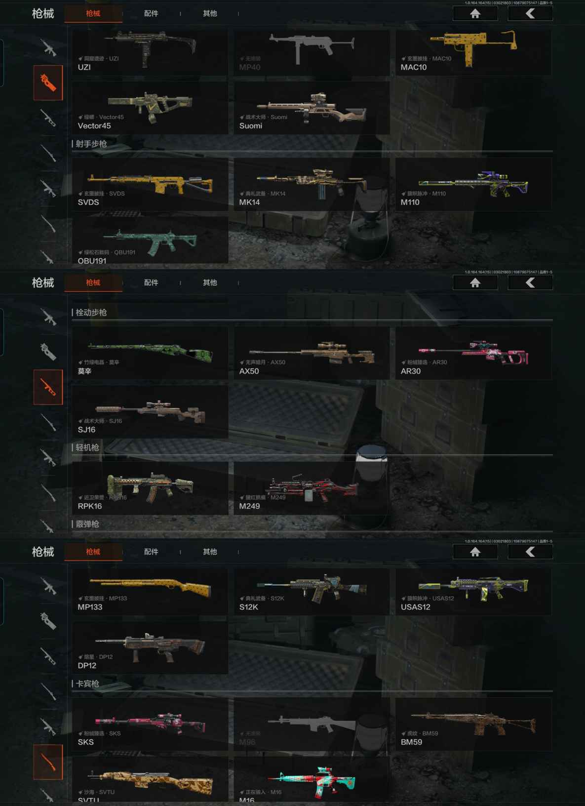 [16533525]库存价值26.6 6近战武器 1金套装 3金枪皮 可修改实名 【柯恩币数量】4265k 【角色装扮(金)】苍白隐者·伪装服 【近战武器】工兵铲,寒牙手刺,来战·开山刀,明刀·绣春,胜利军刀,涂鸦利刃 【金色枪皮】骑士之剑·M4A1,林中人·FAL,冻原猎手·M4A1 【紫色枪皮】鱼跃丹青·QBU191,动感舞步·ACE31,旗帜脉冲·M110,来战·AKM,涂鸦·MPX,白狼连队·VSS,涂鸦·AK102,德尔塔小队·M4A1,巅峰·M4A1,战术大师·AR57,胜利锋刃·AEK,雪原凌锋·SVDS,雪原凌锋·AK74N[16597846]库存价值15.6 4近战武器 1金套装 7金枪皮 可修改实名 【柯恩币数量】122326 【角色装扮(金)】脉冲·马克西姆 【近战武器】工兵铲,寒牙手刺,急袭弯刀,来战·开山刀 【金色枪皮】包络战术·AKM,战术大师·AN94,旧王圣谕·QBZ191,骑士之剑·AX50,告丧夜曲·AUG,冰河碎影·14,蓝色咆哮·H416 【紫色枪皮】猩红羽翼·VSS,骤羽尖啸·AK12,鱼跃丹青·T85,骑士之剑·AKM,骑士之剑·T03,动感舞步·ACE31,宝石籽料·S12K,宝石籽料·FAMAS,秘域鎏金·RPK16,典礼武备·GROZA,典礼武备·MCX,战术大师·AK74N,战术大师·Suomi,战术大师·SVDS,潜渊蛇鳞·M4A1,战术大师·SJ16,旗帜脉冲·M110,巡林客·T951,来战·AKM,自喷网格·H416,无声暗月·AX50,代号天依·P90,涂鸦·AK102,无声暗月·AR57,危崖敌影·MPX,深潜·T03,禁止访问·UMP45,湖冰倒影·MP5,07式林地迷彩·QBZ191 【角色装扮(紫)】王国卫队礼装,城市户外运动套装,等高线运动套装,高地武士套装,和平先锋作战套装,财团之手作战套装