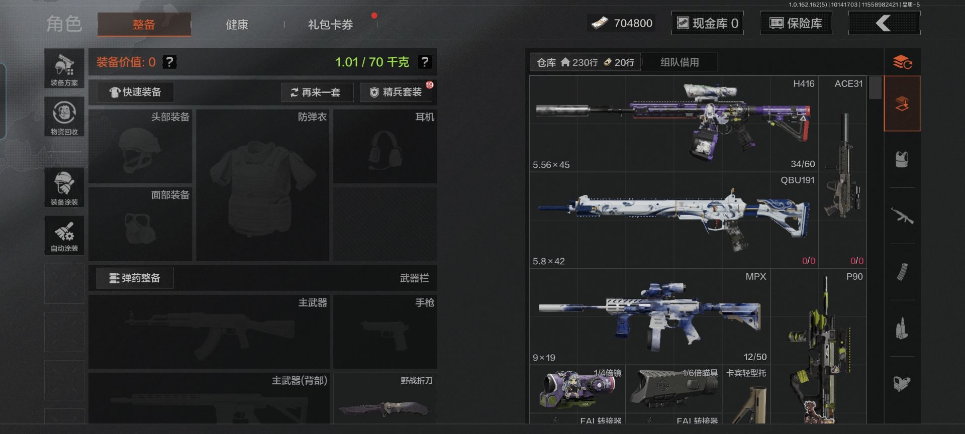 商品描述:MWT3548【仓库价值2.6M 柯恩币704800 3金枪 1金衣 瀚星斩铁 突击匕首 野战折刀 工兵铲】安卓Q-等级30-仓库价值2.6m-科恩币704800 【枪皮】 利齿风暴·MPX 旗帜·AEK 蓝色咆哮·H416 【刀皮】 瀚星斩铁 突击匕首 野战折刀 工兵铲 【套装】 苍白隐者·伪装服