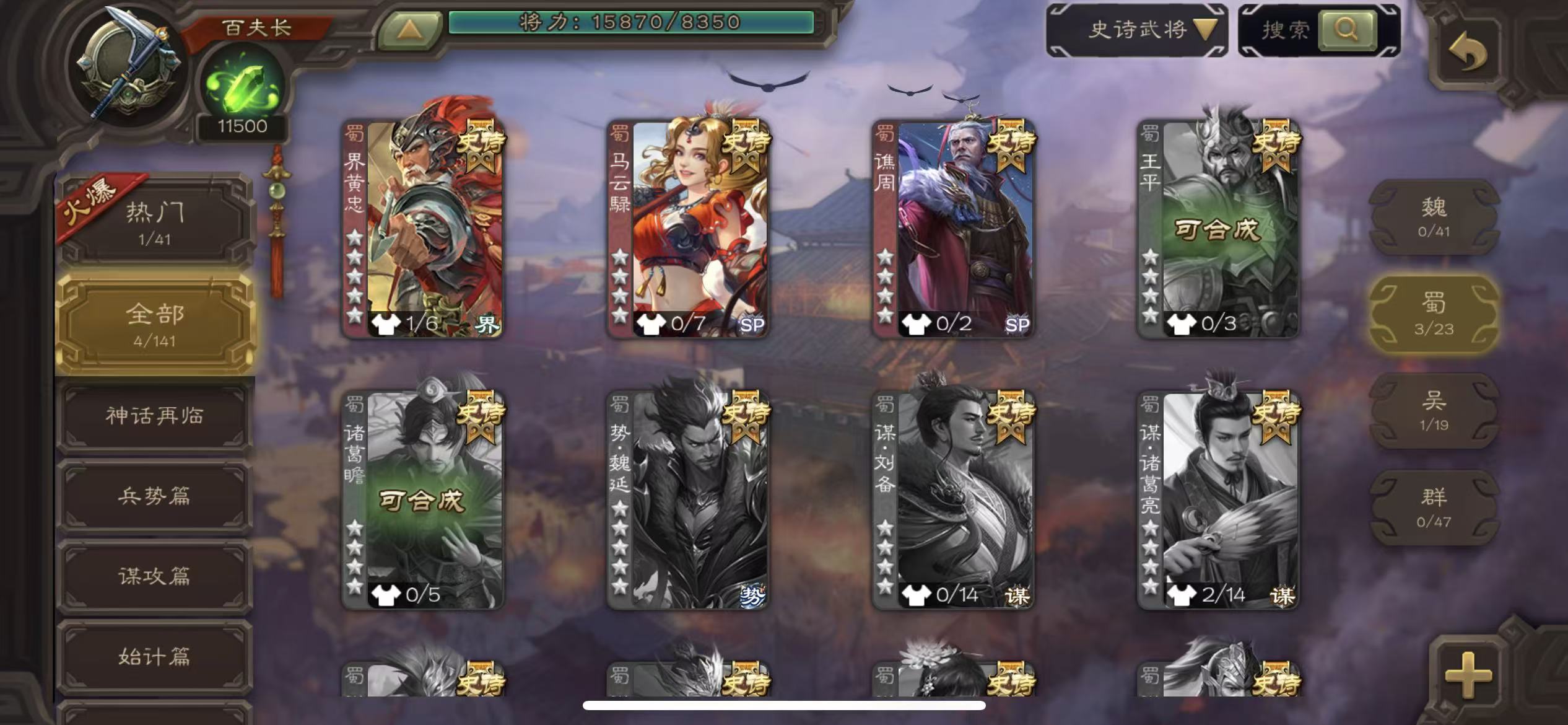 商品描述:百夫长40宝珠(可换杜预)4史诗10万羽毛1.15万将魂1万银币179招募令7万豆海量三卡