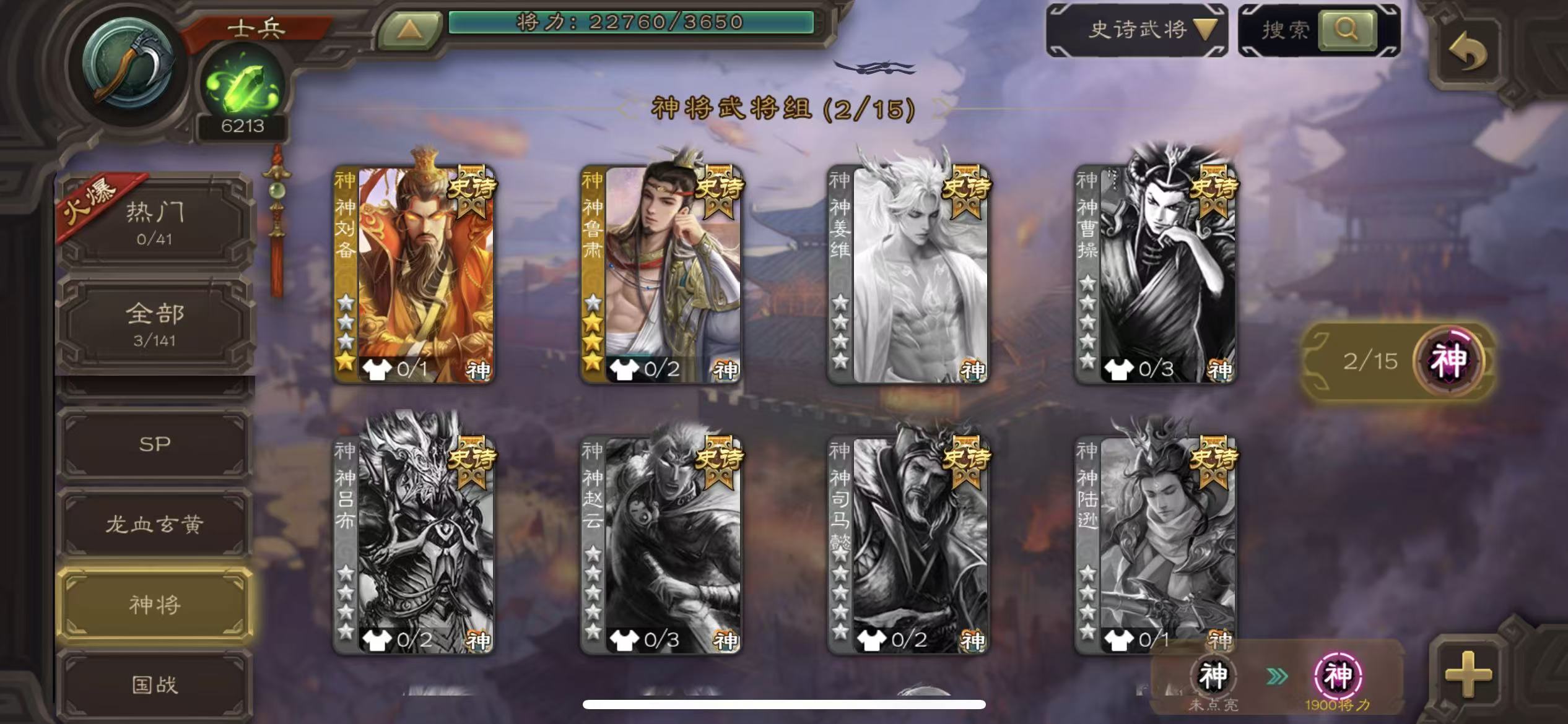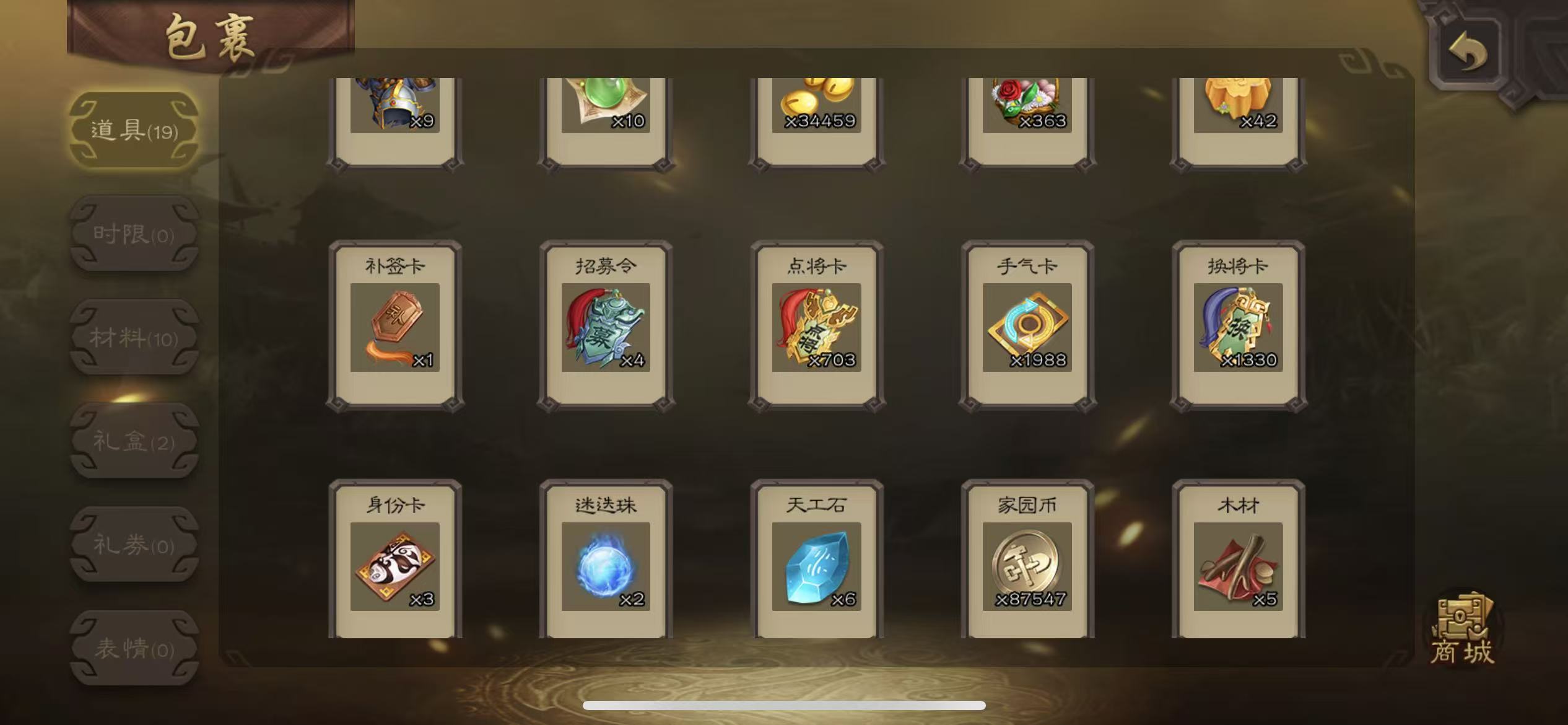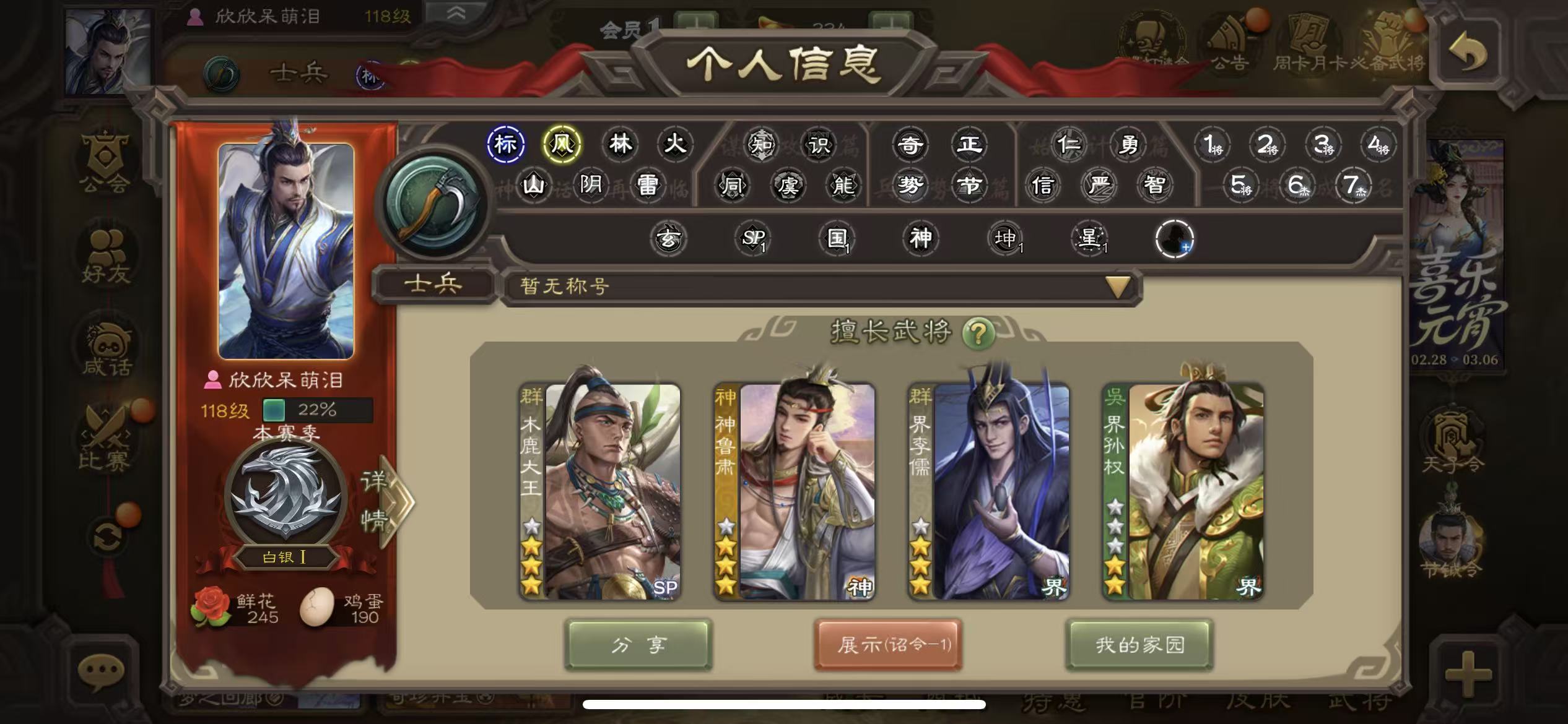 商品描述:士兵神鲁肃,界李儒,神刘备,木鹿大王,7000魂,7.4万羽毛三卡