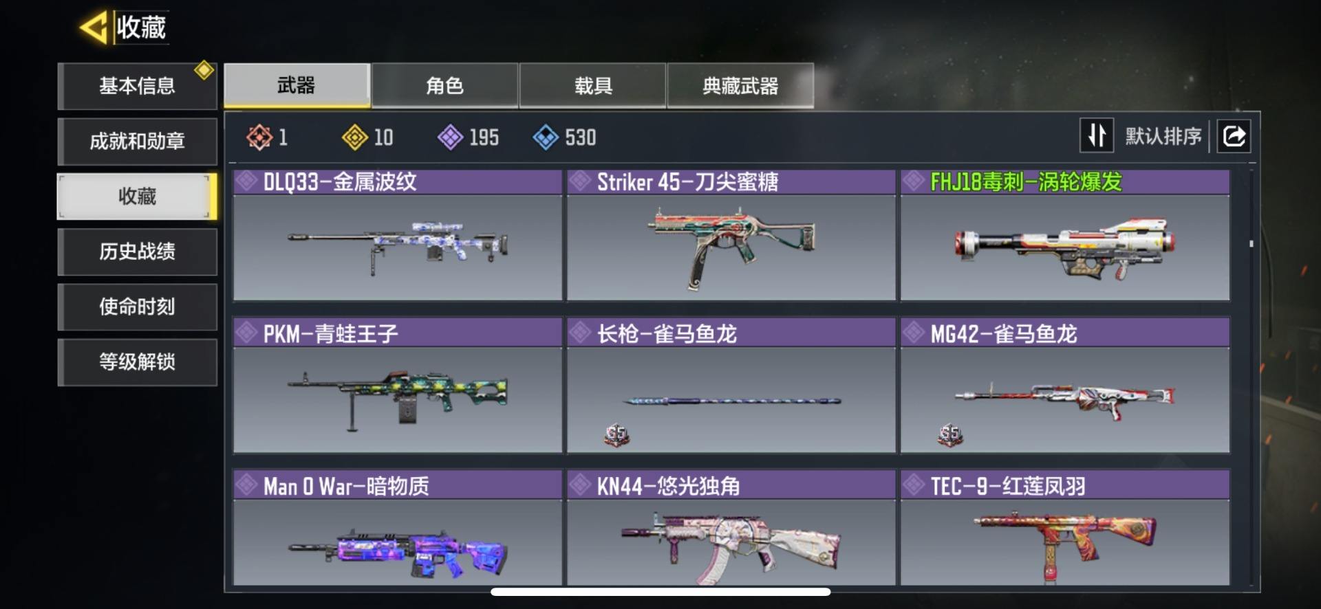 [14770413]400级 4神话 12传说 327史诗 段位铂金 可二次 可修改实名 【神话枪械】:SMG5-潮海汐月,AK117-熔岩,DLQ33-红莲天诛,Fennec-无畏【传说枪械】:KN44-灼火,CX-9-山吹烬,M4-皇家黑魂,SA80-狂暴冲锋,AK47-火箭炮,RPD-一路悠扬,电棍-永恒炽热,CR56-回音律动,M1887-闪耀明星,AK47-午夜侠士,M4-愚人小丑,Cordite-零度吞噬