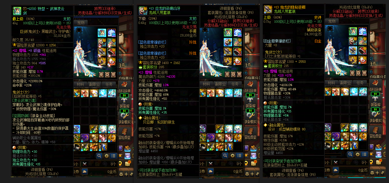 10套2026年套《两个增幅12角色+三个增幅11角色+两个增幅10角色+两套龙透和五套龙袍》《最新大奥密双至尊增幅12打造完全体7051力量8.7W神兽龙袍+深渊骑士+白狗子套+土豪哥装扮+龙透魔神》+《增幅12打造完全体6889力量8.3W名望光翼龙袍刃影》+《增幅12耳环完美增幅11打造完全体8W神兽龙袍奶妈》+完美增幅11打造完全体7.9W神兽龙袍奶萝+双至尊12黑雨武器增幅10打造追忆天空龙透剑魂+13武器六件增幅11打造完全体光翼龙袍桐人皮肤鬼泣+双增幅11武器耳环增幅10打造完全体协战师+12武器增幅10打造完全体男漫游