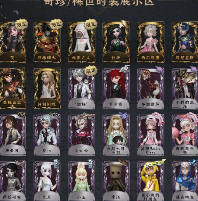 紫皮:加特 芳泽霞 多加雷萨 不羁的浪漫 毕业日 Rice 女大公 五月七日小羽 异想HelloKittt 奇趣美乐蒂 菌丝研究 九月 小玉 摩诺 蛋小黄的好朋友 弦音畸变 柱昔 归来者 流离的月光 桃面书生 笼中之蝶 致命温柔 冰上舞蹈 琥珀 月相 入殓师-记忆之骑 校对人 沙滩漂移 钨 迷迭香 神圣阿斯莫 飞行家-异相睡眠 幕外之音 BISH0P-f1 膨化 律师