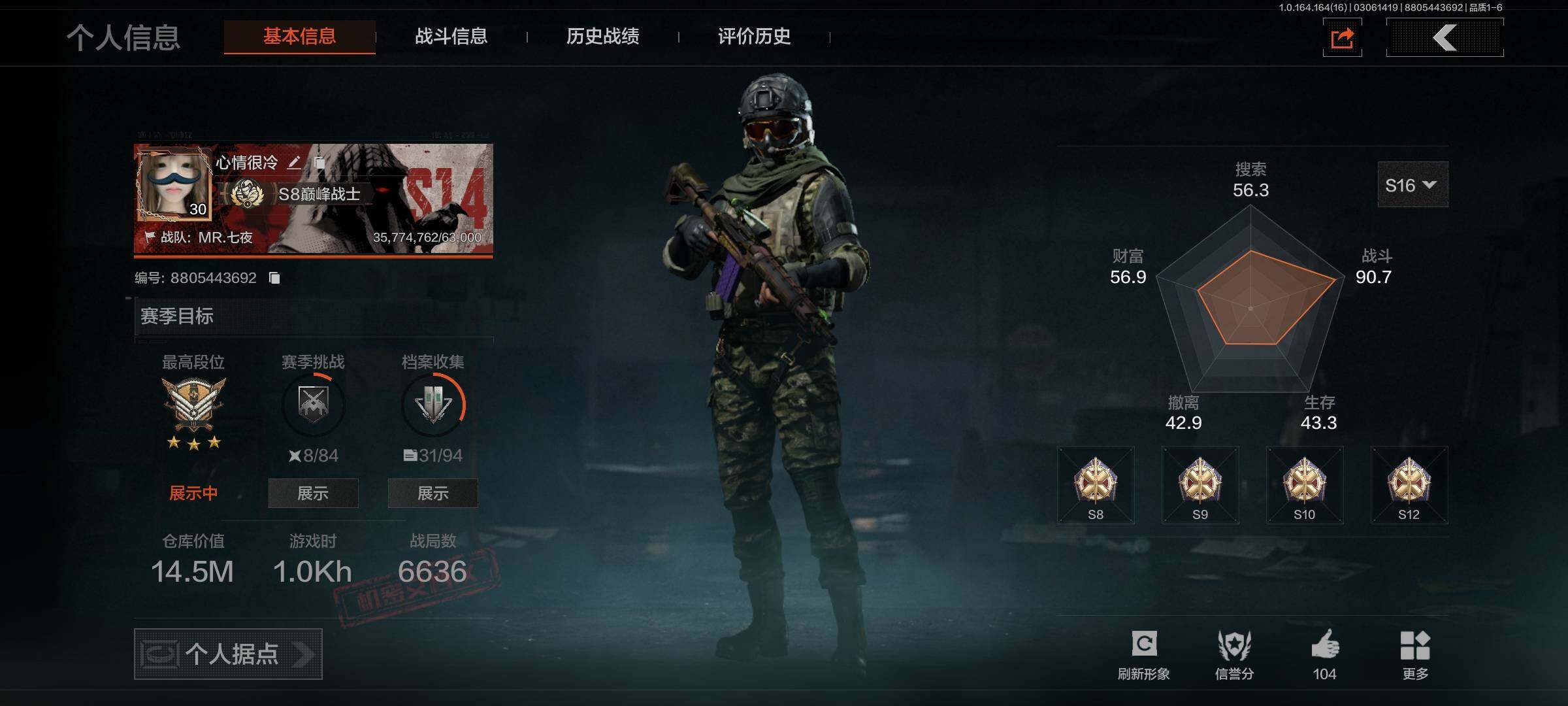 【AQZ253】等级:30/段位:精英/仓库价值(百万):13.7/柯恩币:118452