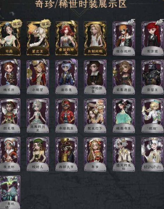 紫皮:佐仓双叶 芳泽霞 桃乐丝 小明星 潘塔龙 伊始新篇 采集速巡 亚瑟王 炽天使 流离的月光 水球救生 聚光灯下 桃面书生 琥珀 夜光杯 校对人 西部大亨 年岁 熄灭的太阳 BISHOP-FI 有机磷" 调香师