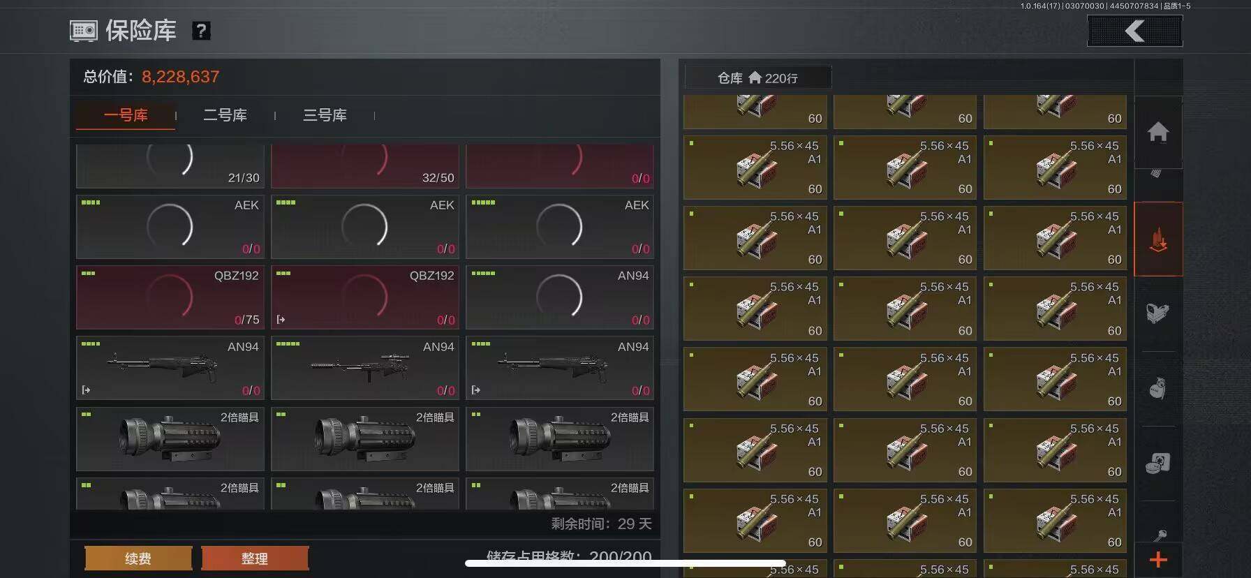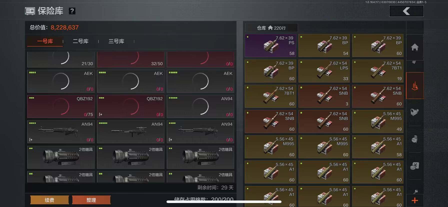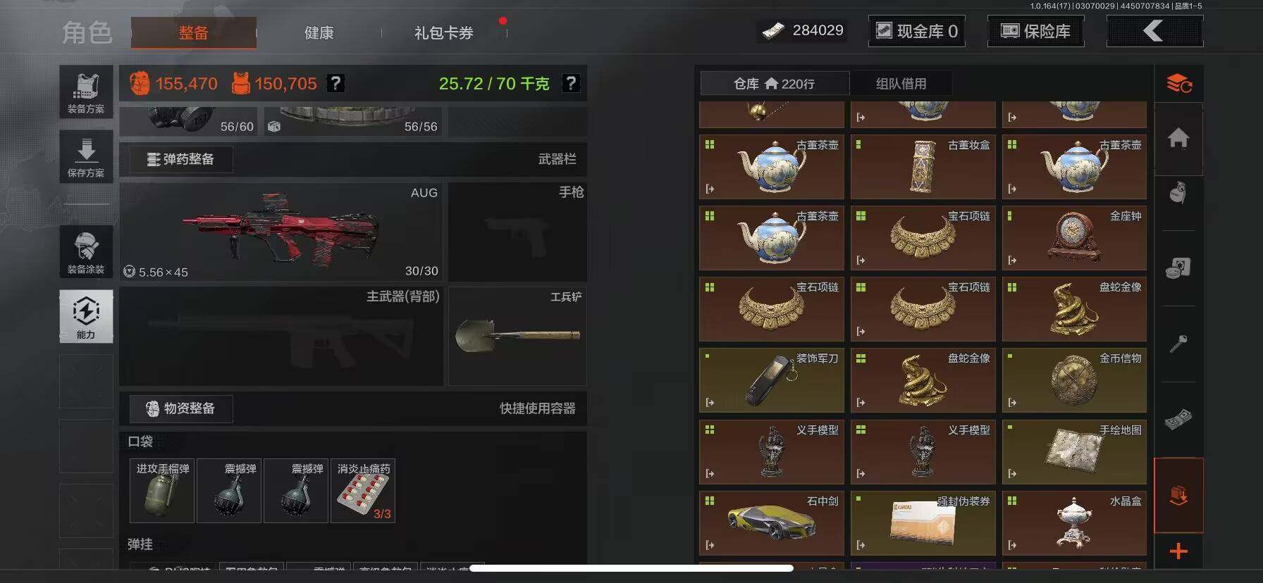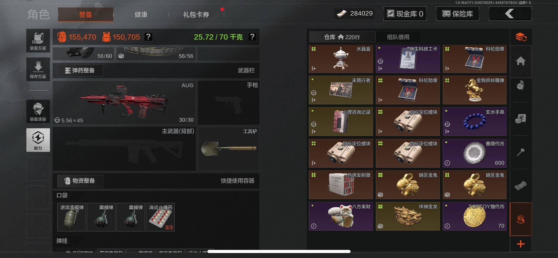 【AQD234】等级:30/段位:暗区传说/柯恩币:277335/空腔战术/套金客莫雷尔/旧王圣谕VSS/骑士之剑VSS/近卫荣誉RPK16/告丧夜曲AUG/包络战术AKM/战术大师AN94/镀火熔金H416/赤帽要塞AR57/战术大师AEK/芭斯特
