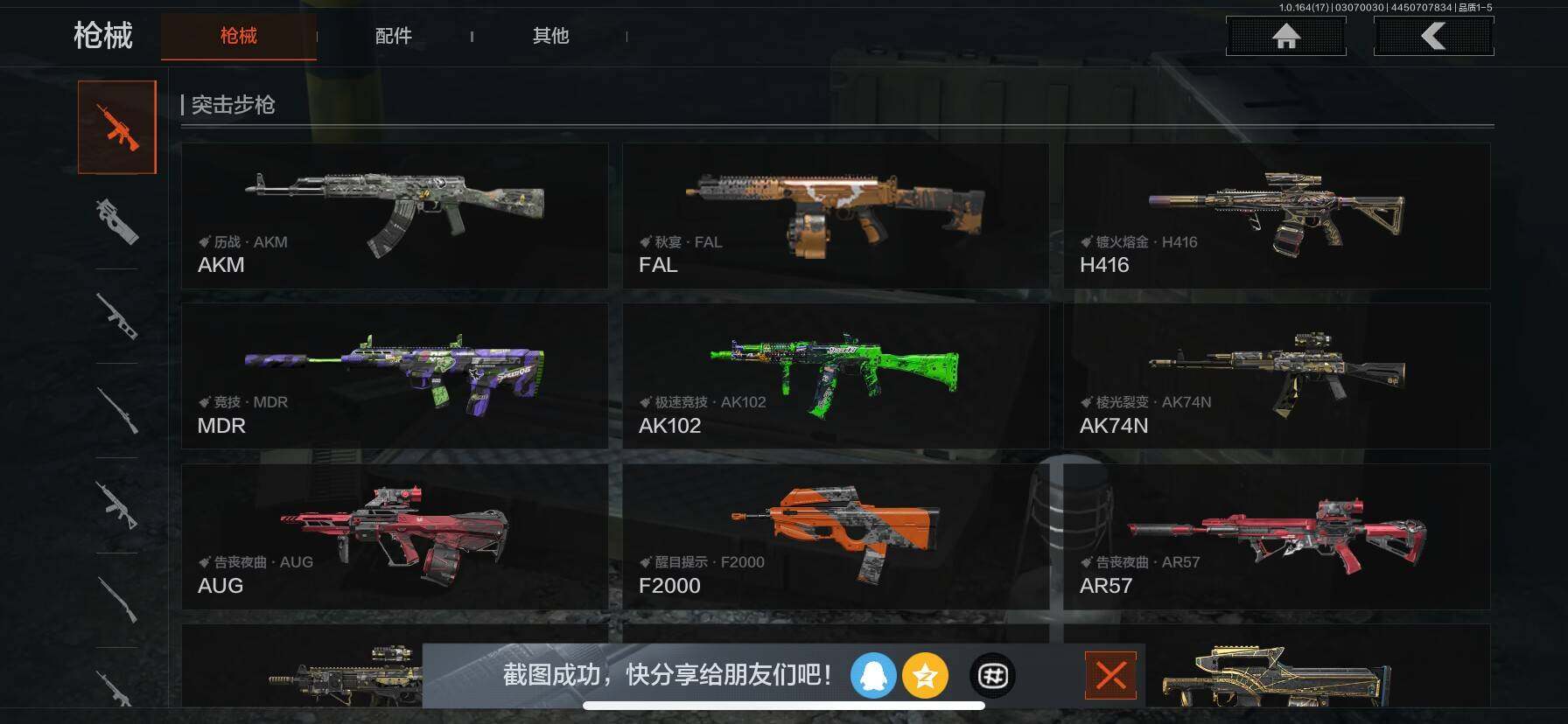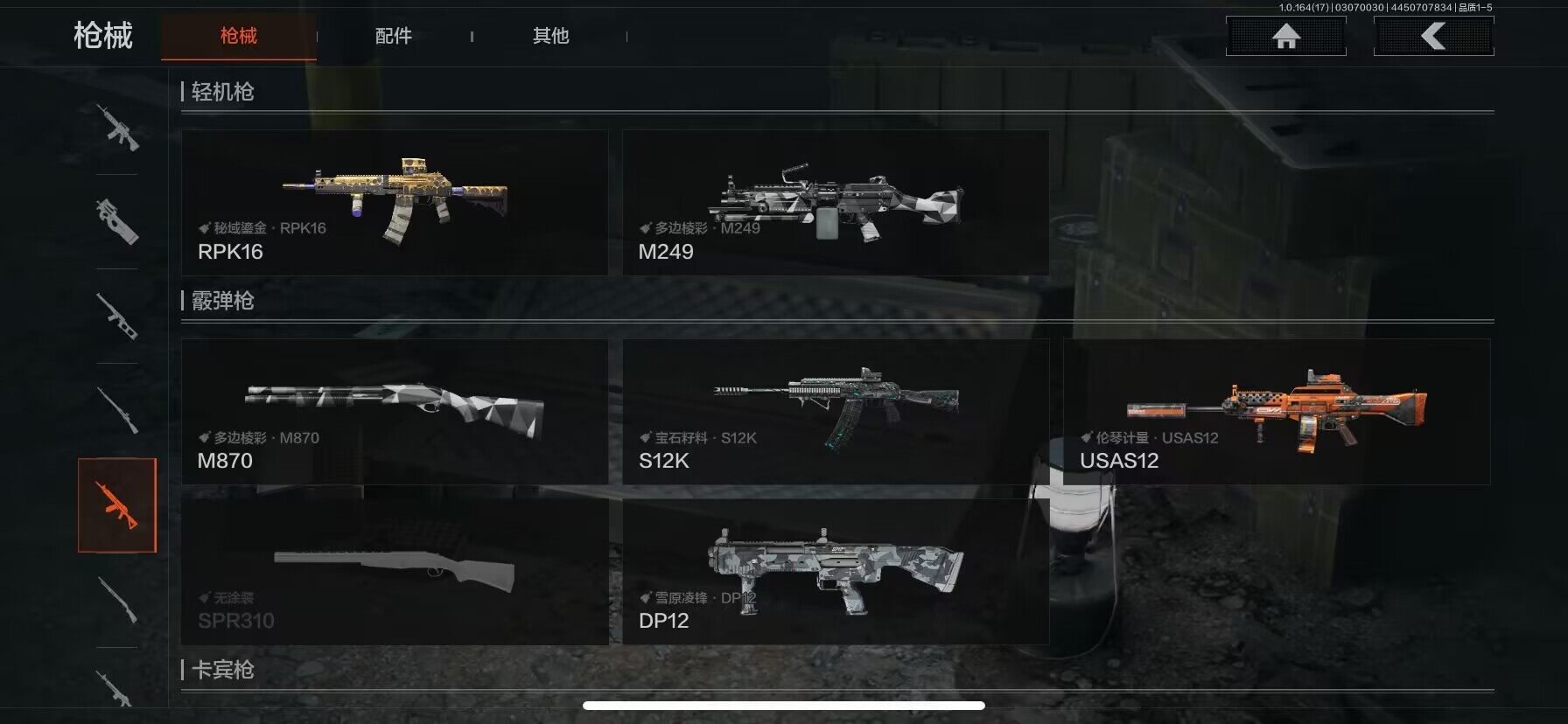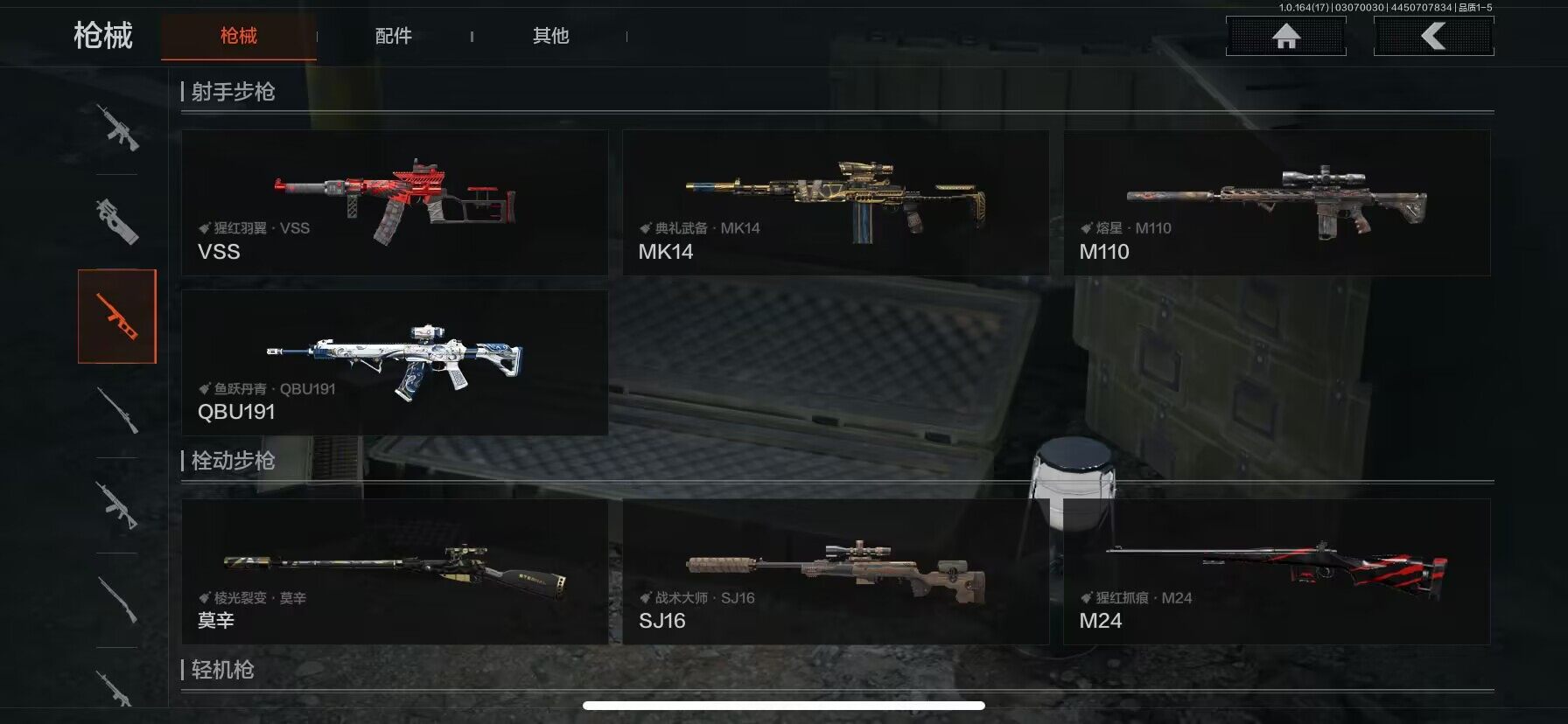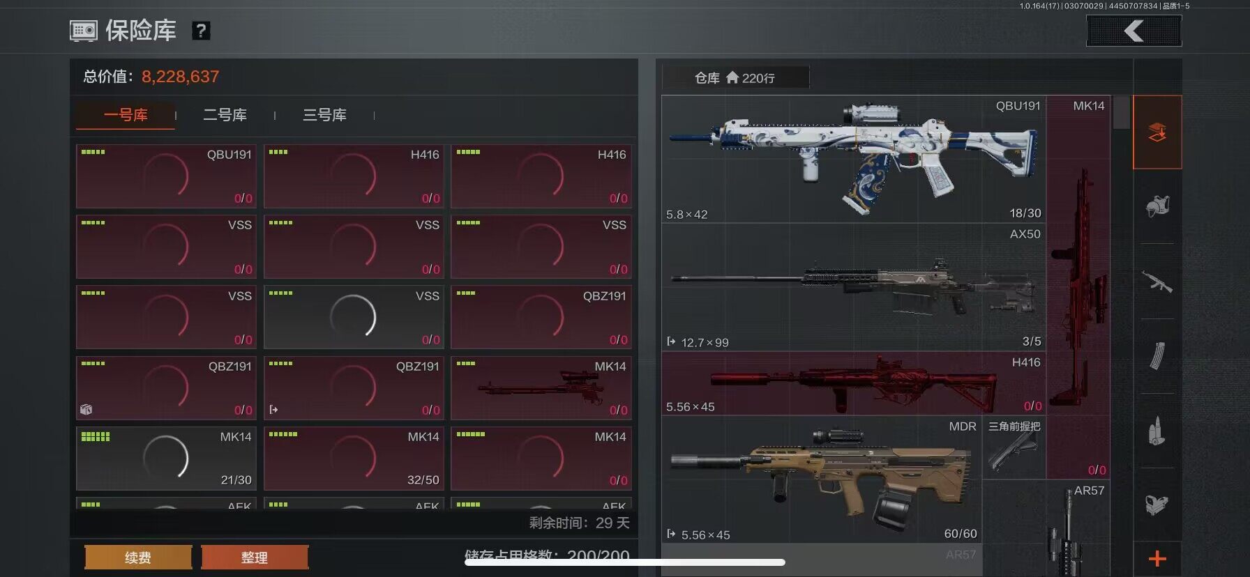 【AQD234】等级:30/段位:暗区传说/柯恩币:277335/空腔战术/套金客莫雷尔/旧王圣谕VSS/骑士之剑VSS/近卫荣誉RPK16/告丧夜曲AUG/包络战术AKM/战术大师AN94/镀火熔金H416/赤帽要塞AR57/战术大师AEK/芭斯特