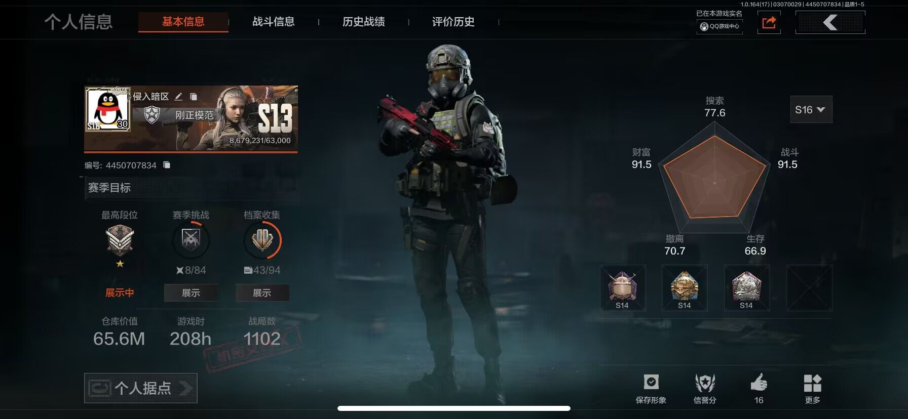【AQZ253】等级:30/段位:精英/仓库价值(百万):13.7/柯恩币:118452