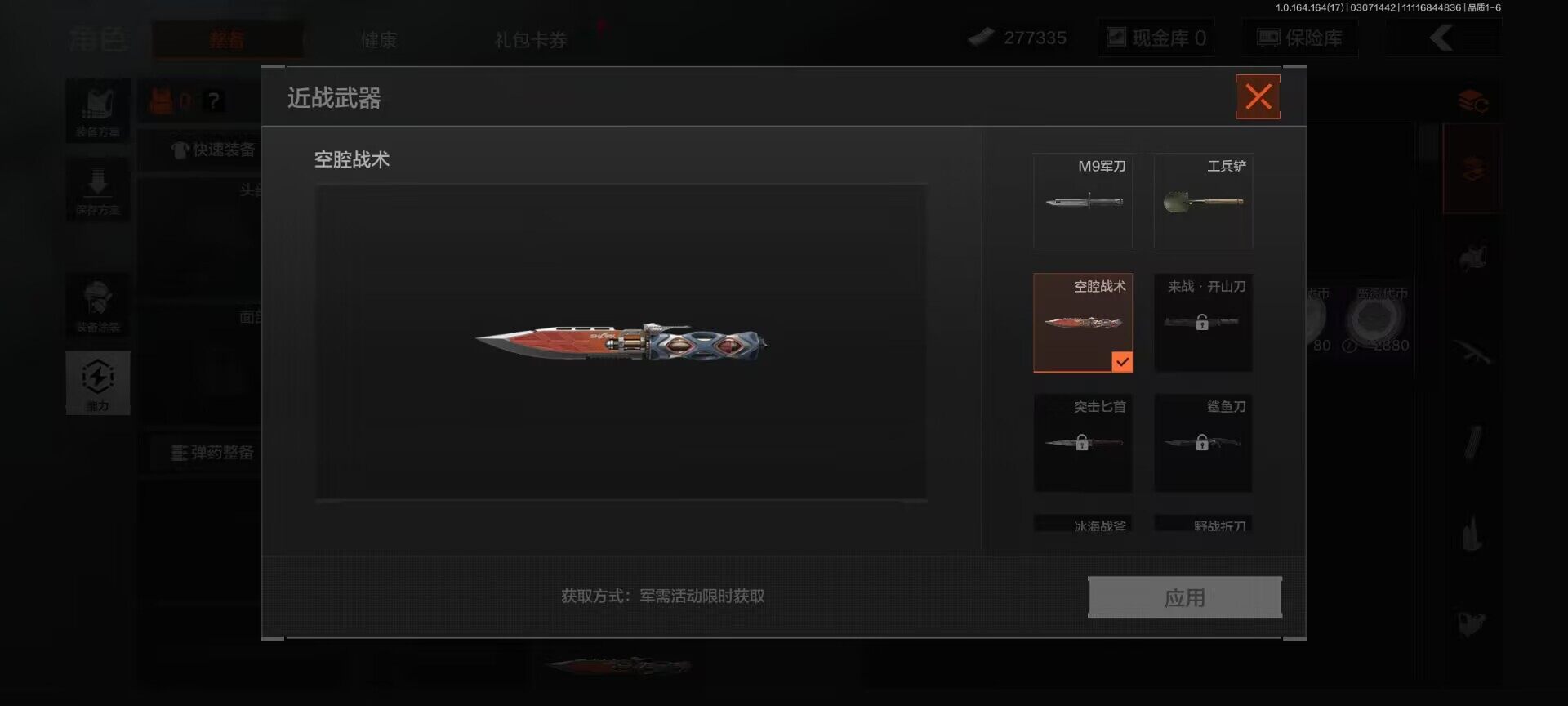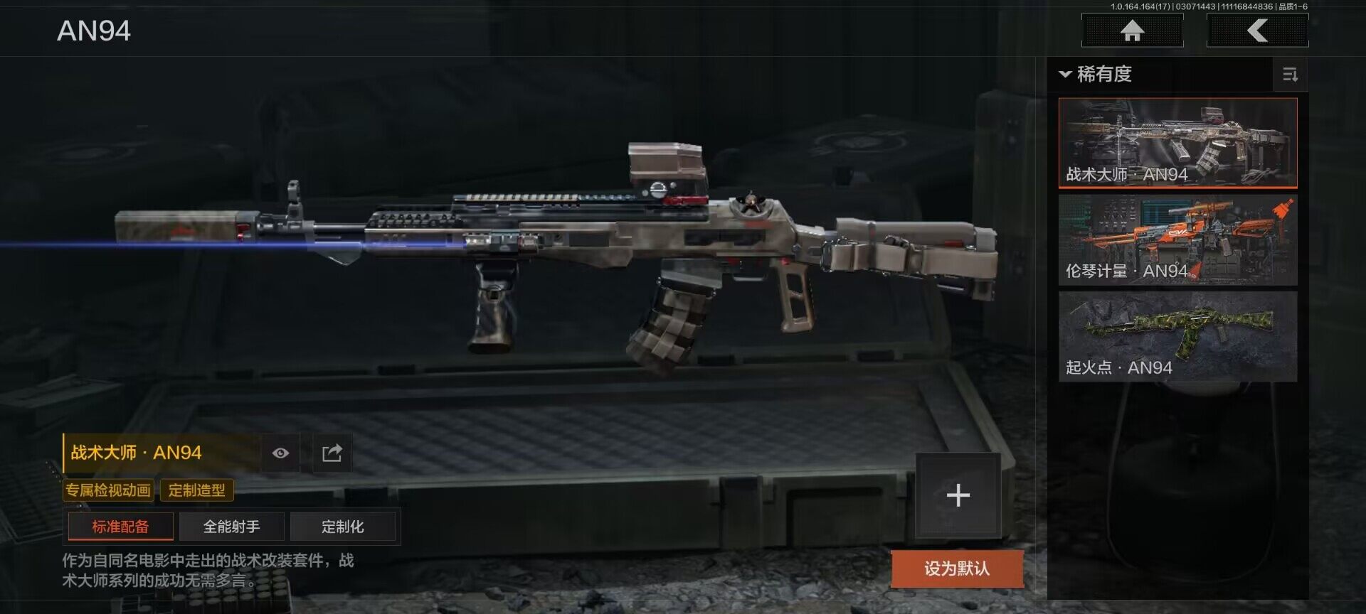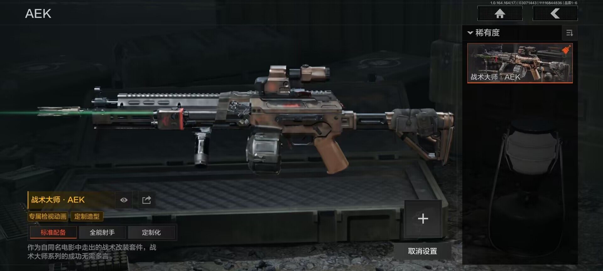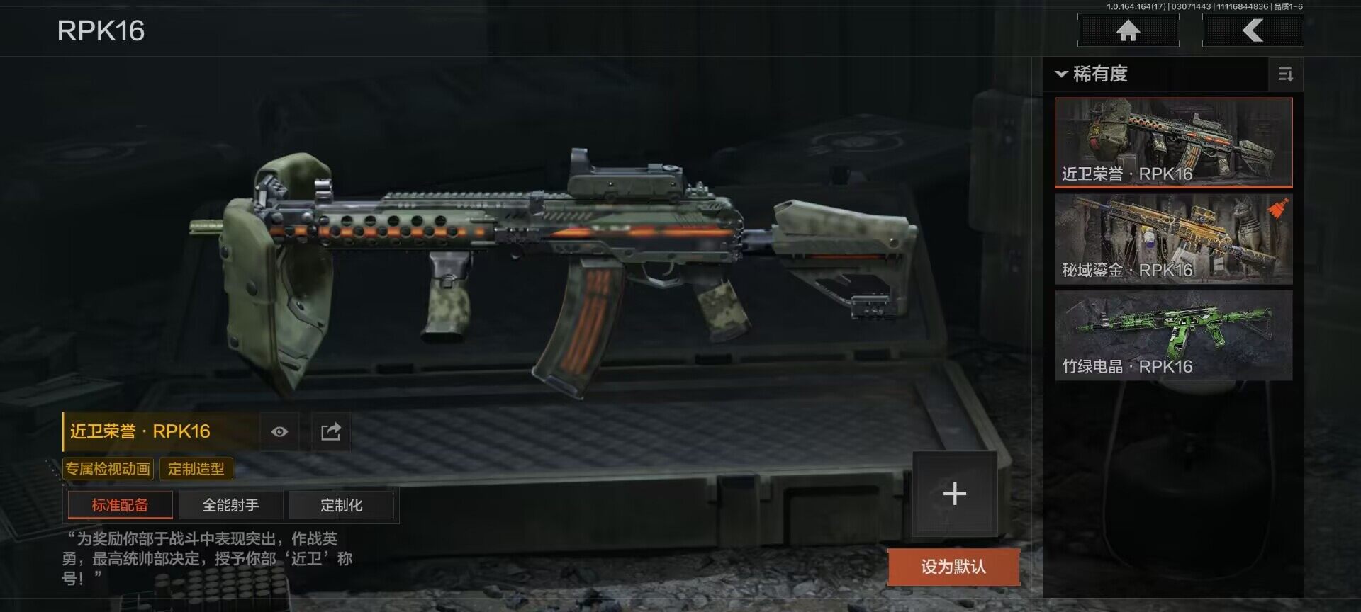 【AQD234】等级:30/段位:暗区传说/柯恩币:277335/空腔战术/套金客莫雷尔/旧王圣谕VSS/骑士之剑VSS/近卫荣誉RPK16/告丧夜曲AUG/包络战术AKM/战术大师AN94/镀火熔金H416/赤帽要塞AR57/战术大师AEK/芭斯特
