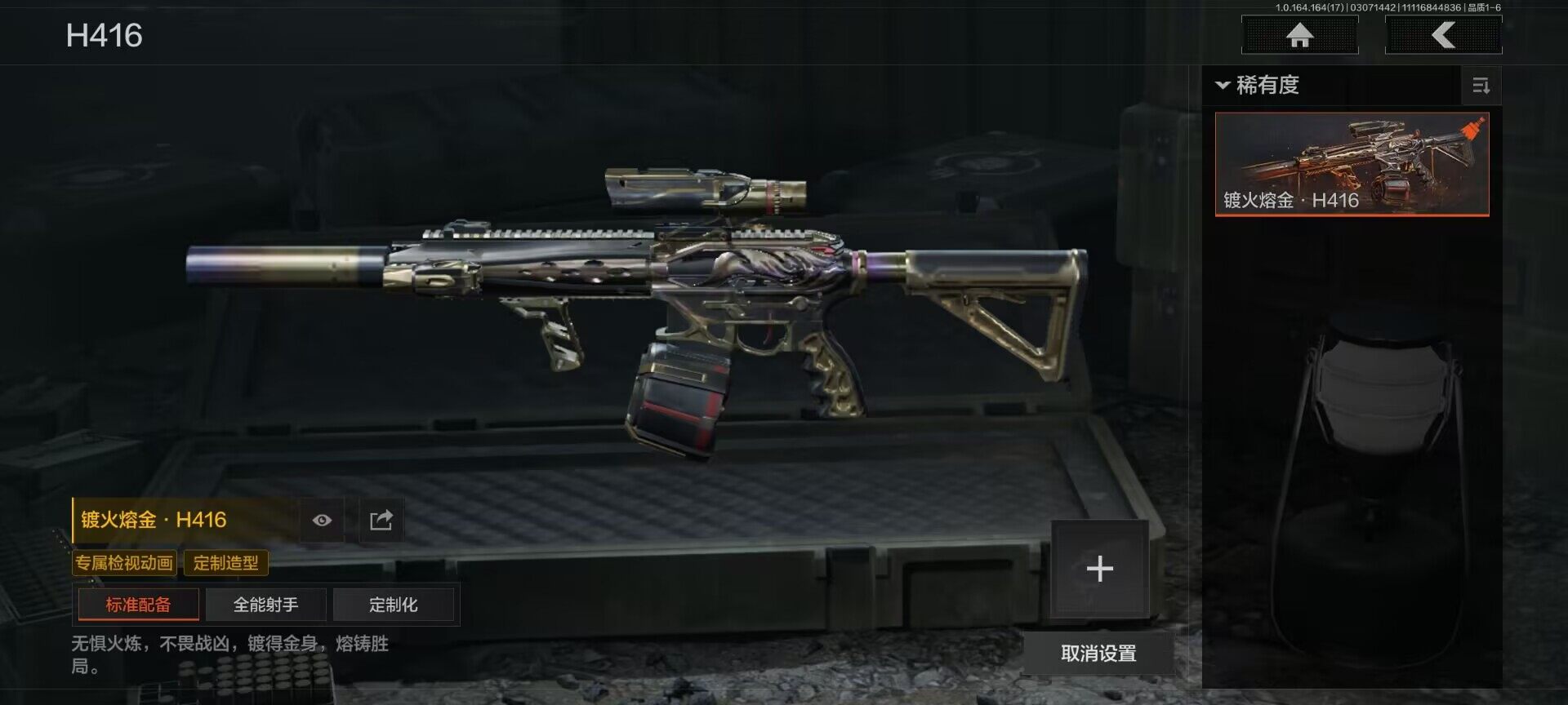 【AQQH754】段位:王牌/仓库价值(百万):4/套金客莫雷尔/镀火熔金H416