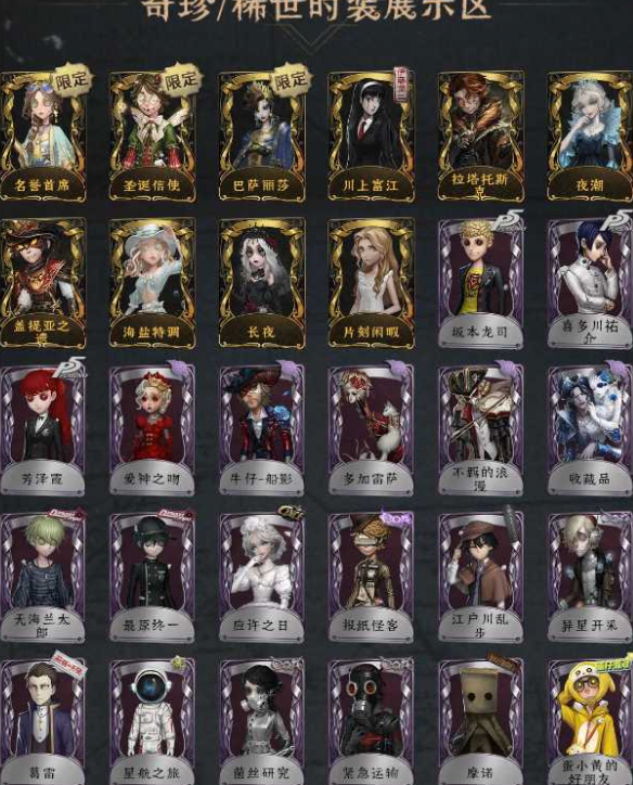 紫皮:坂本龙司 喜多川祜介 芳泽霞 爱神之吻 牛仔-船影 多加雷萨 不影的浪漫 收藏品 天海兰太郎 最原终一 应许之日 报纸怪客 江户川乱步 异星开采 葛雷 星航之旅 菌丝研究 紧急运输 摩诺 蛋小黄的好朋友 弦音畸变 艺术品商人 亚瑟王 捣蛋裘克 永生花 动力芯 纸心 诡焰 阿瓦尔的战车 水球救生 墨卡托投影 聚光灯下 祈雨之女 桃面书生 神圣之辉 “厄运” 冰中蝶 “琥珀” 红龙夫人 邢之牙 宝钻女爵 曼陀罗 无使向导 迷迭香 圣活 墨韵 KNIGHT-C3 BISHOP-P1 有机磷 调香师