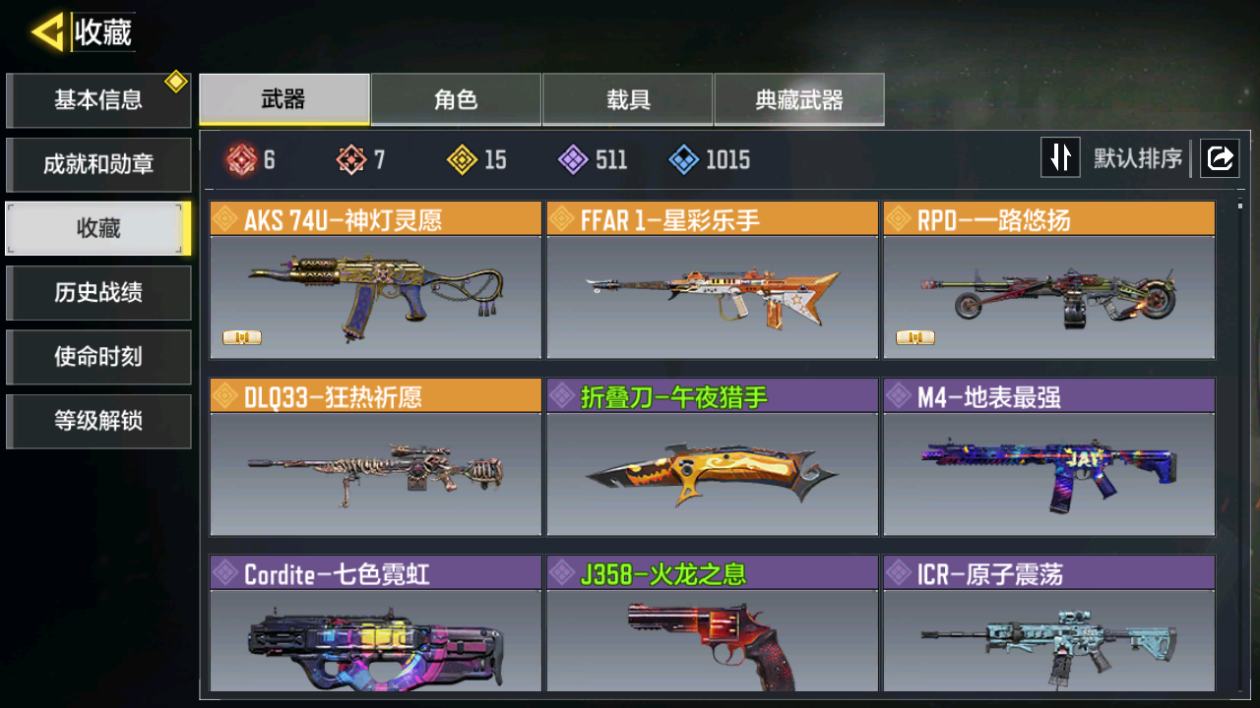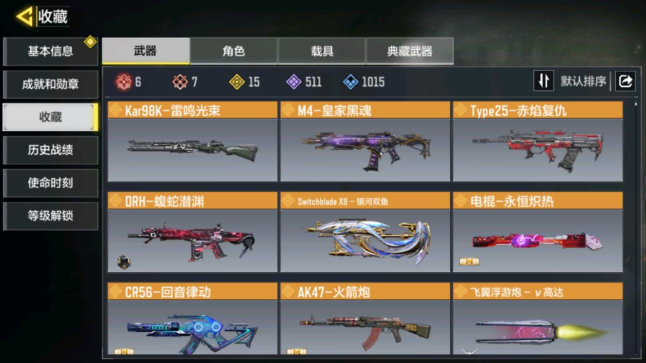 [16477398]H6744有二次 安卓Q-段位黄金 378级 【2神话】 Type 19-丹青万壑 5级 Oden-神圣惩戒 1级 【传说】 HDR-狂笑终章 电棍-永恒炽热 CR56-回音律动 Locus-红色彗星 AK47-火箭炮 飞翼浮游炮-高达 【153史诗309普通武器46角色28载具】