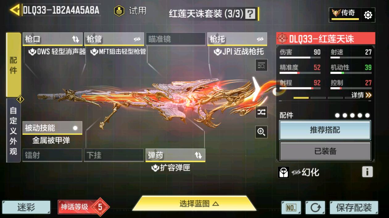 [16020052]139级 1典藏 1史诗 段位黄金 可二次 可修改实名 【典藏枪械】CR56-红魔浪潮·典藏