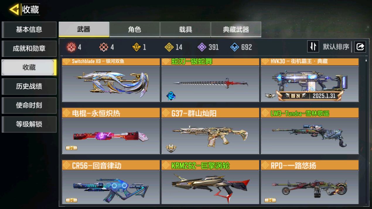 [14142115]400级 7神话 2典藏 22传说 736史诗 段位无 可二次 可修改实名 【典藏枪械】:HG40-灵魂羁绊·典藏,SKS-粒子震击·典藏【神话枪械】:SMG5-潮海汐月,MG42-永别,Grau 5.56-源核天灾,FFAR 1-无境空刃,M13-黑耀星辰,Kilo141-暗夜奏鸣曲,Switchblade X9-瞬影斩决【传说枪械】:HDR-狂笑终章,PKM-共生体,S36-甜心诱惑,M4-皇家黑魂,AN94-毁灭浪潮,Type25-赤焰复仇,电锯-狂暴小丑,SA80-狂暴冲锋,AK47-火箭炮,FFAR 1-星彩乐手,CR56-回音律动,电棍-永恒炽热,G37-群山灿阳,DRH-蝮蛇潜渊,Outlaw-艳阳时刻,JAK12-聚能封锁,50GS-路阻且长,HBR3-蜜蜂工厂,Maddox-晶流梦魇,PKM-麋鹿,Thumper-惊魂火炮