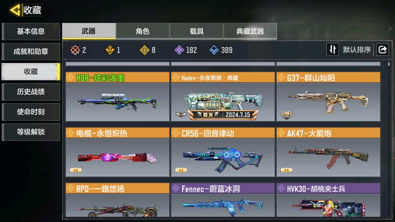 [16477398]H6744有二次 安卓Q-段位黄金 378级 【2神话】 Type 19-丹青万壑 5级 Oden-神圣惩戒 1级 【传说】 HDR-狂笑终章 电棍-永恒炽热 CR56-回音律动 Locus-红色彗星 AK47-火箭炮 飞翼浮游炮-高达 【153史诗309普通武器46角色28载具】