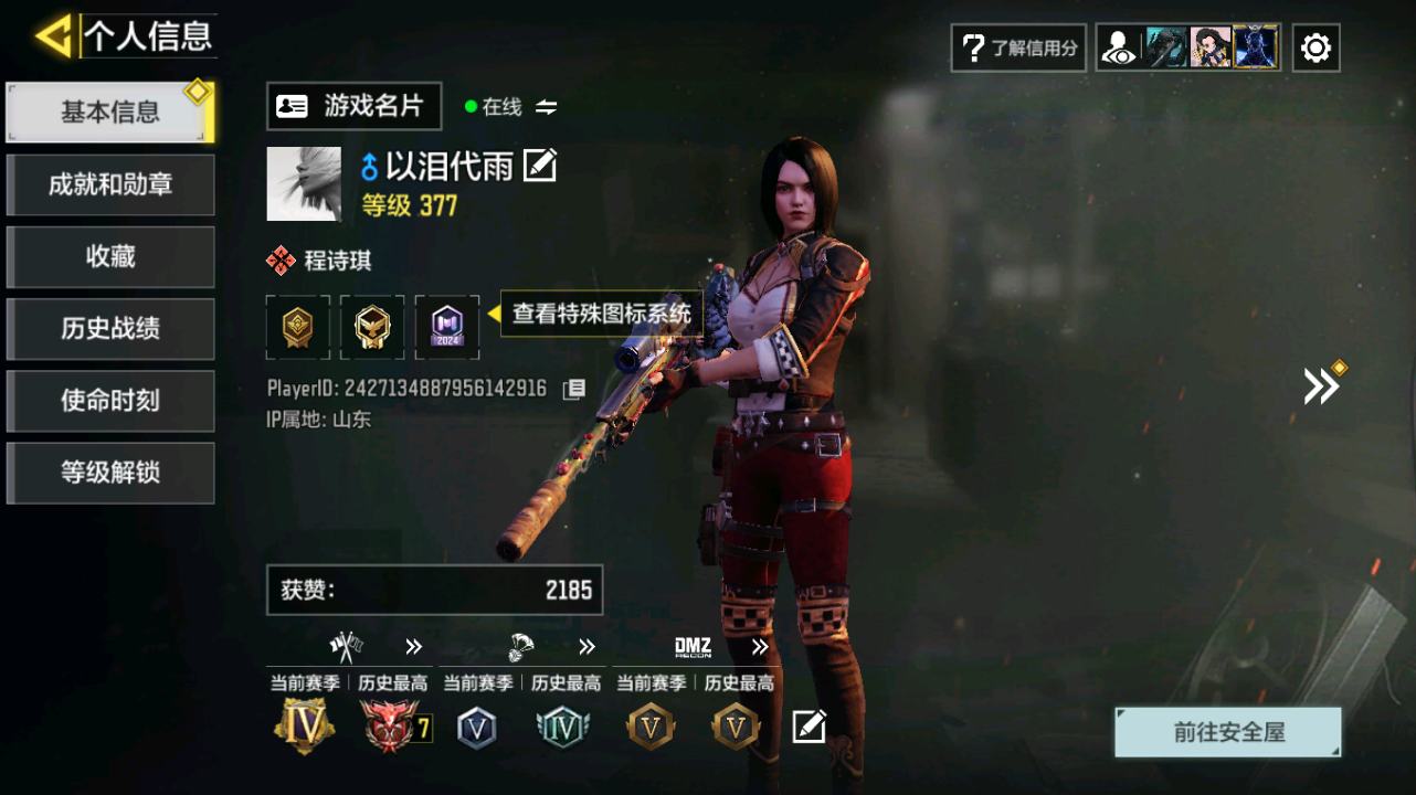 [14832631]400级 2神话 9传说 261史诗 段位铂金 可二次 可修改实名 【神话枪械】:AK117-熔岩,USS9-焕光跃迁【传说枪械】:M4-皇家黑魂,S36-甜心诱惑,FFAR 1-星彩乐手,Locus-红色彗星,Fennec-阿克西斯奇迹,AK47-火箭炮,RPD-一路悠扬,电棍-永恒炽热,CR56-回音律动
