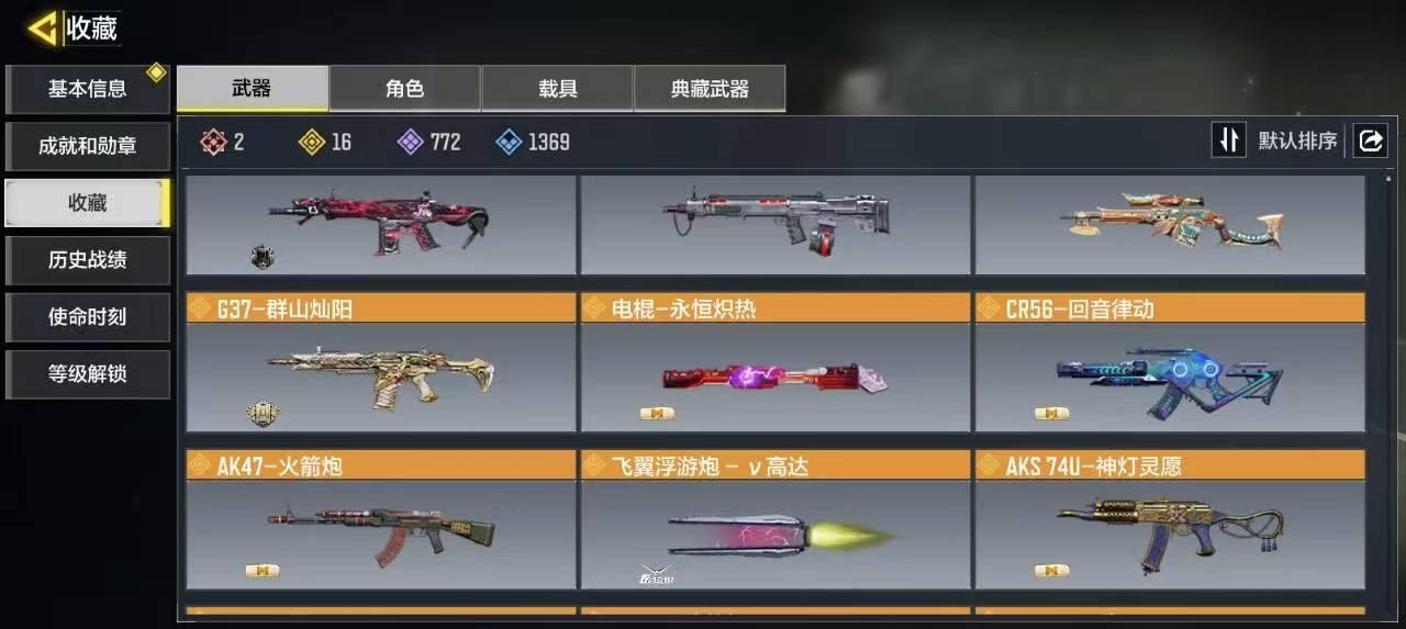 [16477398]H6744有二次 安卓Q-段位黄金 378级 【2神话】 Type 19-丹青万壑 5级 Oden-神圣惩戒 1级 【传说】 HDR-狂笑终章 电棍-永恒炽热 CR56-回音律动 Locus-红色彗星 AK47-火箭炮 飞翼浮游炮-高达 【153史诗309普通武器46角色28载具】