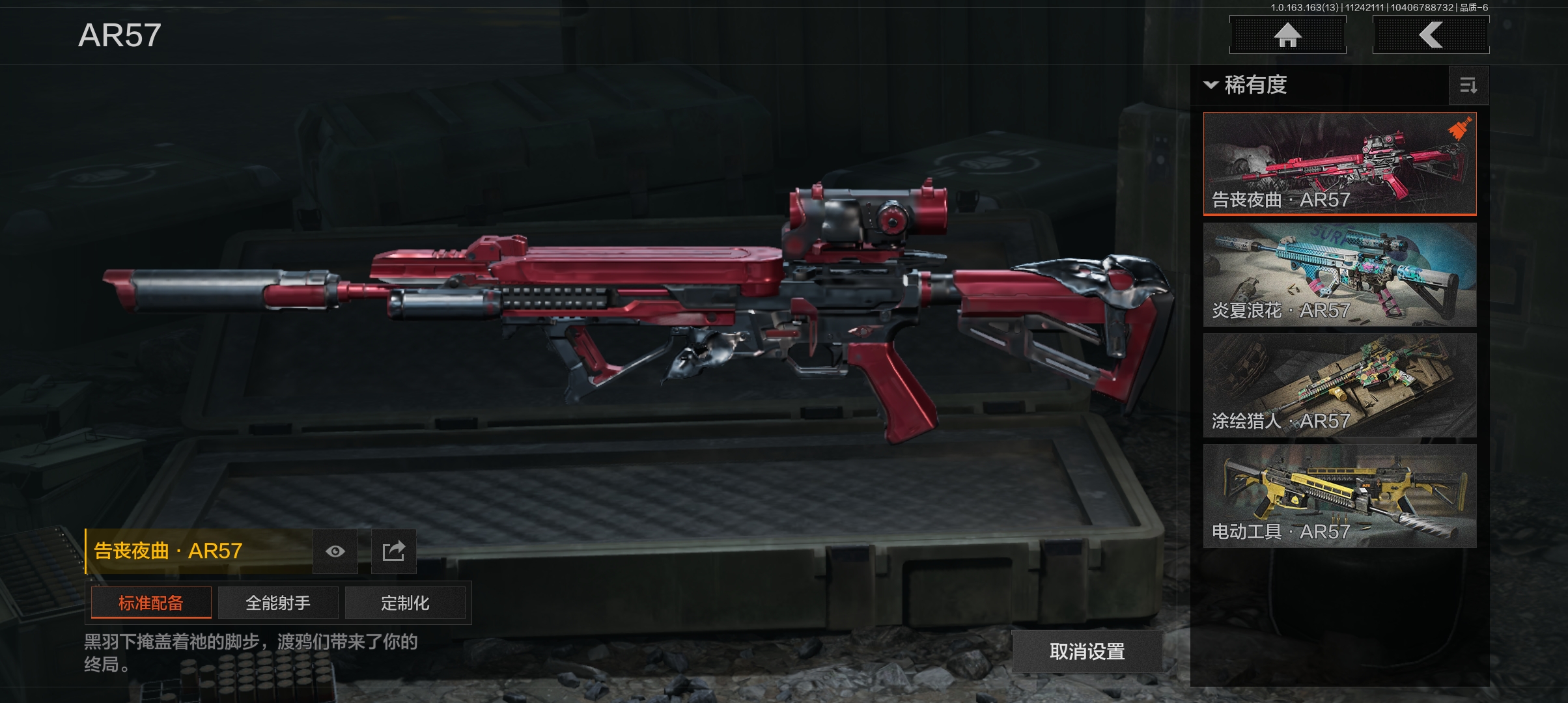 [13608797]库存价值379962 4近战武器 1金套装 4金枪皮 可修改实名 【柯恩币数量】:19.0 【角色装扮(金)】:使徒·欧瑞恩 【近战武器】:来战·开山刀,工兵铲,涂鸦利刃,急袭弯刀 【金色枪皮】:告丧夜曲·AUG,告丧夜曲·AR57,利齿风暴·MPX,冰河碎影·14 【紫色枪皮】:炎夏浪花·H416,快乐游戏·M110,快乐游戏·MPX,边缘矢量·MPX,伦琴计量·Vector45,骤羽尖啸·AK12,利齿风暴·T03,利齿风暴·T79,来战·AK74N,巅峰·M4A1,涂鸦·AK102,湖冰倒影·ACE31,湖冰倒影·MP5,涂绘猎人·AR57[13966792]库存价值35.5 5近战武器 1金套装 6金枪皮 可修改实名 【柯恩币数量】:31965【角色装扮(金)】:火绒·塔莉娅【近战武器】:来战·开山刀,S-07折刀,寒牙手刺,工兵铲,急袭弯刀【金色枪皮】:骑士之剑·VSS,竞技·FAL,旗帜·AEK,棱光裂变·QBU191,利齿风暴·MPX,蓝色咆哮·H416【紫色枪皮】:火绒·AK12,旗帜·SVDS,旗帜·RPK16,棱光裂变·莫辛,骑士之剑·AKS74U,竞技·AUG,快乐游戏·AK102,边缘矢量·AX50,典礼武备·14,超越自我·Vector9,超越自我·AR30,鱼跃丹青·DT MDR,利齿风暴·T03,利齿风暴·T79,来战·AKM,来战·AK74N,竞技·M4A1,焰色反应·M110【角色装扮(紫)】:使徒·瑞文,都市夜影套装