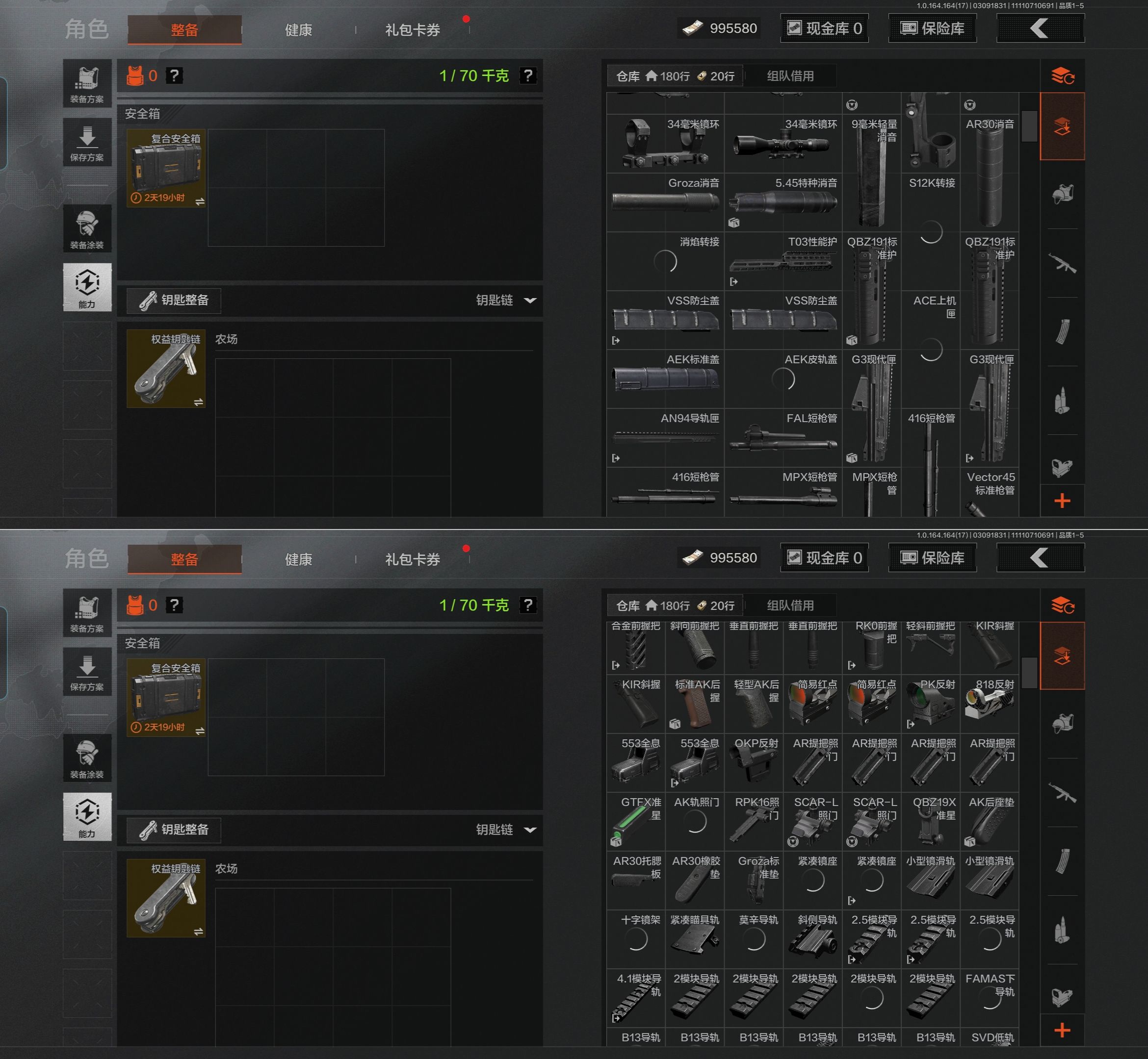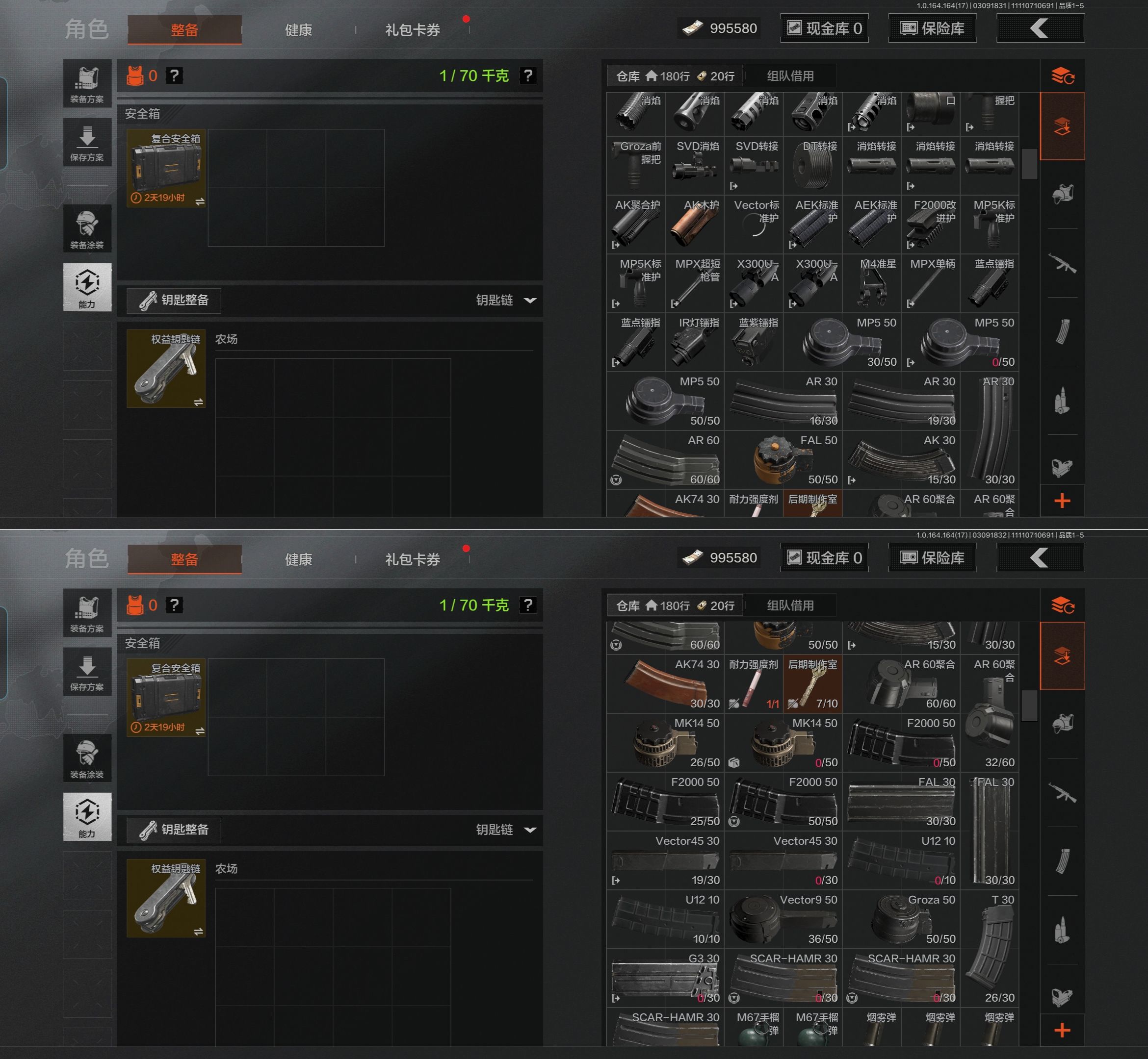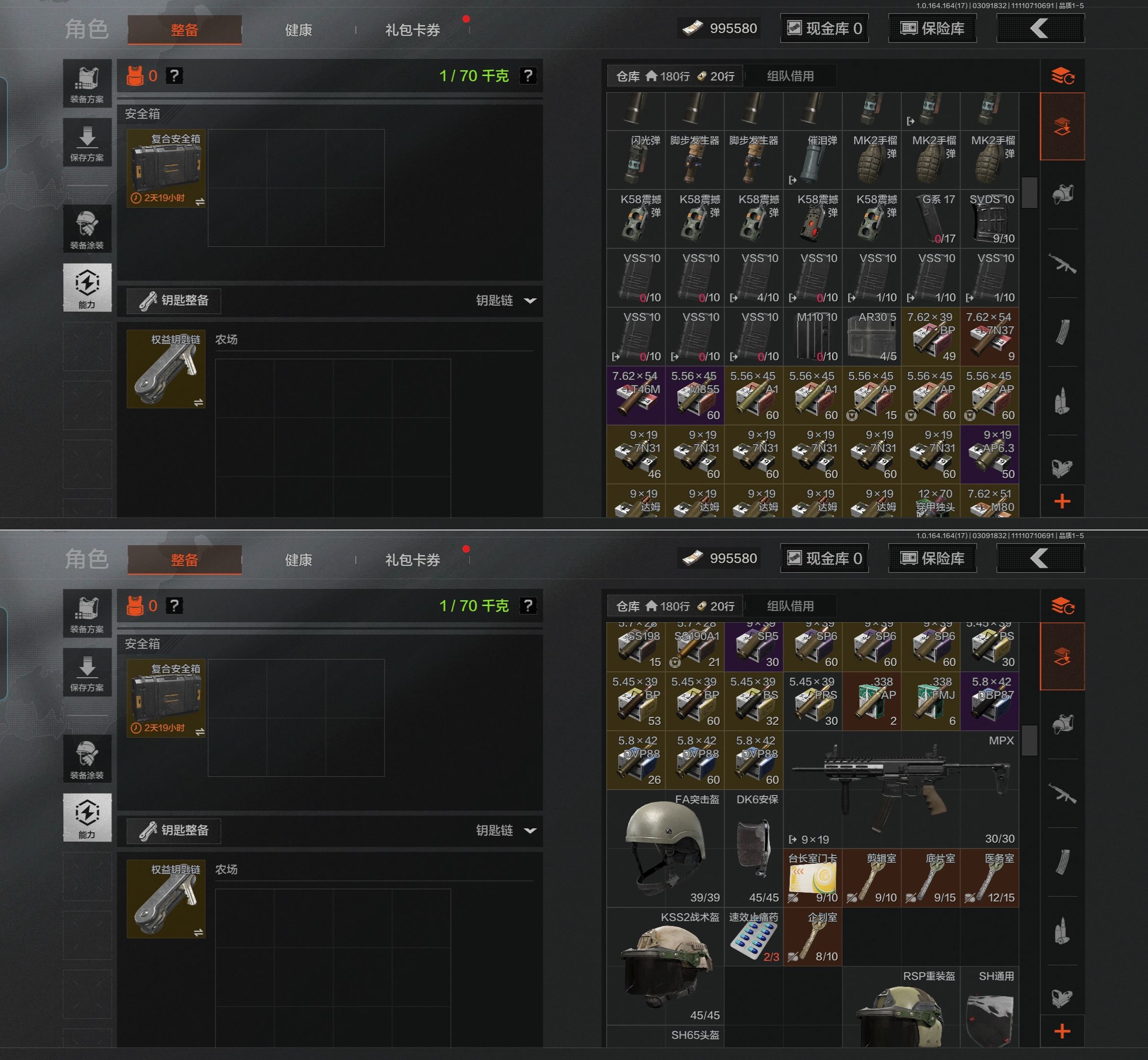 [17467567]库存价值36.7 3近战武器 10金枪皮 可修改实名 【柯恩币数量】1.1m 【近战武器】突击匕首,工兵铲,涂鸦利刃 【金色枪皮】地脉深处·ACE31,包络战术·AKM,战术大师·AN94,旧王圣谕·VSS,镀火熔金·H416,旧王圣谕·QBZ191,旗帜·AEK,利齿风暴·MPX,告丧夜曲·AR57,骑士之剑·VSS 【紫色枪皮】伦琴计量·SCAR,鱼跃丹青·QBU191,鱼跃丹青·DT MDR,鱼跃丹青·AK102,典礼武备·14,猩红羽翼·VSS,火力倾泻·AUG,棱光裂变·AKM,利齿风暴·T79,利齿风暴·T03,粉绒臻选·AN94,包络战术·莫辛,动感舞步·ACE31,包络战术·AK74N,宝石籽料·T951,宝石籽料·S12K,宝石籽料·AR15,宝石籽料·FAMAS,宝石籽料·P90,宝石籽料·MPX,战术大师·Suomi,战术大师·SVDS,旗帜脉冲·M110,骑士之剑·Groza,涂鸦·MPX,涂鸦·G18C,最后防线·AEK 【角色装扮(紫)】王国卫队礼装,等高线运动套装,和平先锋作战套装,财团之手作战套装,台风IV竞技运动服【AQZG1612】等级:30/段位:暗区传说/仓库价值(百万):54.6/柯恩币:284238/角弓得控手套/急袭弯刀/胜利军刀/盘牙彻甲短刃/赢家匕首/蝮蛇/冥河/苍白隐者伪装服/深潜行者II/钢铁壁垒作战服/机车朋克战衣/冰河碎影MK14/骑士之剑VSS/钢铁真理QBZ191/竞技FAL/诸星之子FAL/林中人FAL/蓝色咆哮H416/冬夜AK12/棱光裂变QBU191