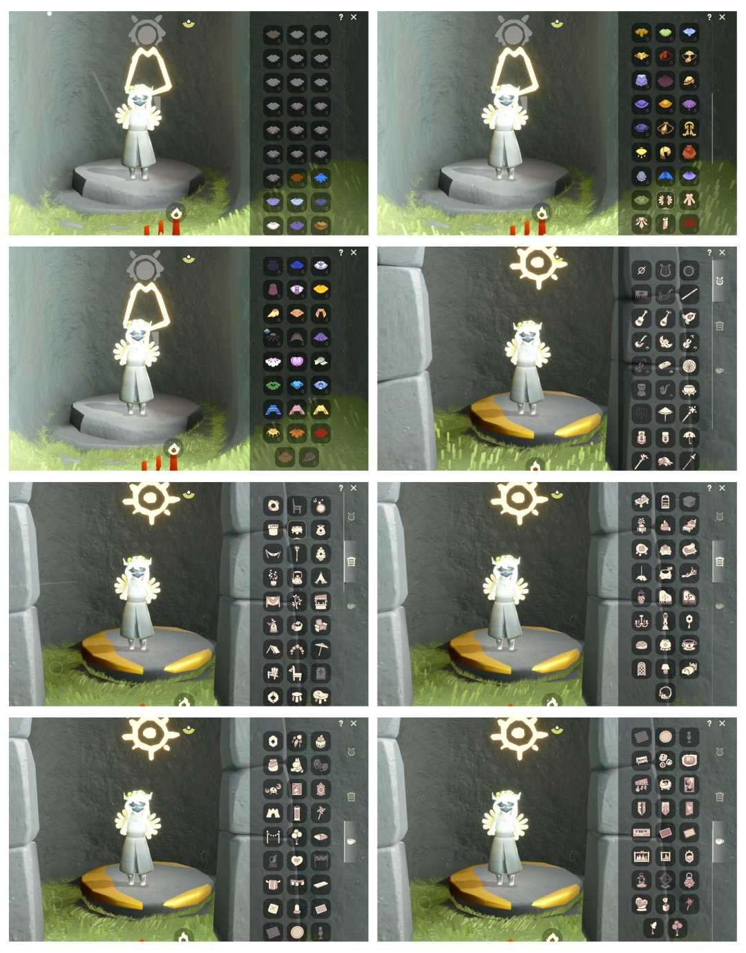 热门复刻:背带裤 人字拖 白棉裤 搓澡巾 连体衣 武士裤 击剑连体衣 过膝长袍 鼬鼠面具 老爷爷面具 修行面具 兔子尾巴 斗笠 公主头 书虫 正太 高马尾 明制帽 箬笠 花环 虚荣 平顶帽 猫猫头 半扎马尾 樱花发型 猫耳发型 单片羽毛 花环发饰 红耳机 断角发饰 飘带耳坠 兰花斗 荧蓝斗 幽兰斗 黑金斗 白金斗 蔚紫斗 道袍 飞鸟斗 小浣熊斗 花羽斗 绿芽斗 海浪斗 暗彩斗 圣诞斗 电吉他 雨伞 小铲子 圣诞板凳 "