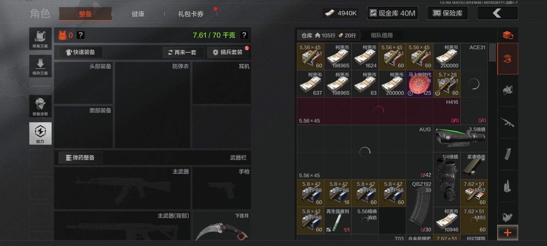 MWT4769【热能武器·补牢】无二次包-苹果Q-等级30-仓库价值32.2M-科恩币6162K-【套装】和平先锋作战套装 财团之手作战套装 都市夜影套装【枪皮】告丧夜曲·AR57 告丧夜曲·AUG 旗帜·AEK 利齿风暴·MPX 黑金弹头·P90【近战武器】 热能武器·补牢 工兵铲