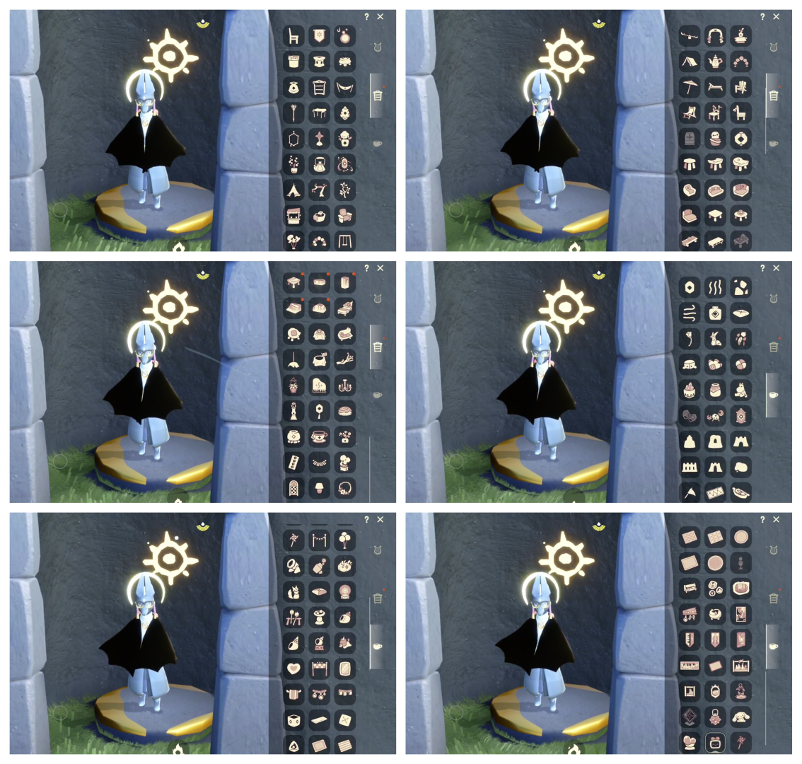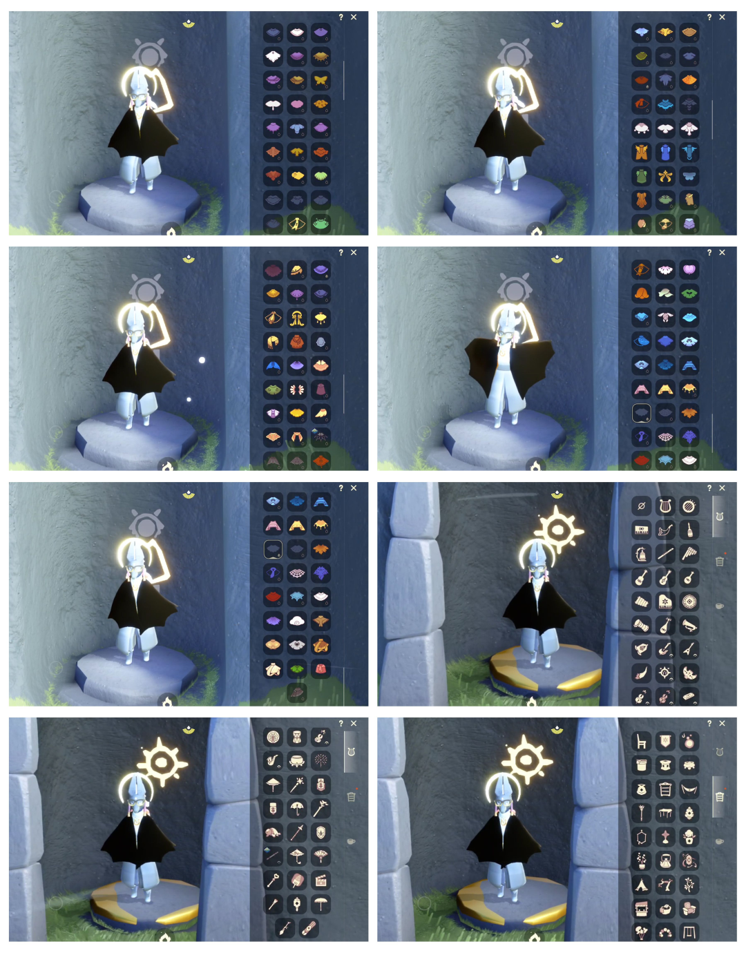 热门礼包:蝙蝠套 蝙蝠斗篷 蛛网斗篷 透明蛛丝 皮皮猫斗篷 TGC 小王子围巾 星球夹克 欧若拉之翼 妮妮斗篷 福娃套 锦鲤套装 海龟斗篷 五周年线框斗篷 鸦羽斗篷 暖冬瑞雪 白雪斗篷 流星斗篷 大耳狗斗篷 文雀斗篷 绊爱套 飞蛾斗篷 粽叶斗篷 风之旅人 超凡风旅 音韵吉他 欧若拉之声 电吉他 凯旋提琴 祥云伞 折扇 爱心手杖 灯笼 夏日阳伞飞行扫帚 秋千 花憩茶桌 小憩茶桌 音乐桌 狐狸背包 小船 南瓜 皮皮猫 水晶球 奥利奥抱枕 大耳狗抱枕 铁头 篝火点心 自然之声 彩色泡泡机 远行服饰 致爱装扮 牛仔裤 女巫桌 爱丽丝装扮 连衣裙 披肩外袍 月华服饰 鹊桥相会 夏日凉拖 兔拖 雪人靴 祥云服饰 彩虹武士裤 龙鳞束身 火焰墨镜 爱心墨镜 优雅领巾 水母肩饰 姆明尾巴 有友帽子 海洋发型 多彩绒帽 巫师帽 双马尾 蝴蝶与花 桔子 小鱼 小狗头饰 雪花 贝壳 锦标赛桂冠 大耳狗发饰 四叶草 大耳狗头饰 心心相印 星月发饰 神鹿鹿角 彩虹耳钉 彩虹耳机 日光耳环 满月耳坠 枯角 圣诞鹿角 KFC斗篷