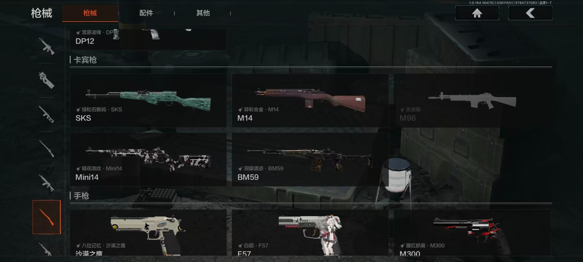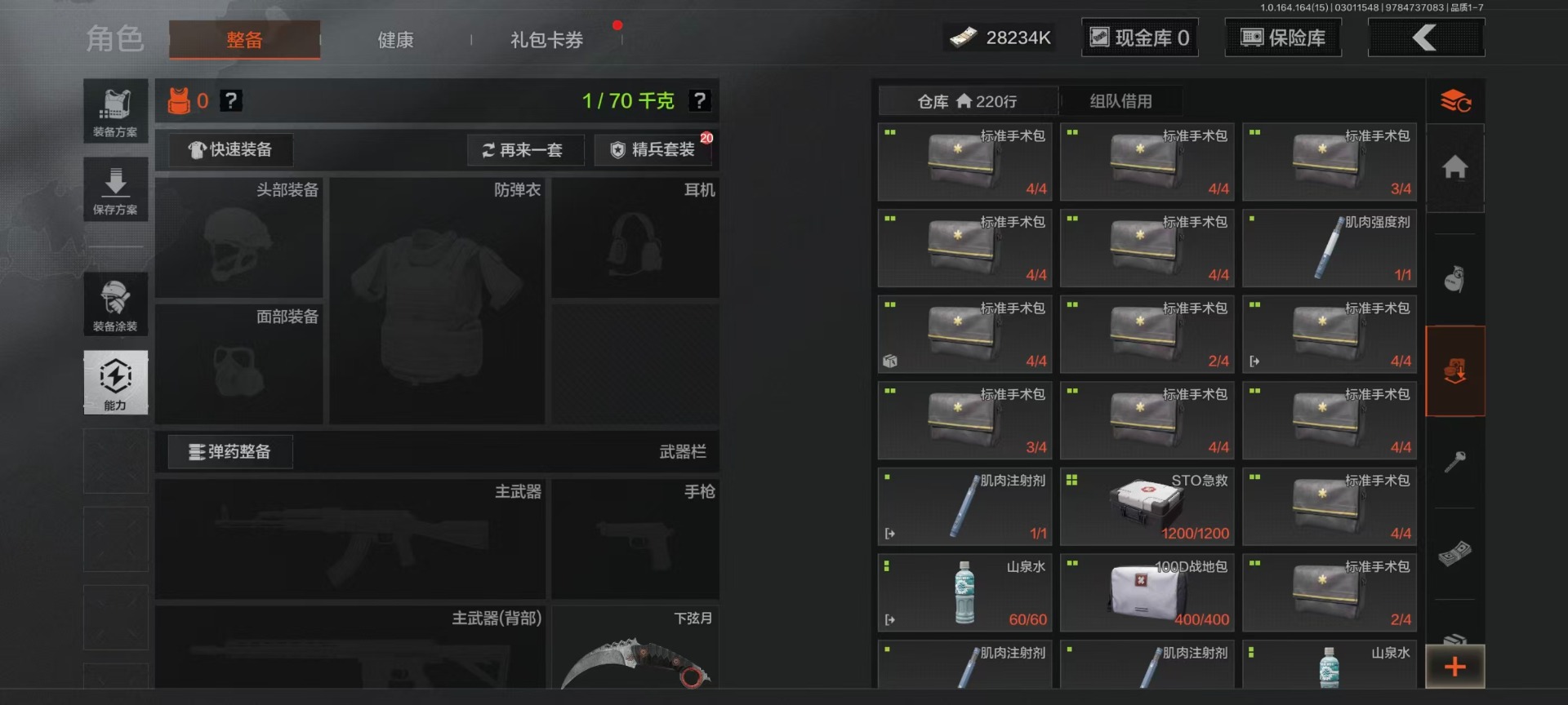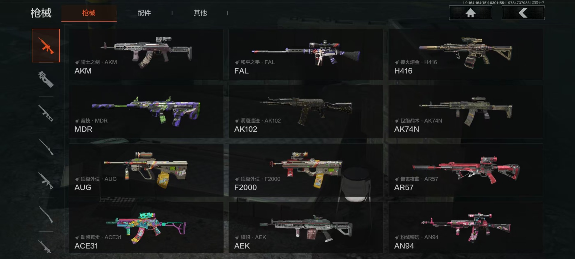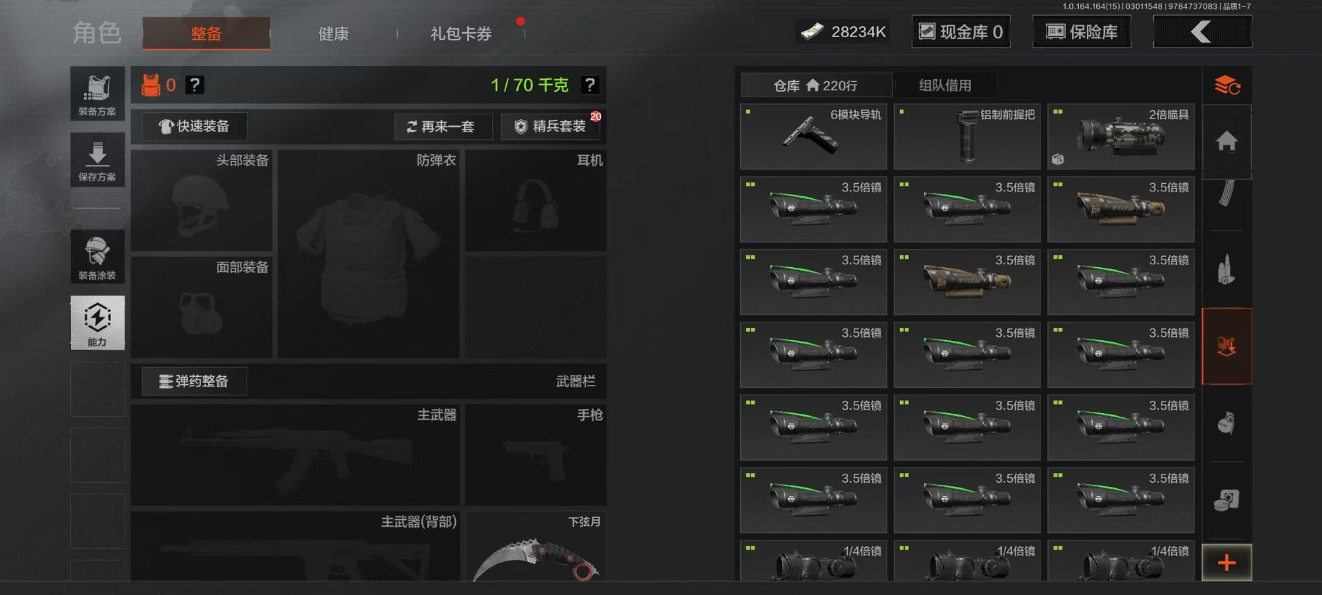 【AQZG1612】等级:30/段位:暗区传说/仓库价值(百万):54.6/柯恩币:284238/角弓得控手套/急袭弯刀/胜利军刀/盘牙彻甲短刃/赢家匕首/蝮蛇/冥河/苍白隐者伪装服/深潜行者II/钢铁壁垒作战服/机车朋克战衣/冰河碎影MK14/骑士之剑VSS/钢铁真理QBZ191/竞技FAL/诸星之子FAL/林中人FAL/蓝色咆哮H416/冬夜AK12/棱光裂变QBU191[17467567]库存价值36.7 3近战武器 10金枪皮 可修改实名 【柯恩币数量】1.1m 【近战武器】突击匕首,工兵铲,涂鸦利刃 【金色枪皮】地脉深处·ACE31,包络战术·AKM,战术大师·AN94,旧王圣谕·VSS,镀火熔金·H416,旧王圣谕·QBZ191,旗帜·AEK,利齿风暴·MPX,告丧夜曲·AR57,骑士之剑·VSS 【紫色枪皮】伦琴计量·SCAR,鱼跃丹青·QBU191,鱼跃丹青·DT MDR,鱼跃丹青·AK102,典礼武备·14,猩红羽翼·VSS,火力倾泻·AUG,棱光裂变·AKM,利齿风暴·T79,利齿风暴·T03,粉绒臻选·AN94,包络战术·莫辛,动感舞步·ACE31,包络战术·AK74N,宝石籽料·T951,宝石籽料·S12K,宝石籽料·AR15,宝石籽料·FAMAS,宝石籽料·P90,宝石籽料·MPX,战术大师·Suomi,战术大师·SVDS,旗帜脉冲·M110,骑士之剑·Groza,涂鸦·MPX,涂鸦·G18C,最后防线·AEK 【角色装扮(紫)】王国卫队礼装,等高线运动套装,和平先锋作战套装,财团之手作战套装,台风IV竞技运动服
