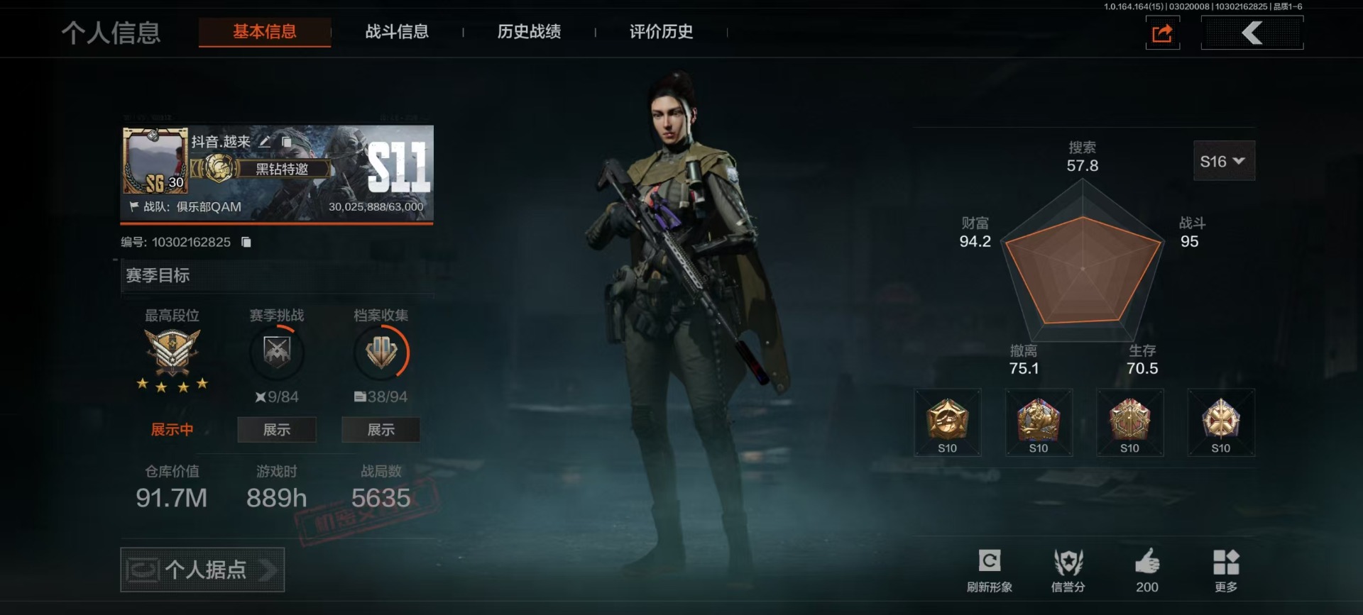 【AQD233】等级:30/段位:暗区传说/仓库价值(百万):12/柯恩币:80000/胜利军刀/白蔷薇斯黛拉