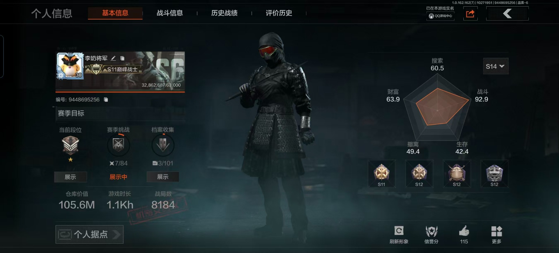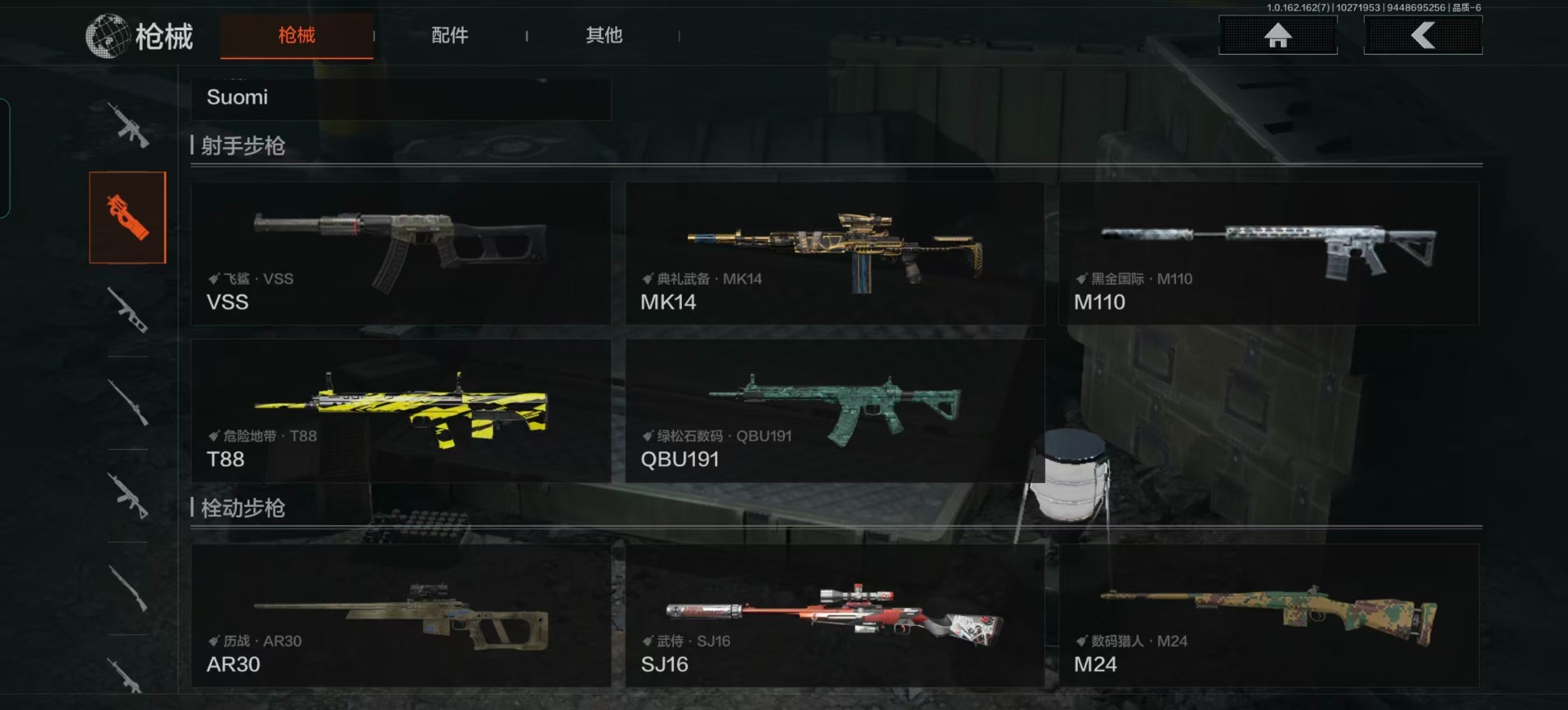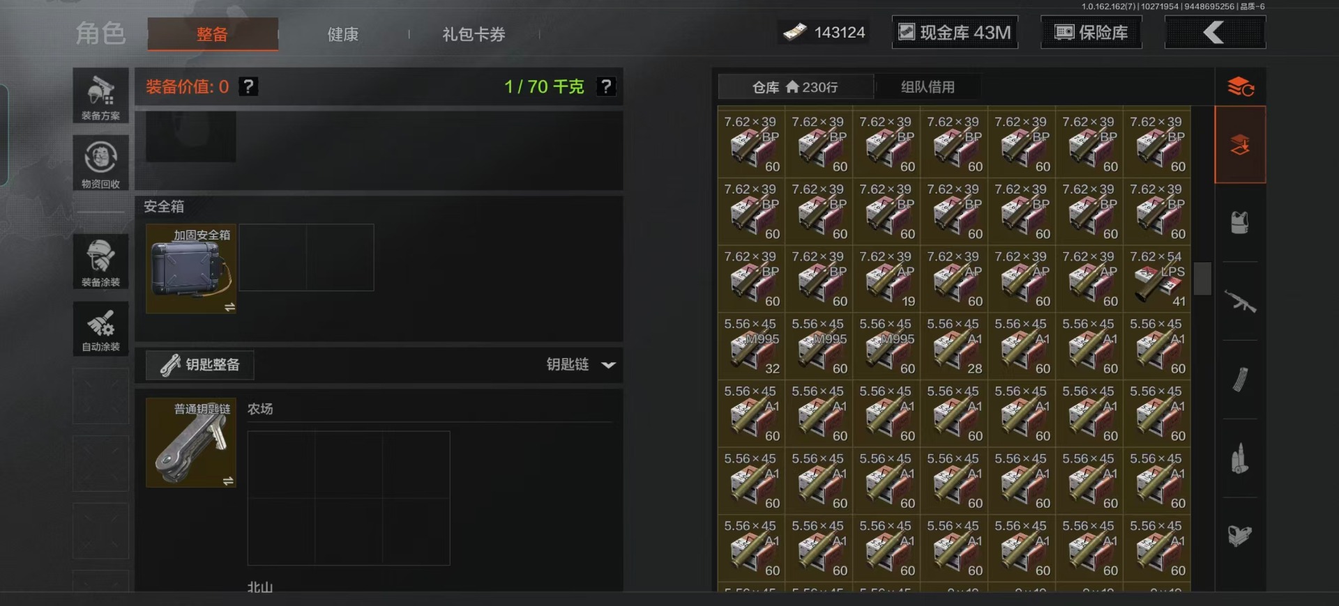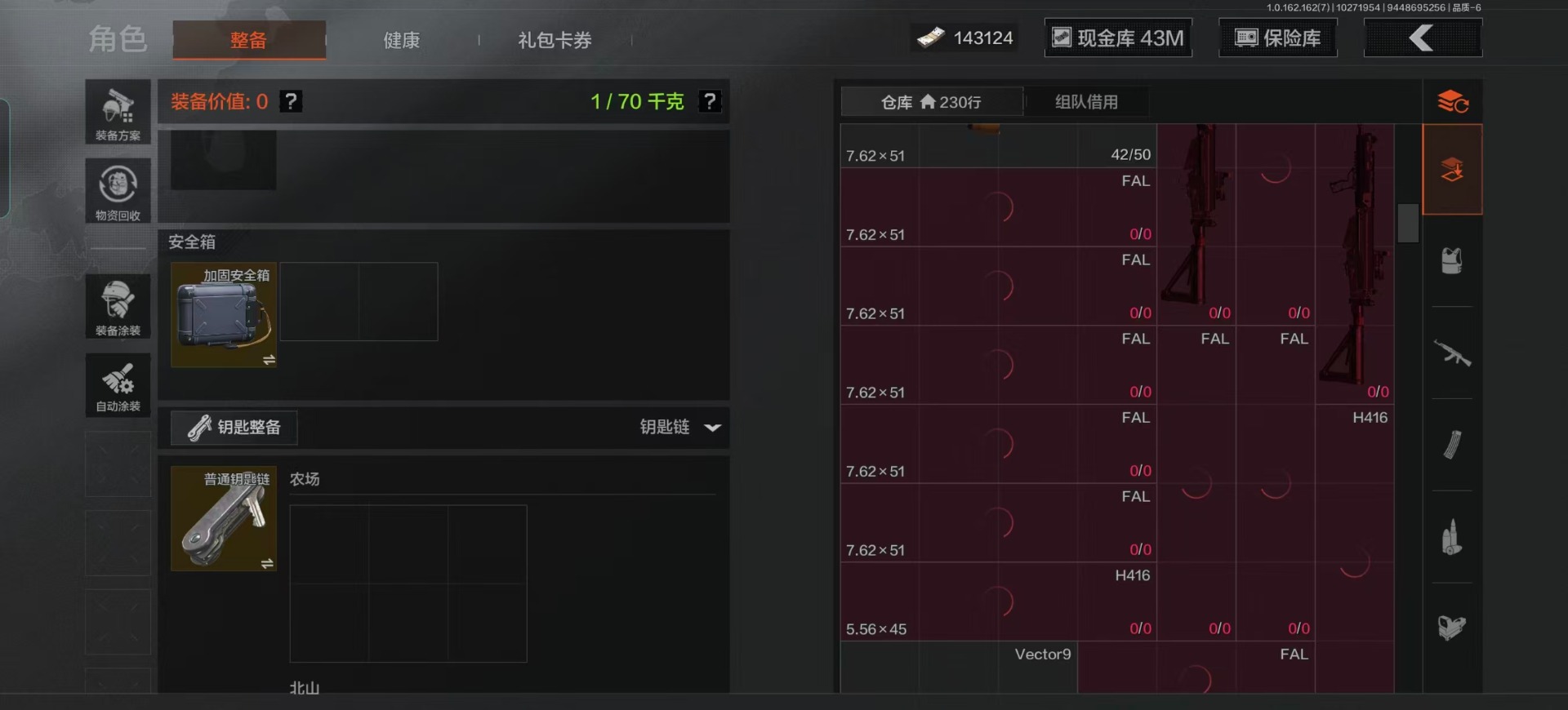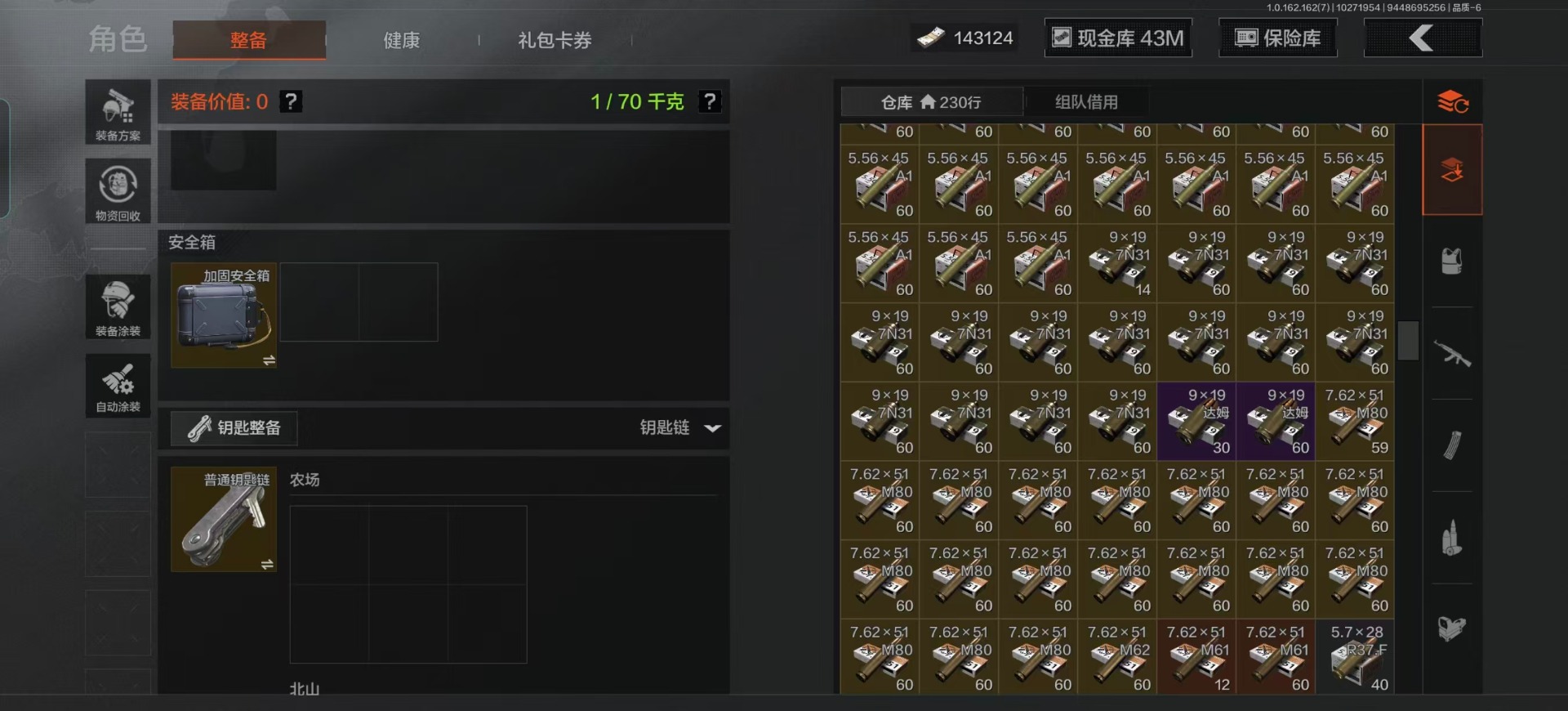 库存价值13.7 1近战武器 7金枪皮 可修改实名 【柯恩币数量】:1848【近战武器】:下弦月【金色枪皮】:告丧夜曲·AUG,旗帜·AEK,棱光裂变·QBU191,告丧夜曲·AR57,旧王圣谕·QBZ191,旧王圣谕·VSS,战术大师·AK102【紫色枪皮】:旗帜·SVDS,棱光裂变·ACE31,棱光裂变·AK74N,棱光裂变·AK102,棱光裂变·AKM,最后防线·AEK,禁止访问·UMP45,北国内卫·AN94,骑士之剑·SJ16,竞技·AUG,炎夏浪花·H416,快乐游戏·M110,典礼武备·M249,典礼武备·14,典礼武备·GROZA,猩红羽翼·VSS,无声暗月·AR57,竞技·M4A1,逆火·MDR,极恶·AUG,湖冰倒影·MP5,缟兵玄墨·MPX,07式林地迷彩·QBZ191,轰炸·AX50,娜迦·RPK16,涂绘猎人·AR57【角色装扮(紫)】:都市夜影套装