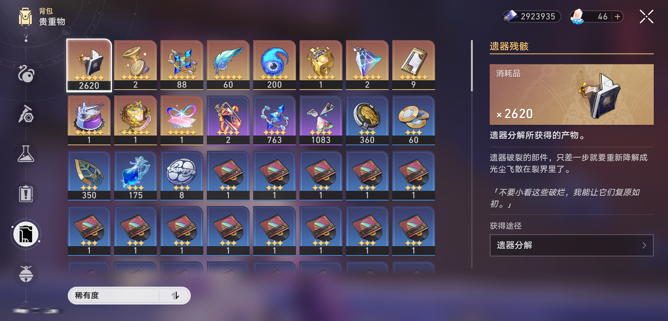 商品描述:【崩坏·星穹铁道】【LYXQ6871】冒险等级:70,女主,五星数量:36,绑定情况:邮箱__五星角色:杰帕德 * 2命|白露 * 2命|姬子 * 2命|遐蝶 * 1命|布洛妮娅 * 1命|风堇|缇宝|长夜月|丹恒·腾荒|白厄|波提欧|银枝|忘归人|阮·梅|阿格莱雅|乱破|丹恒·饮月|罗刹|云璃|刻律德菈|Archer|瓦尔特|彦卿|希儿|真理医生__五星光锥:记一位星神的陨落 * 5精|比阳光更明亮的|驶向第二次生命|忍法帖·缭乱破魔|金血铭刻的时代|制胜的瞬间|让告别,更美一些|但战斗还未结束|星海巡航|以世界之名|银河铁道之夜,【邮箱未实名】