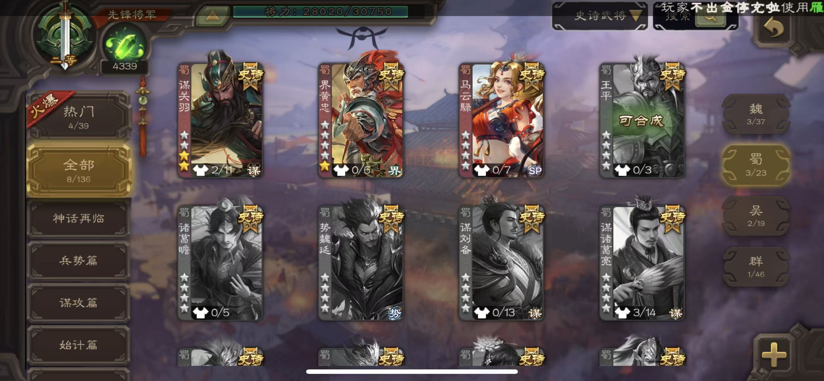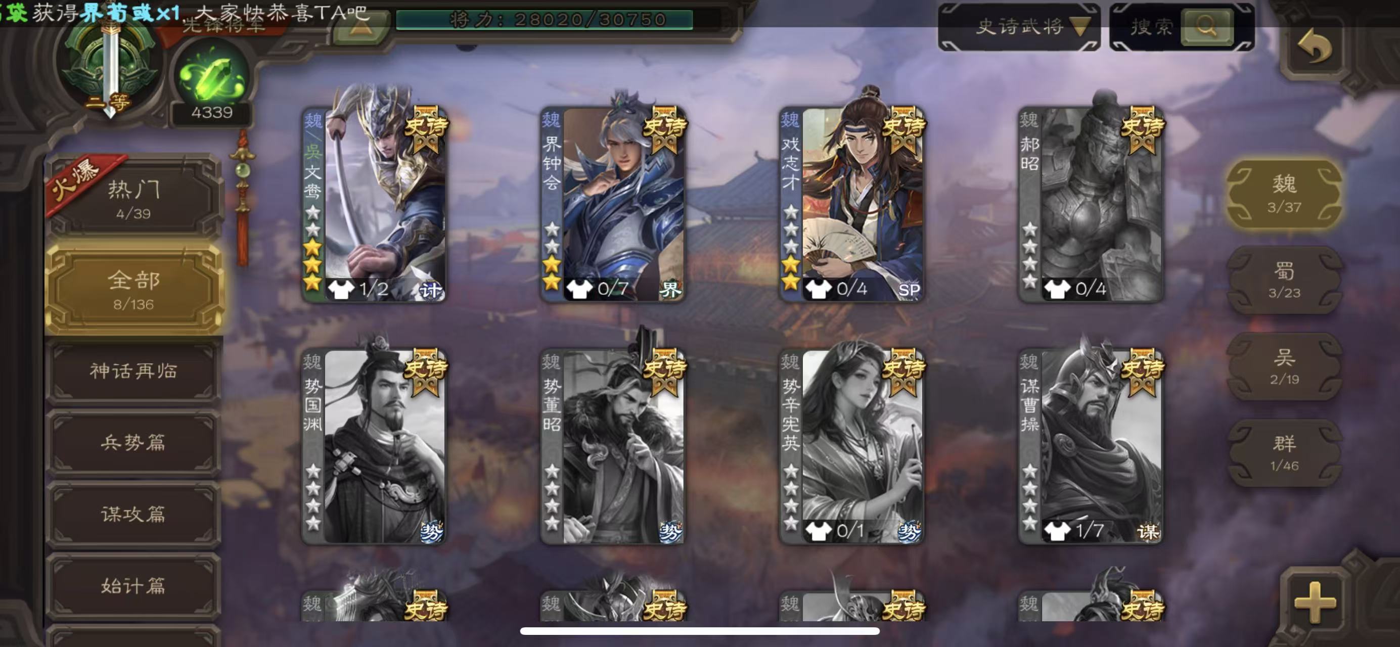 先锋界沮授花花三卡二等骠骑动态神荀彧必胜客天子令曹丕动态大宝裴秀动态戏子动态界钟会白马神太史慈三卡18史诗