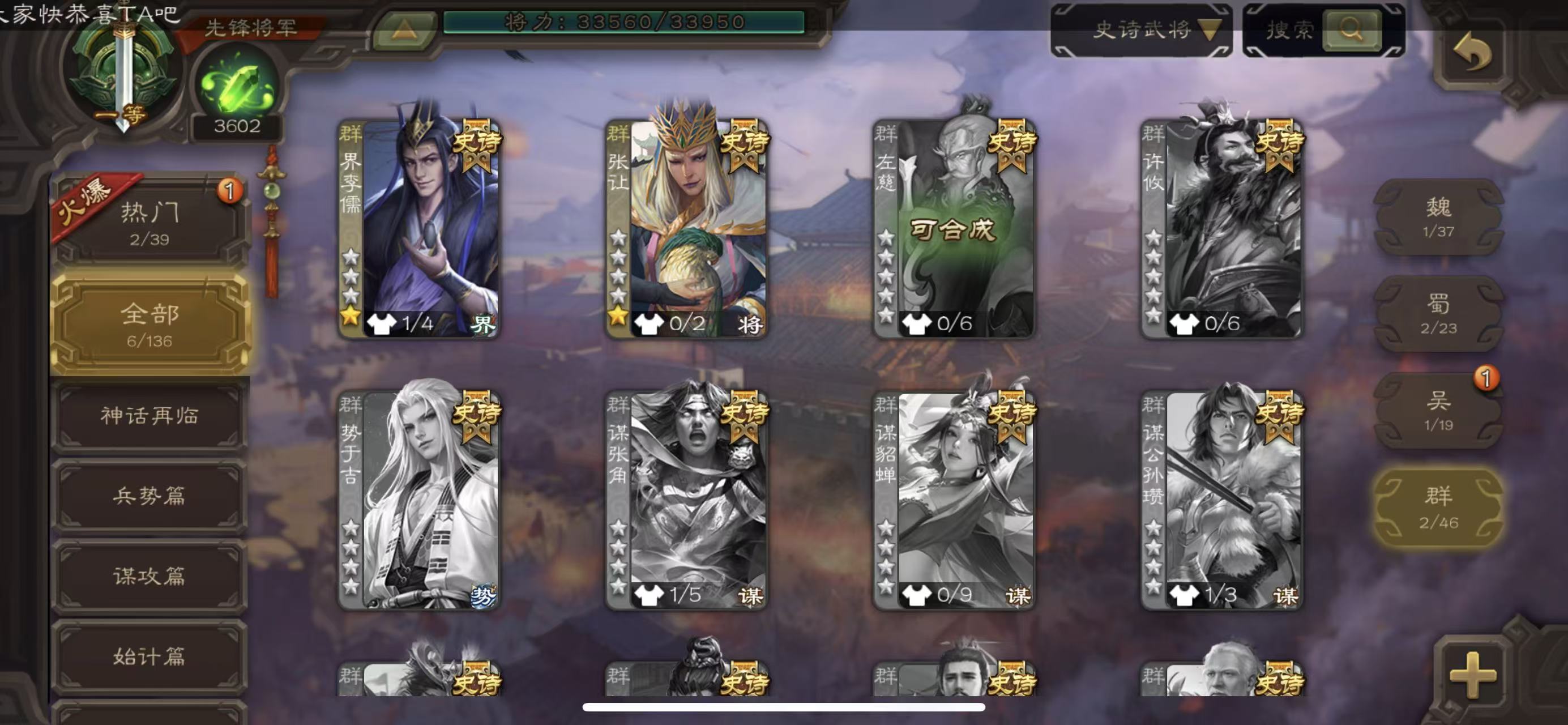 先锋界沮授花花三卡二等骠骑动态神荀彧必胜客天子令曹丕动态大宝裴秀动态戏子动态界钟会白马神太史慈三卡18史诗