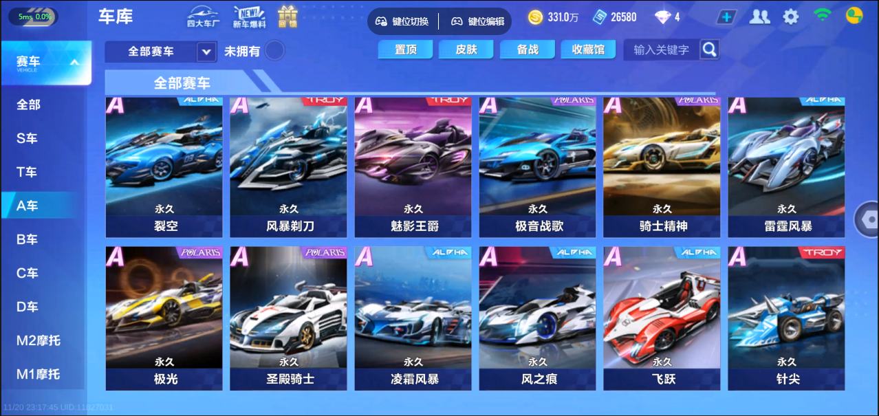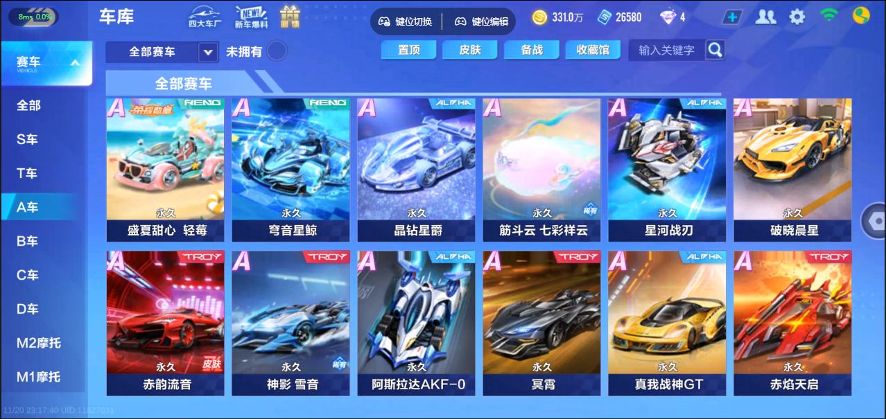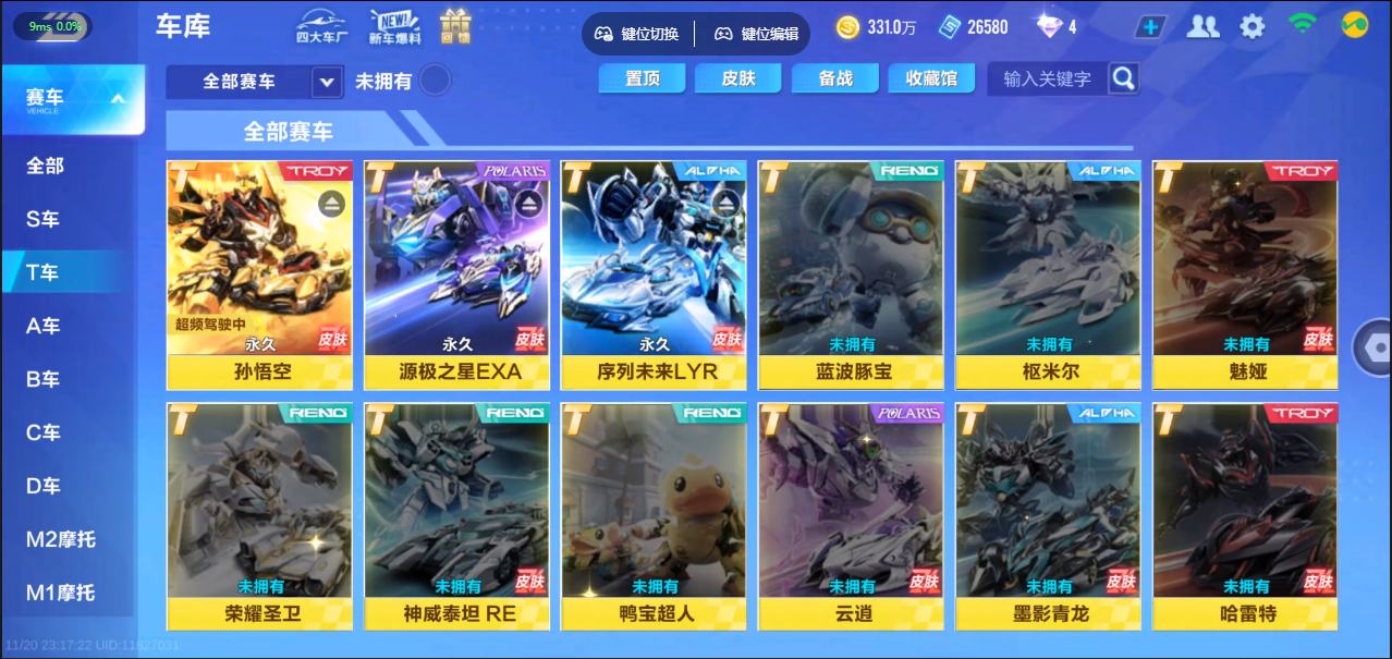 [14043231]【永久T车】:源极之星EXA,序列未来LYR,孙悟空,奥莉娜,哈雷特【联赛A车】:S-裁决者,S-冰魄,S-流火,S-时序使者,S-天行者,S-逐星者【时装】:创世之神套装,死神套装,幻蝶套装,倾世之礼套装,明日之诗套装,鲸徊夜梦套装,水龙吟套装,沧海梦境套装【宠物】:帝皇魂狮,火狱龙息,瑞泽祥麟