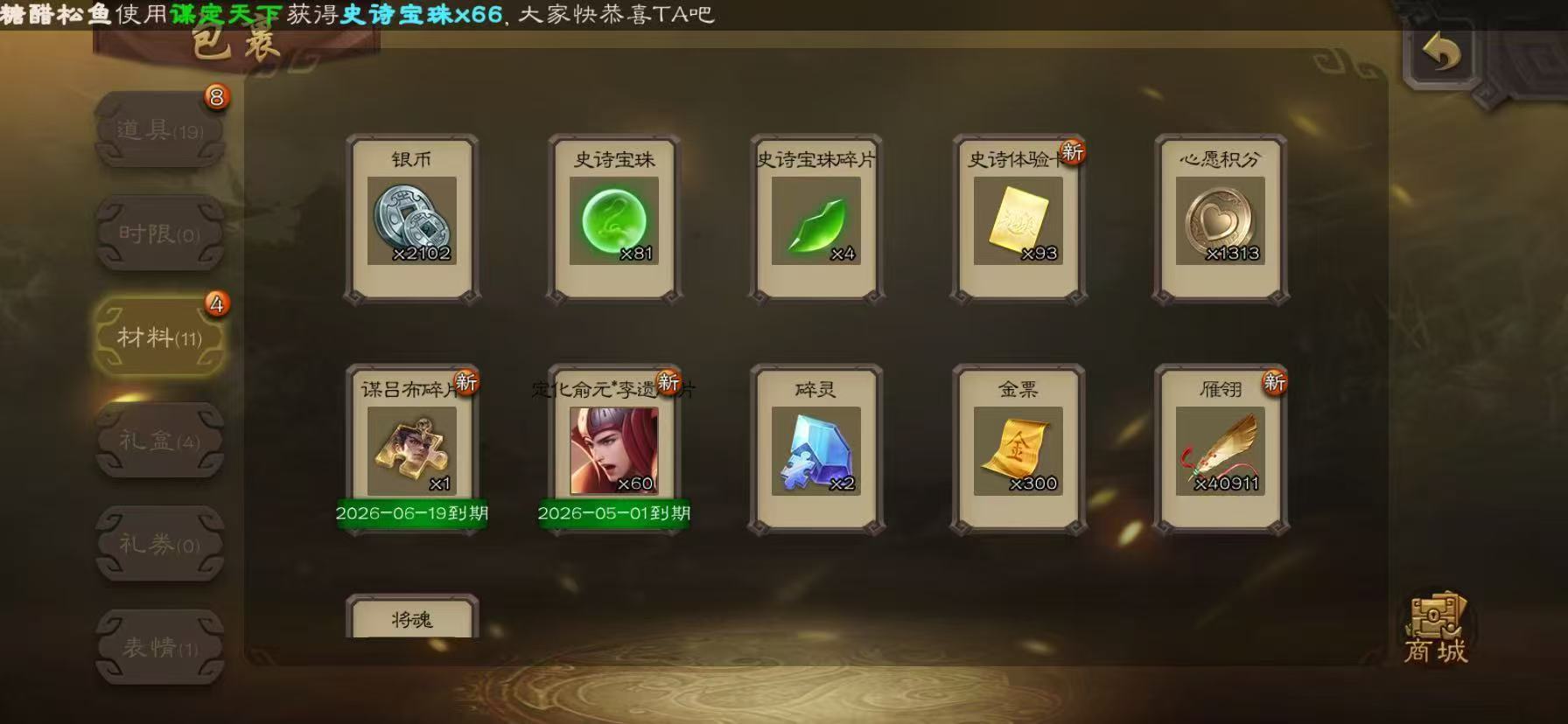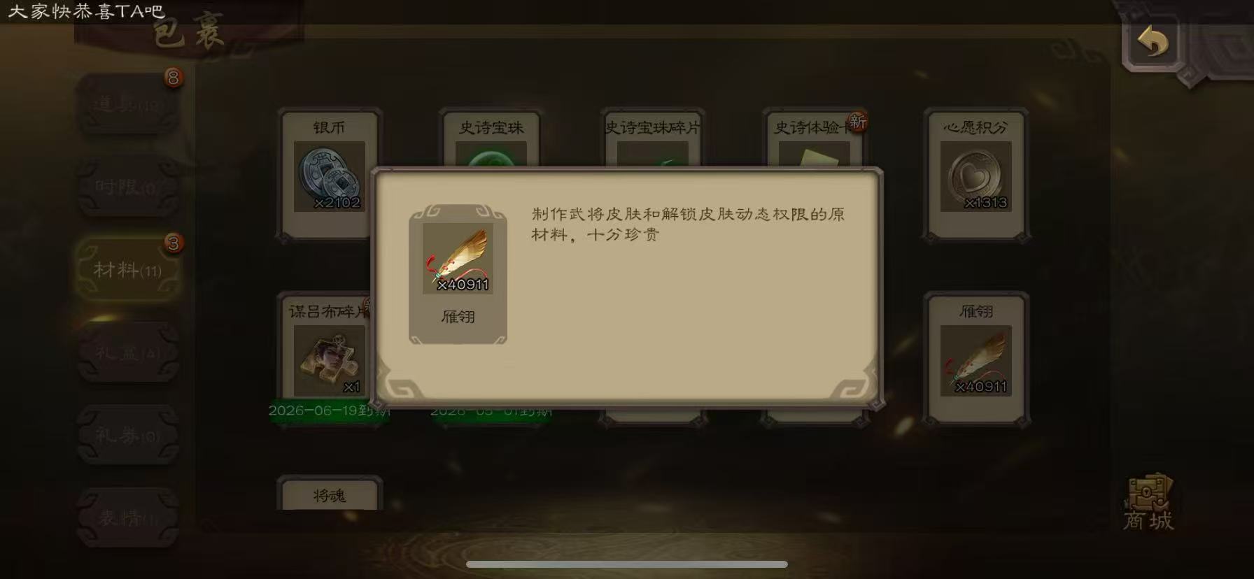商品描述:十夫长81宝珠戏子曹婴4万羽毛三卡