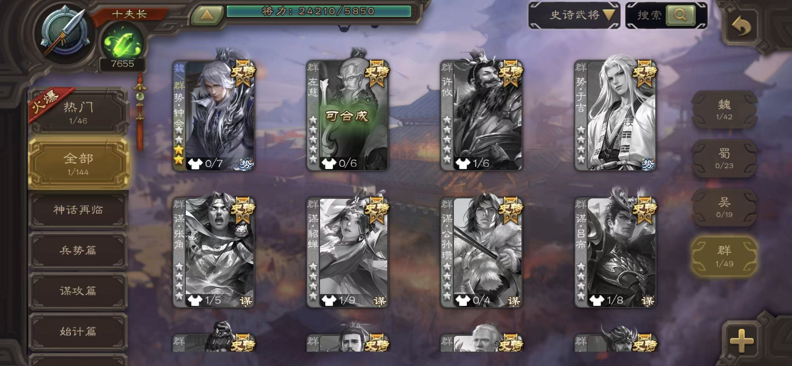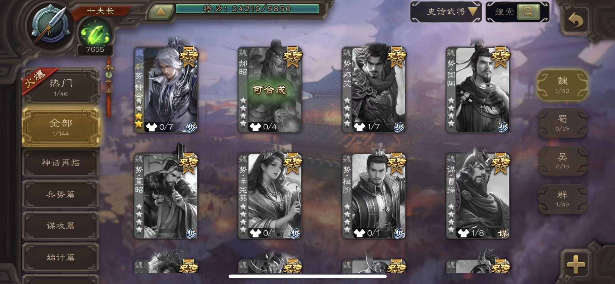 商品描述: 千夫长势钟会8万羽毛7600将魂三卡