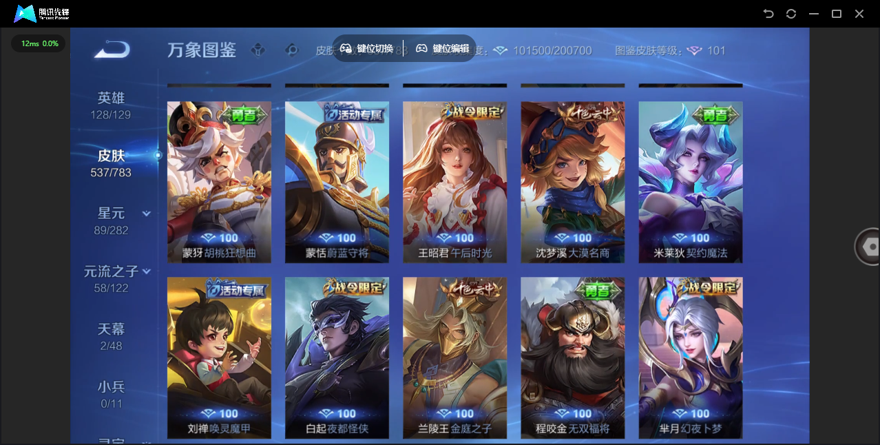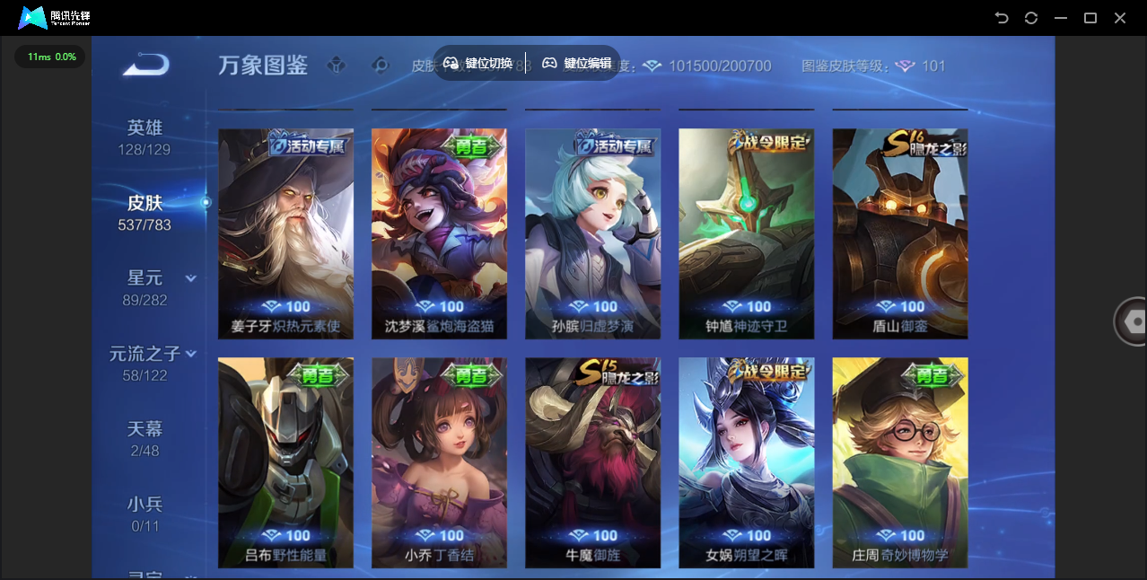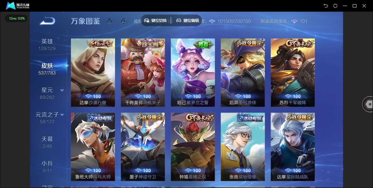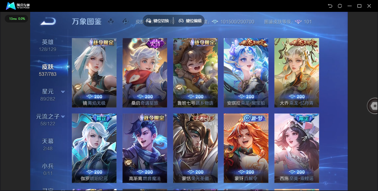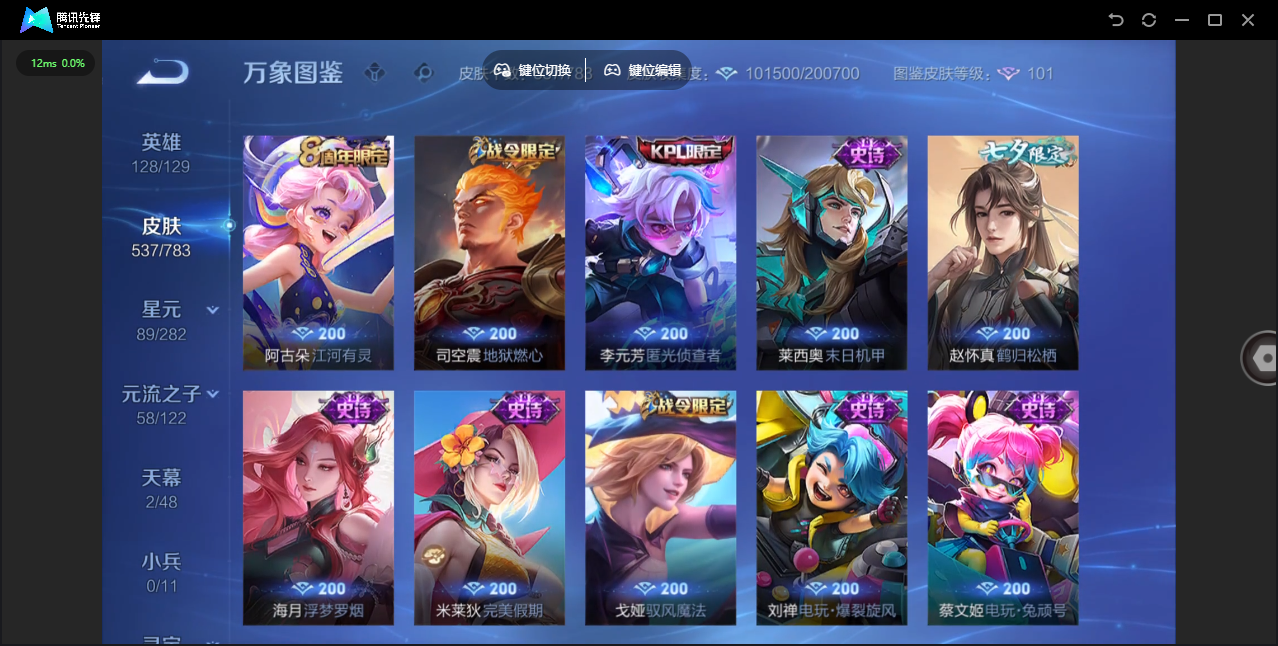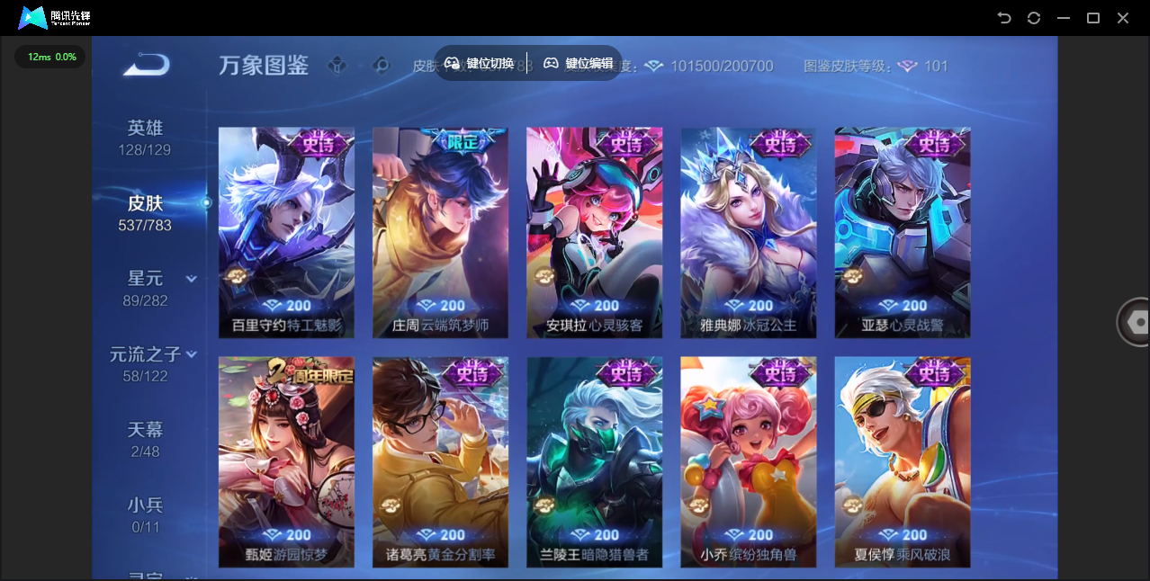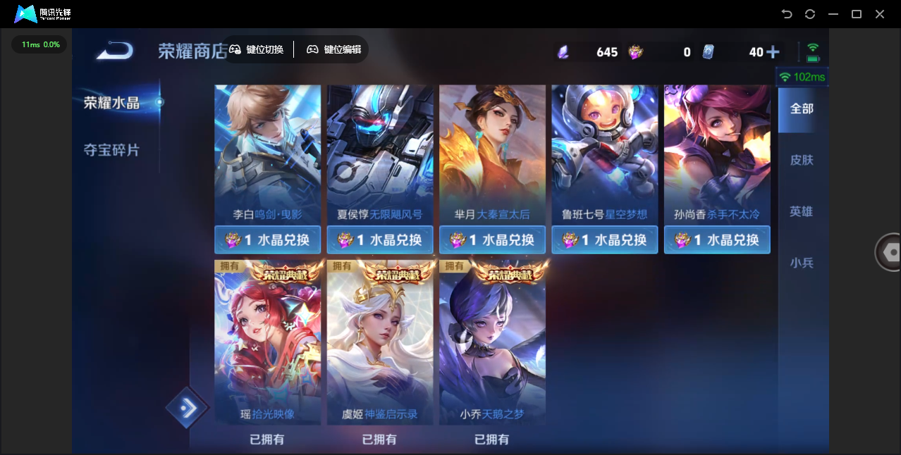 【QQ(安卓)】贵族0-贵族积分0万-0英雄-0皮肤 【抢先服】2万金币+回归150级铭文+改名卡