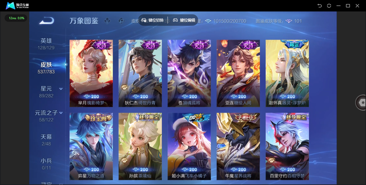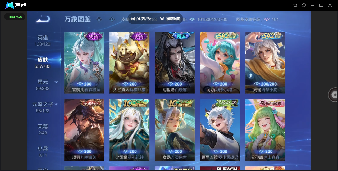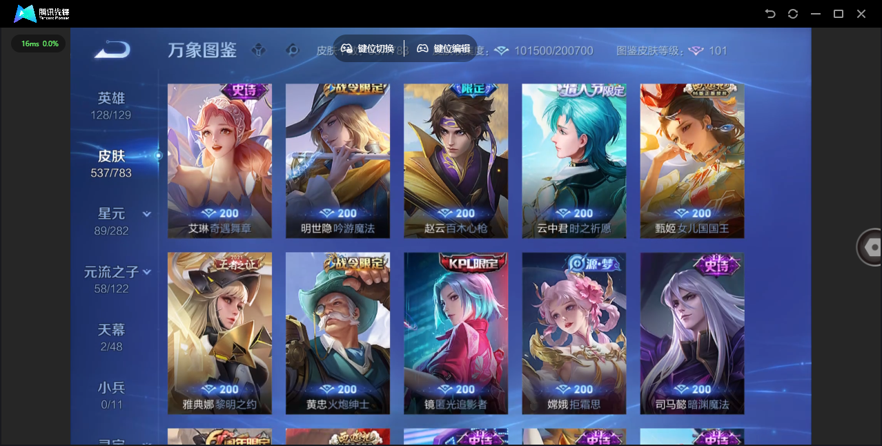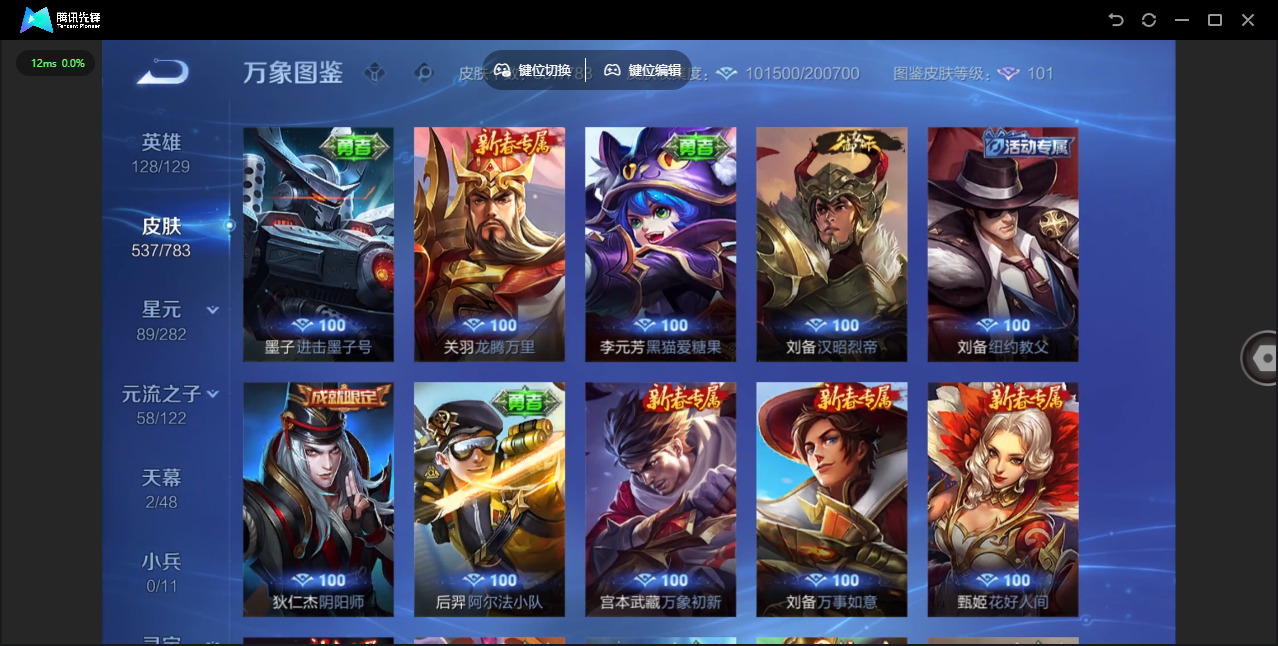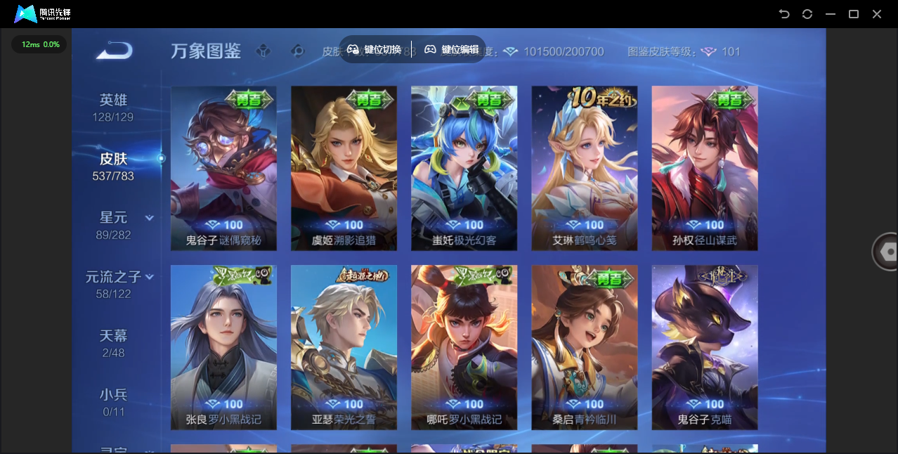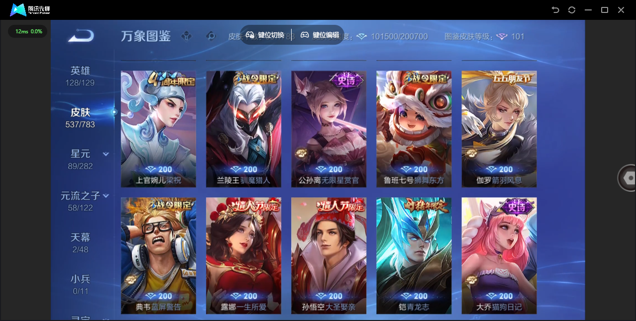 【QQ(安卓)】贵族0-贵族积分0万-0英雄-0皮肤 【抢先服】2万金币+回归150级铭文+改名卡