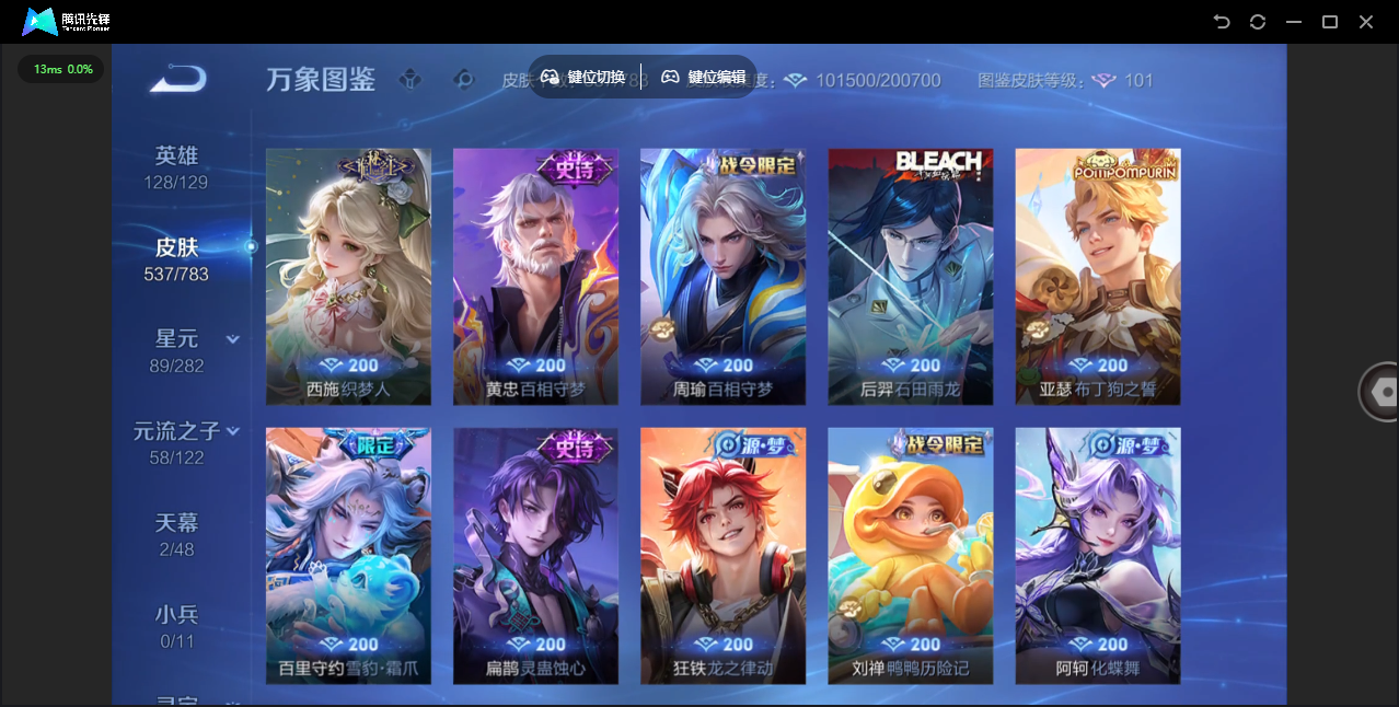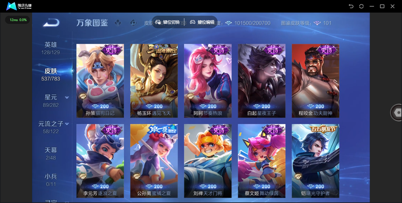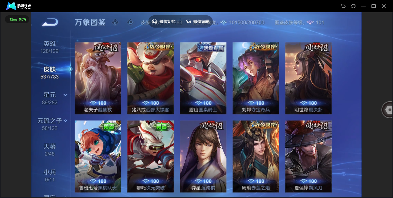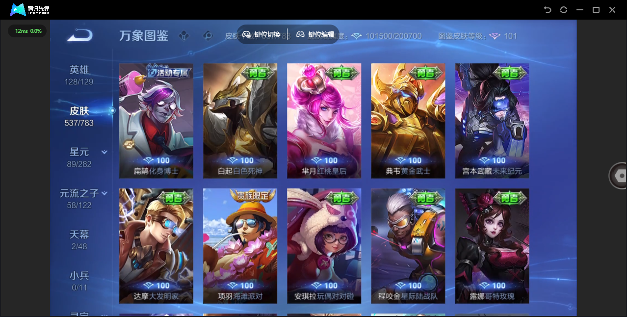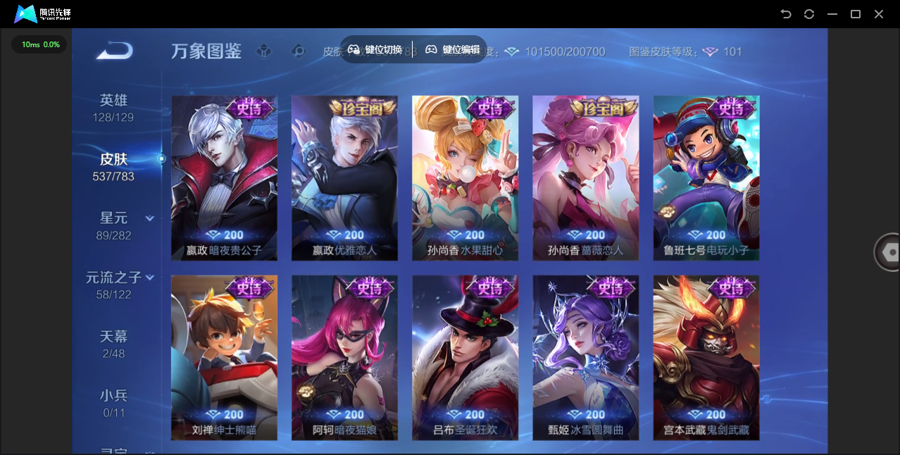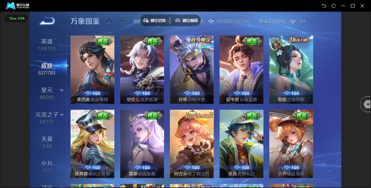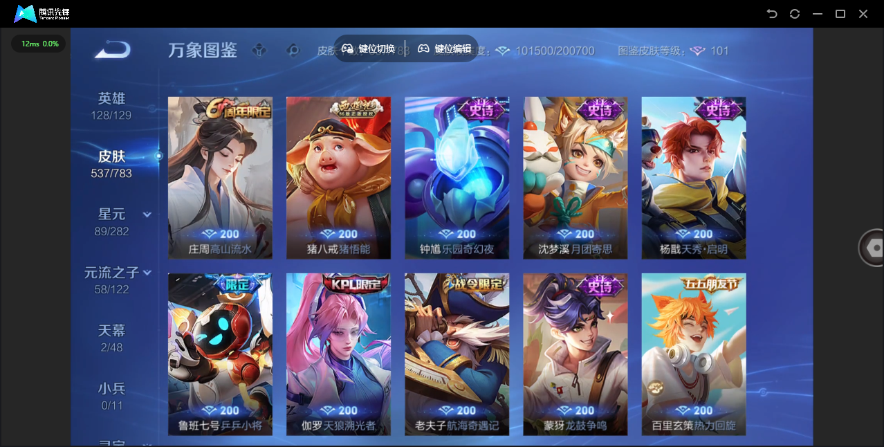 【QQ(安卓)】贵族0-贵族积分0万-0英雄-0皮肤 【抢先服】2万金币+回归150级铭文+改名卡