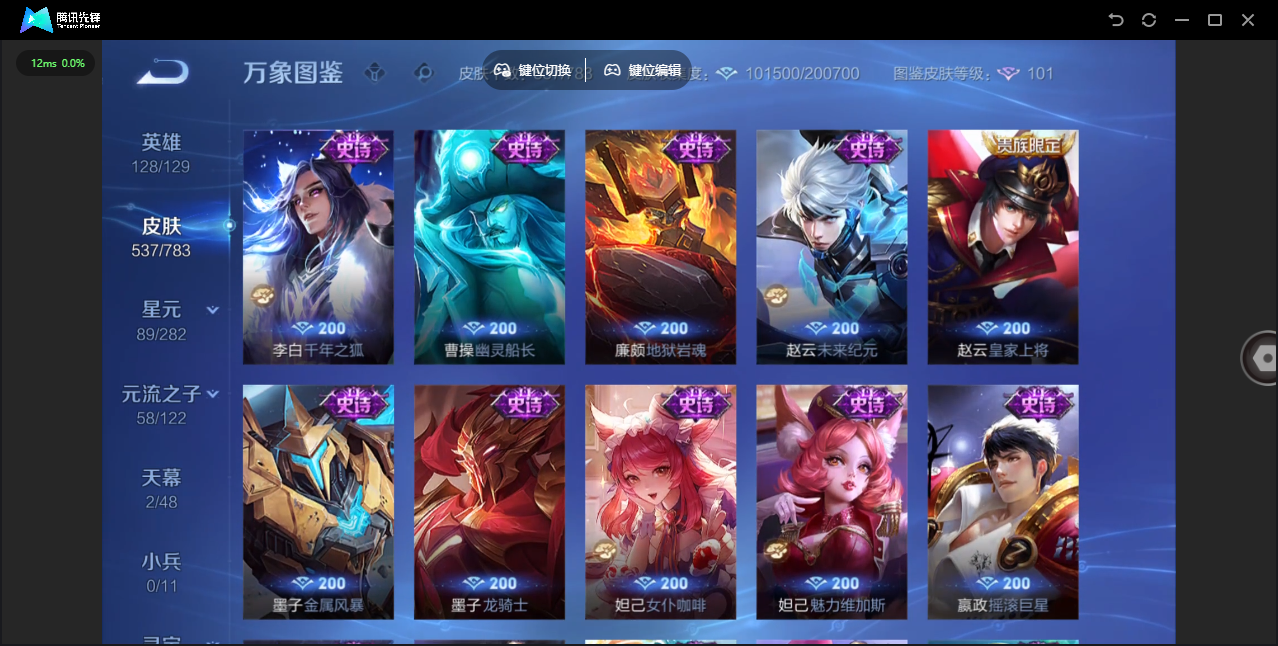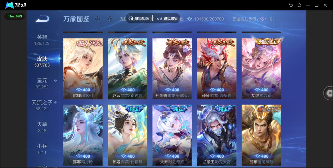 商品描述:安卓QQ/非凡王者/537皮肤/128英雄/3典藏/0珍品无双/3无双/4珍品传说/80传说/176史诗/9稀有英雄 【4 珍品传说】沧流箭 伽罗,酷洛米之心 安琪拉,大耳狗之梦 瑶,器灵·落星盏 嫦娥, 【3 典藏皮肤】天鹅之梦 小乔,神鉴启示录 虞姬,拾光映像 瑶, 【3 无双皮肤】时之魔女 小乔,青丘·九尾 妲己,器灵·螭龙剑 曜, 【80 传说皮肤】枫霜尽 橘右京,鹤归松栖 云缨,启明星使 虞姬,云霓雀翎 虞姬,无限倾心 虞姬,花朝如约 蔡文姬,时之祈愿 瑶,电玩·雷克斯 澜,飞鸢探春 李元芳,地狱火 孙悟空,云鹰飞将 曜,补天 女娲,追逃游戏 亚瑟,觅芳踪 艾琳,游龙清影 西施,追逃游戏 安琪拉,凤求凰 李白,燃星之曲 花木兰,灼幽烈阳 东皇太一,浮生妄 夏洛特,猫影幻舞 貂蝉,仲夏夜之梦 貂蝉,落雪白狼 亚连,神骥·赴朔漠 狄仁杰,惊梅引 宫本武藏,神骥·鸣幻洲 朵莉亚,影龙天霄 兰陵王,神骥·聚万邦 貂蝉,记忆之芯 公孙离,神骥·逐星野 马超,地狱之眼 宫本武藏,神骥·镇沧海 关羽,神骥·越千峰 云缨,默契交锋 兰陵王,鹤羽星尊 诸葛亮,海洋之心 武则天,音你心动 周瑜,炽阳神光 镜,黄金射手座 后羿,遇见神鼓 吕布,霜月吟 露娜,乞巧织情 王昭君,乘龙·问璇玑 孙尚香,时之恋人 刘备,黄金狮子座 达摩,绯月行 不知火舞,久胜战神 干将莫邪,末日机甲 孙尚香,乘龙·淬吴钩 孙策,山海·炽霜斩 李信,一念神魔 李信,音你心动 小乔,画中仙 干将莫邪,山海·琳琅生 小乔,淬星耀世 赵云,百相守梦 张飞,炽翼辉光 伽罗,乘龙·铭钟鼎 赵云,至美·化雀舞 甄姬,时之奇旅 大乔,挚爱花嫁 大乔,妄想实况 马可波罗,超时空战士 狄仁杰,山海·苍雷引 曜,冠军飞将 花木兰,黄金白羊座 张良,千山共赴 干将莫邪,星之鸣奏 杨玉环,金乌负日 海月,愿照·九州拓 澜,愿照·众生和 妲己,愿照·福禄聚 蔡文姬,神树通天 后羿,幻光神枪 云缨,愿照·山河定 司空震,愿照·岁时盈 虞姬,愿照·千秋盛 女娲,曦玄引 貂蝉,鸣野蒿 桑启,续相思 西施,