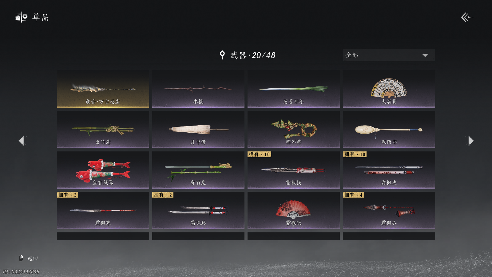【高战力男号 绝版套 瑞鹤仙 稀有栖彤霞 武学 万剑归宗 带一个未用八音 螃蟹YEXNQ6160】 风华值28132 武林造诣(鹅)36148 已用八音窍数量2 未用八音窍数量1 等级100 角色性别【文本】男 【绝境】 【无换绑CD】 【未绑定或可换绑】 【不支持人脸包赔】 【男】 【无】 【是】 【是】 【否】 稀有套装5 稀有发型1 稀有武学奇术1 套装2 武器外观3 坐骑5 稀有套装:瑞鹤仙,葬花吟,问春何苦,乌纱红漪,晏平生; 稀有发型:栖彤霞; 稀有武学奇术:万剑归宗; 套装:蝎心蛟影,蜀戏春; 武器外观:断鳞光,木棍,霜枫诀; 坐骑:白义,盗骊,飞毛腿,飒露子,仁道驴;