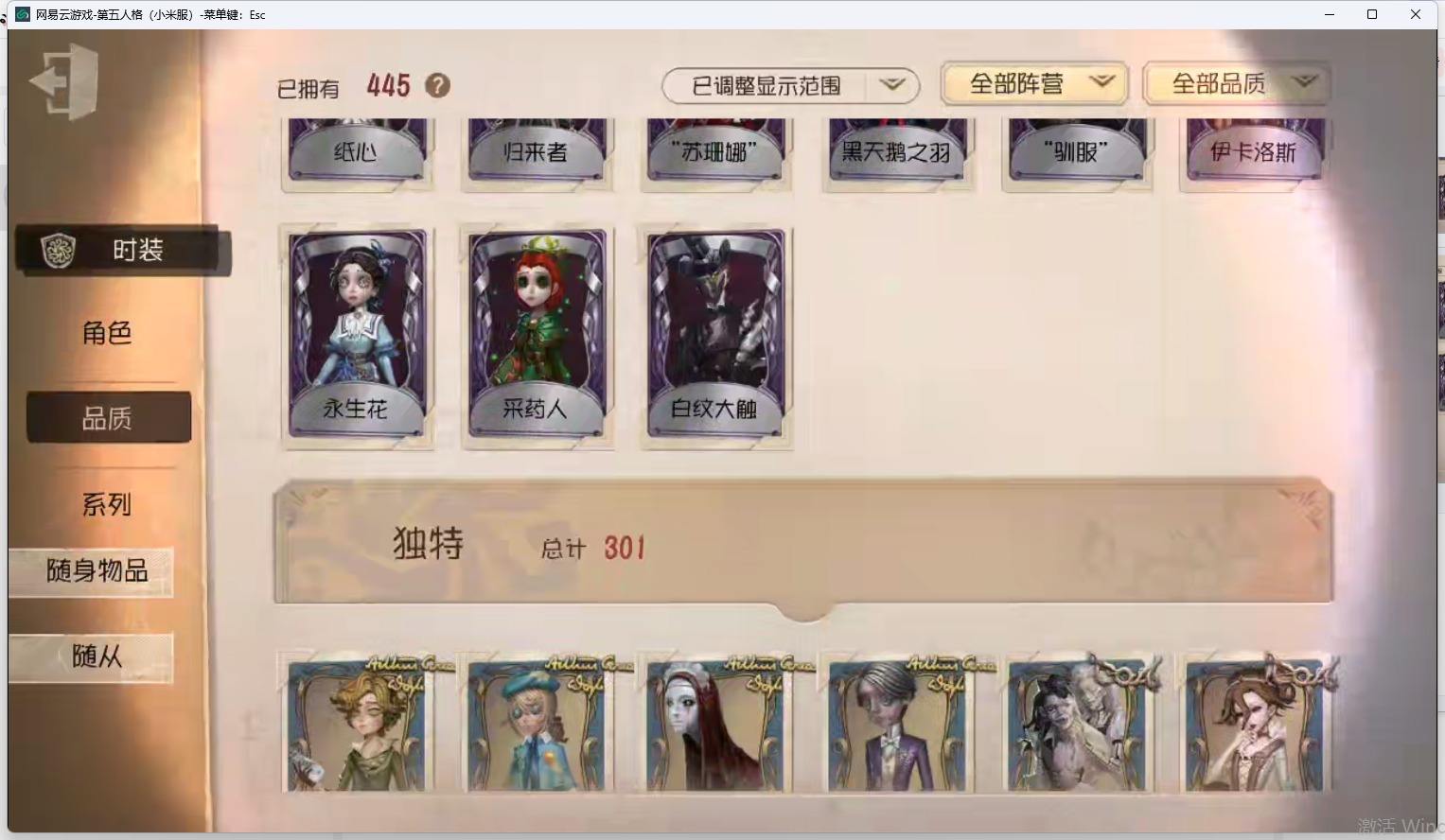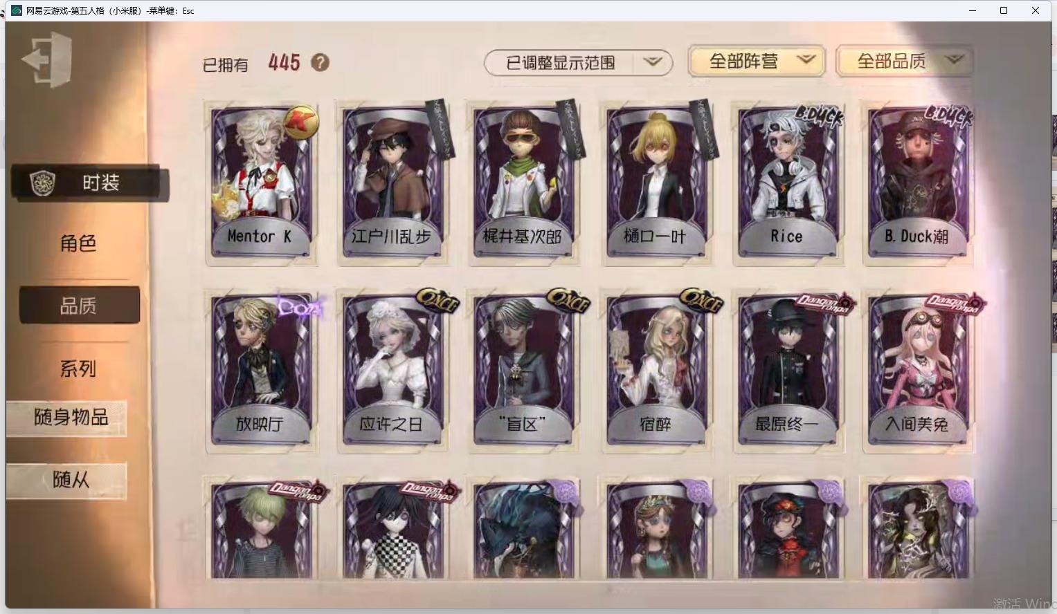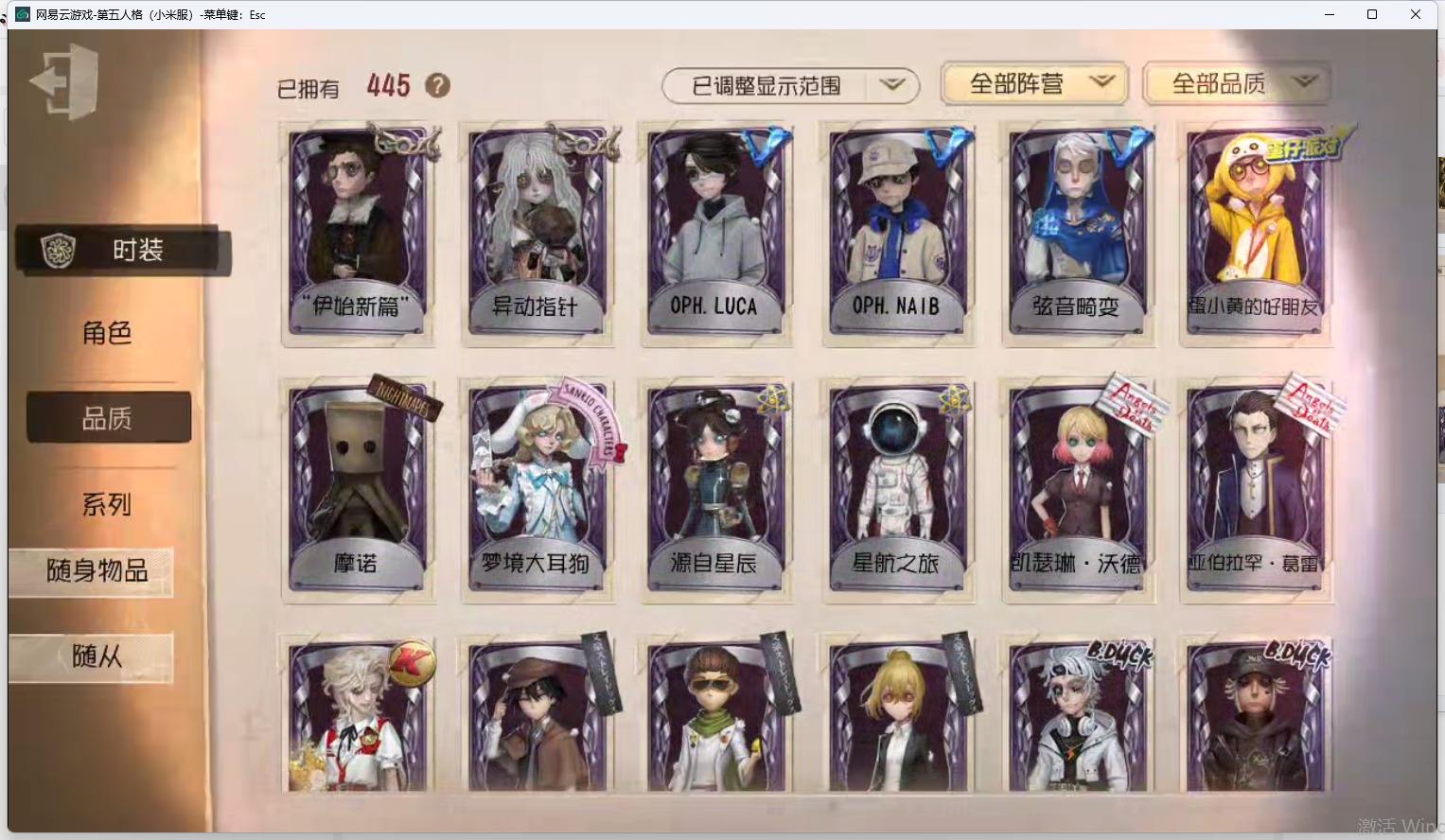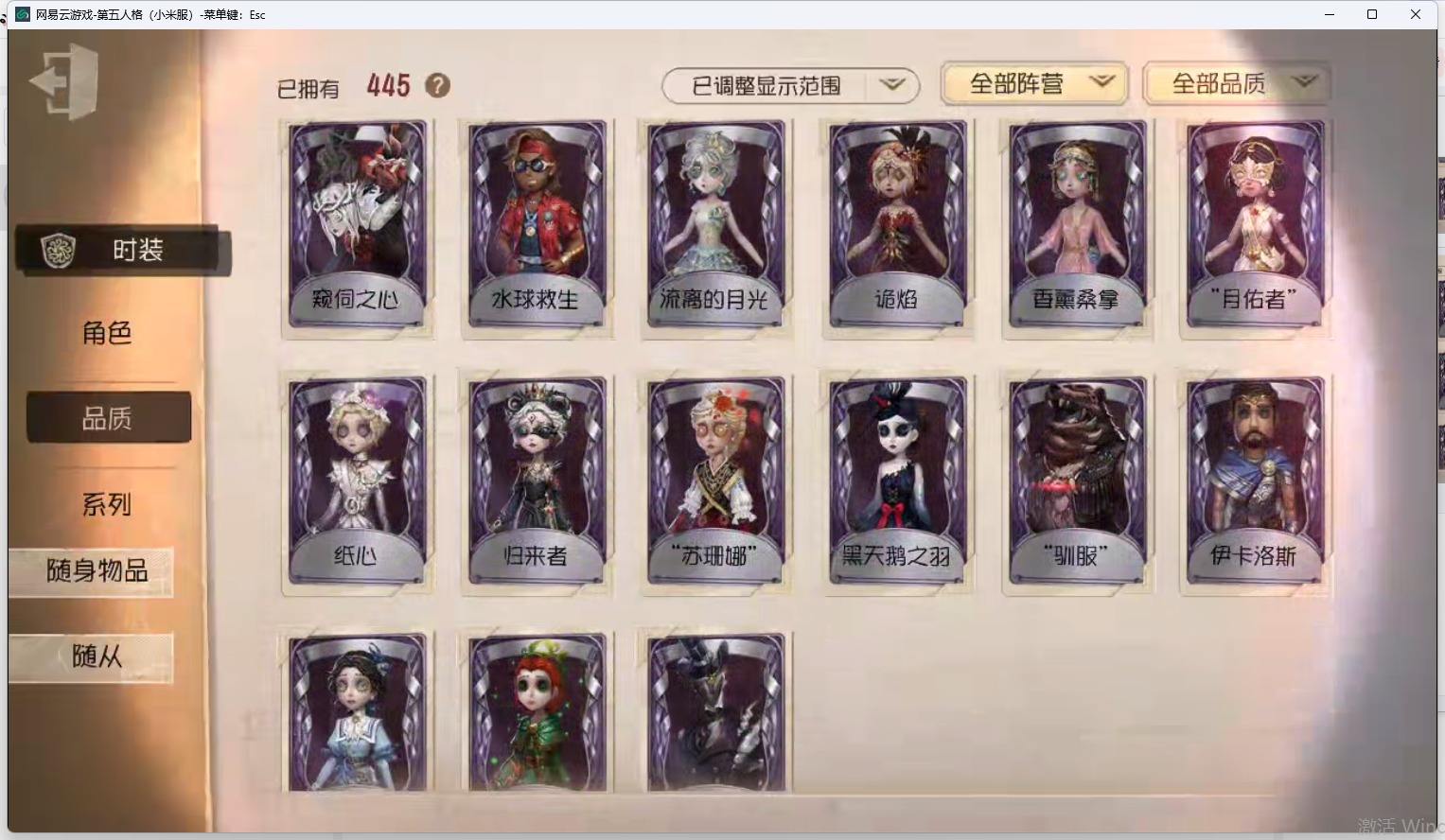 [14028274]OPPO-非账号转移 手机账号 559时装 23金皮 147紫皮 20随从 186随身物品 【时装】:勘探员-盖提亚之遗,爱哭鬼-摩诺,红蝶-壹原侑子,渔女-Chef K,小提琴家-不羁的浪漫,野人-雪原猎人,佣兵-柴郡猫,佣兵-赤井秀一,蜘蛛-花祭,“囚徒”-天海兰太郎,“小女孩”-欧律狄刻,调香师-提炼师,记者-伊布,医生-司药,雕刻家-善忘的海马体,记者-华生小姐,画家-掌中篆记,幸运儿-蛋小黄的好朋友,调香师-Buffy,教授-紧急运输,古董商-菌丝研究,画家-多色印刷,蜘蛛-不息载械,木偶师-义体再构,小说家-“伊始新篇”,击球手-迫降专家,空军-尼德霍格,空军-寒香舞,空军-毛利兰,机械师-不会枯萎的花,机械师-小红帽,26号守卫-蛋壳先生,爱哭鬼-点金,病患-逃罪之人,“杰克”-盛宴伯爵,红夫人-贝拉夫人,红蝶-花嫁,调香师-今夜不再,调香师-Lady K,“小女孩”-滚滚伙伴,医生-罪木蜜柑,幸运儿-苗木诚,幸运儿-拉塔托斯克,孽蜥-窃梦行者,盲女-暗金蛋糕,盲女-吉尔达,梦之女巫-川上富江,“囚徒”-蝰