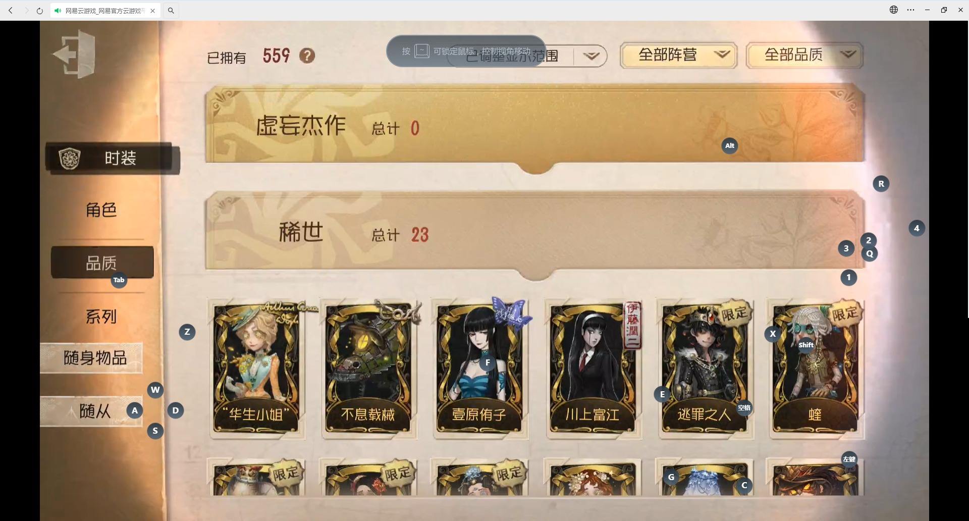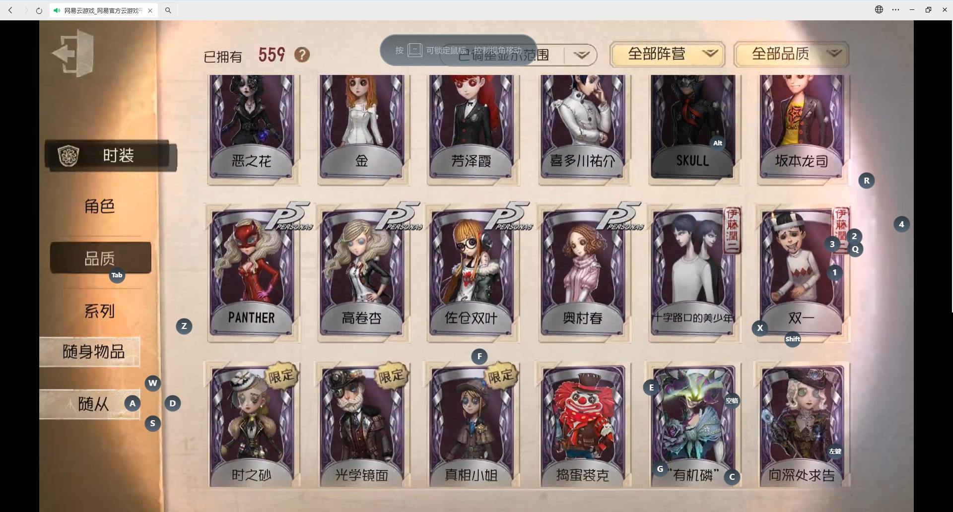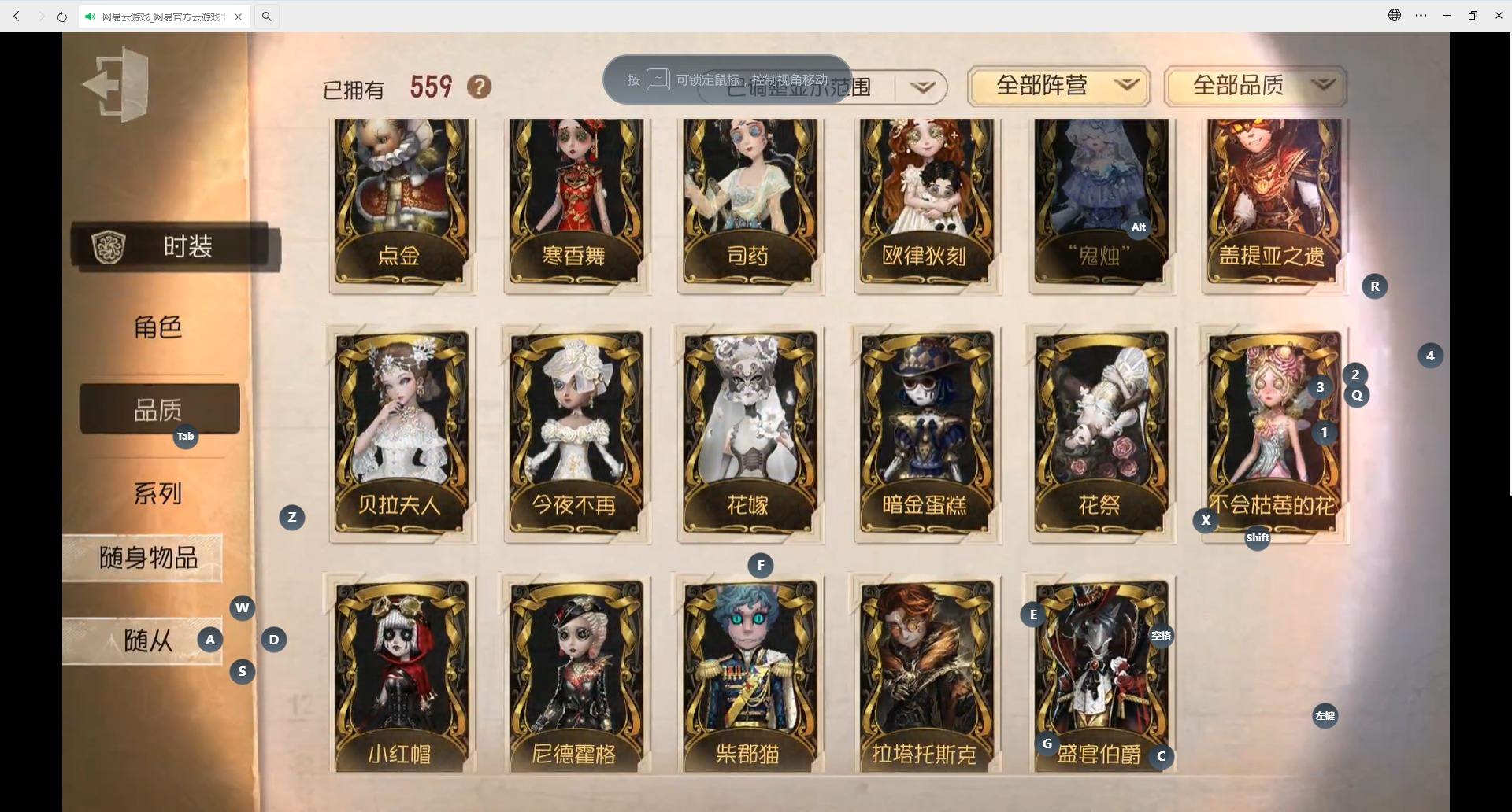 [14028274]OPPO-非账号转移 手机账号 559时装 23金皮 147紫皮 20随从 186随身物品 【时装】:勘探员-盖提亚之遗,爱哭鬼-摩诺,红蝶-壹原侑子,渔女-Chef K,小提琴家-不羁的浪漫,野人-雪原猎人,佣兵-柴郡猫,佣兵-赤井秀一,蜘蛛-花祭,“囚徒”-天海兰太郎,“小女孩”-欧律狄刻,调香师-提炼师,记者-伊布,医生-司药,雕刻家-善忘的海马体,记者-华生小姐,画家-掌中篆记,幸运儿-蛋小黄的好朋友,调香师-Buffy,教授-紧急运输,古董商-菌丝研究,画家-多色印刷,蜘蛛-不息载械,木偶师-义体再构,小说家-“伊始新篇”,击球手-迫降专家,空军-尼德霍格,空军-寒香舞,空军-毛利兰,机械师-不会枯萎的花,机械师-小红帽,26号守卫-蛋壳先生,爱哭鬼-点金,病患-逃罪之人,“杰克”-盛宴伯爵,红夫人-贝拉夫人,红蝶-花嫁,调香师-今夜不再,调香师-Lady K,“小女孩”-滚滚伙伴,医生-罪木蜜柑,幸运儿-苗木诚,幸运儿-拉塔托斯克,孽蜥-窃梦行者,盲女-暗金蛋糕,盲女-吉尔达,梦之女巫-川上富江,“囚徒”-蝰