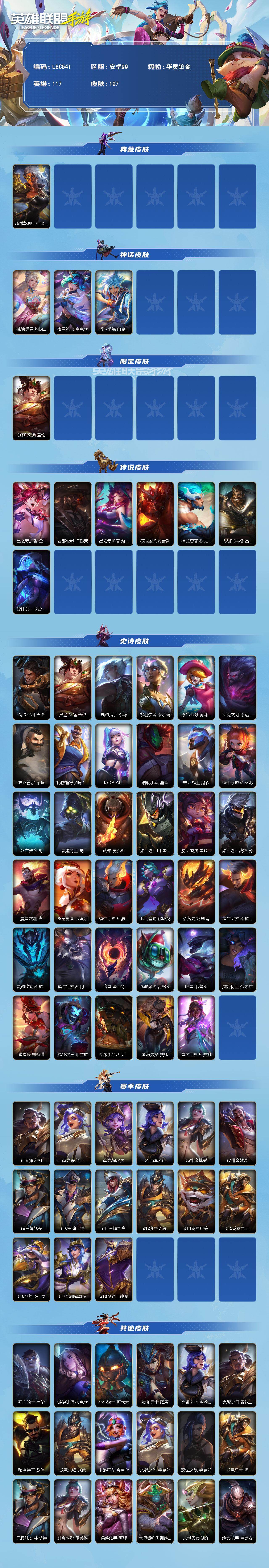 LC625671 皮肤数量73 英雄数量96 神话皮肤数量2 传说皮肤数量17 召唤师等级79 史诗皮肤数26 【可排位】 【有防沉迷】 【是本人】 【5】 【支持人脸包赔】 【未绑定或可换绑】