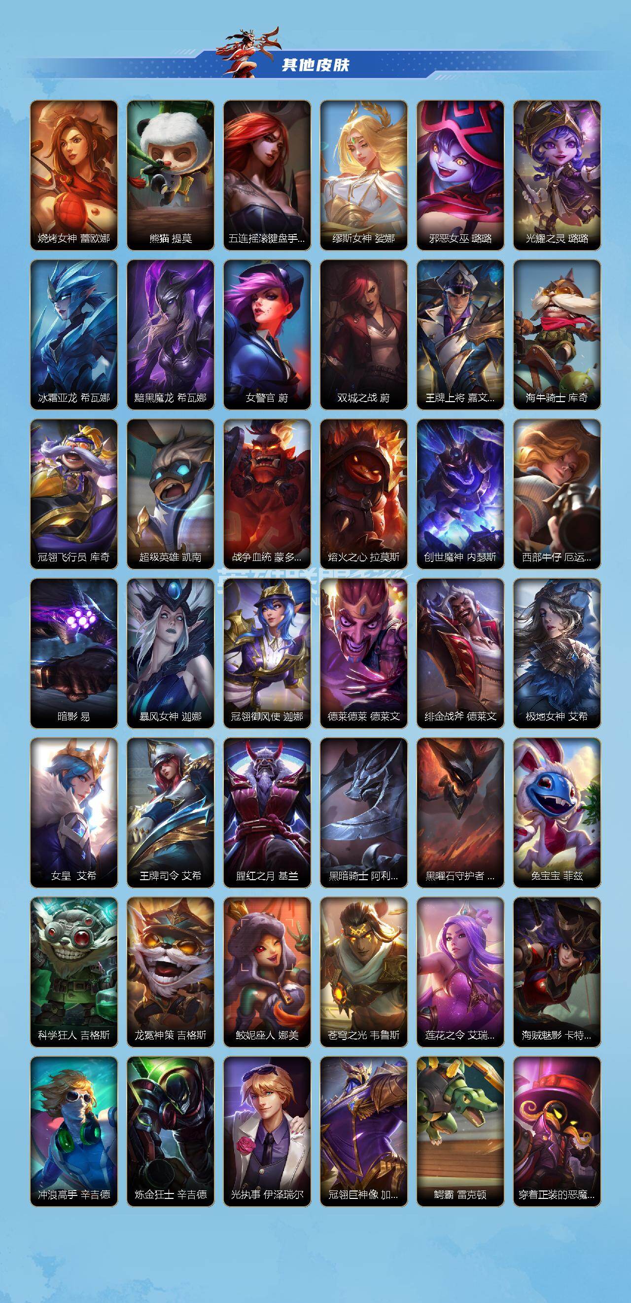 商品描述:【LSC541】117英雄/107皮肤/1典藏/4神话/7传说/华贵铂金/超武乾坤:征服 莎弥拉/桃映暖春 灼灼芳菲 拉克丝/夜星流火 金克丝/战斗学院 白金学长 伊泽瑞尔/张辽 文远 盖伦/星之守护者 金克丝/西部魔影 卢锡安/星之守护者 落 霞/炼狱魔犬 内瑟斯/神龙尊者 驭风啸龙 易/光明哨兵 格雷福斯/源计划:联合 艾希/钢铁军团 盖伦/摄魂猎手 凯隐/黎明使者 卡尔玛/泳池派对 奥莉安娜/恶魔之刃 泰达米尔/末路管家 布隆/礼物选好了吗? 布隆/K/DA ALL OUT 伊芙琳/清剿小队 潘森/未来战士 潘森/福牛守护者 安妮/死亡誓约 劫/灵能特工 劫/武神 贾克斯/源计划:山