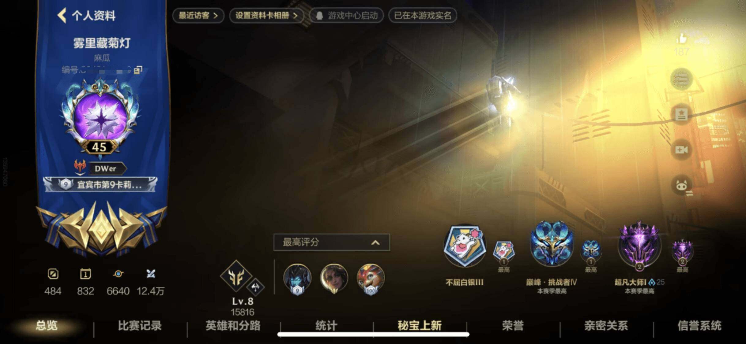 安卓Q区:可二次实名 英雄132 皮肤324 1典藏4神话42传说164史诗 璀璨钻石Ⅰ