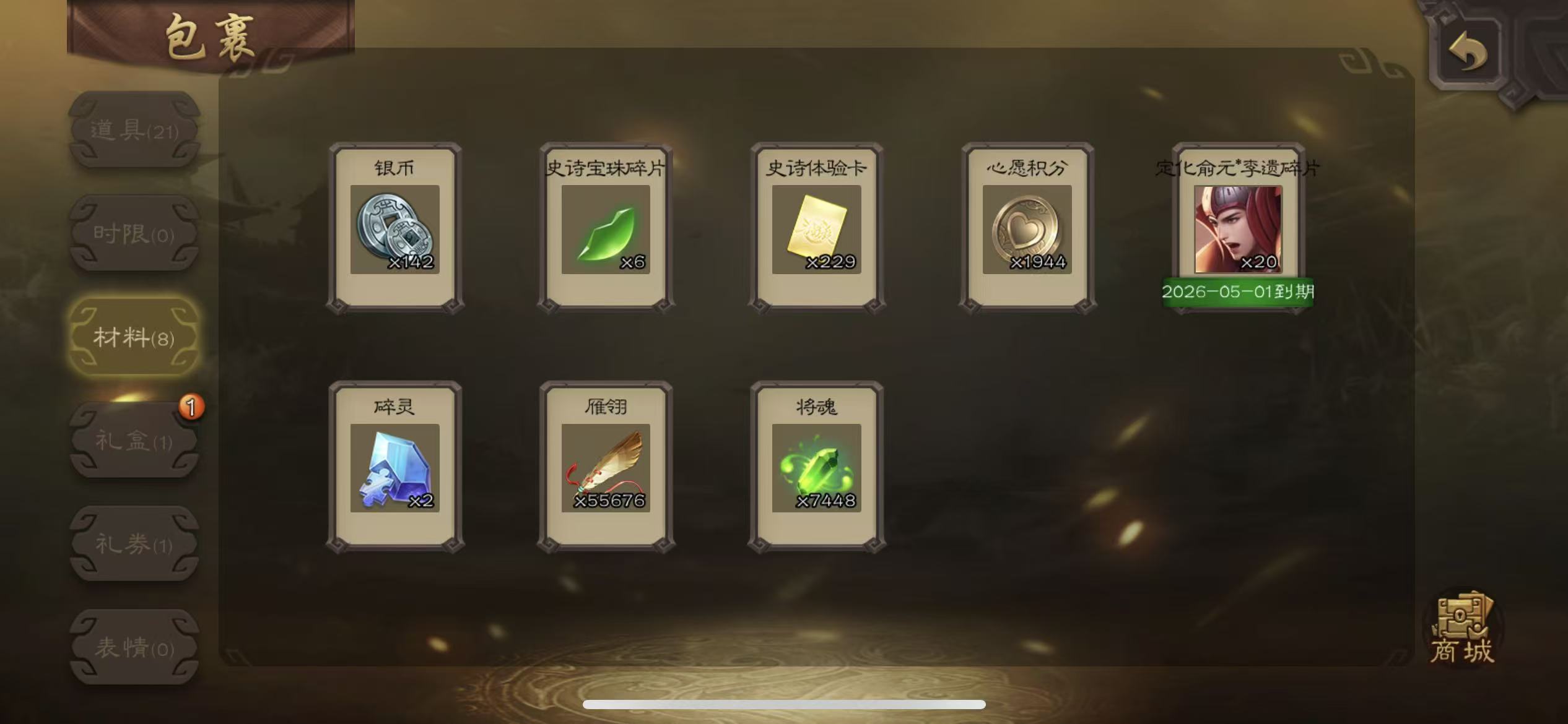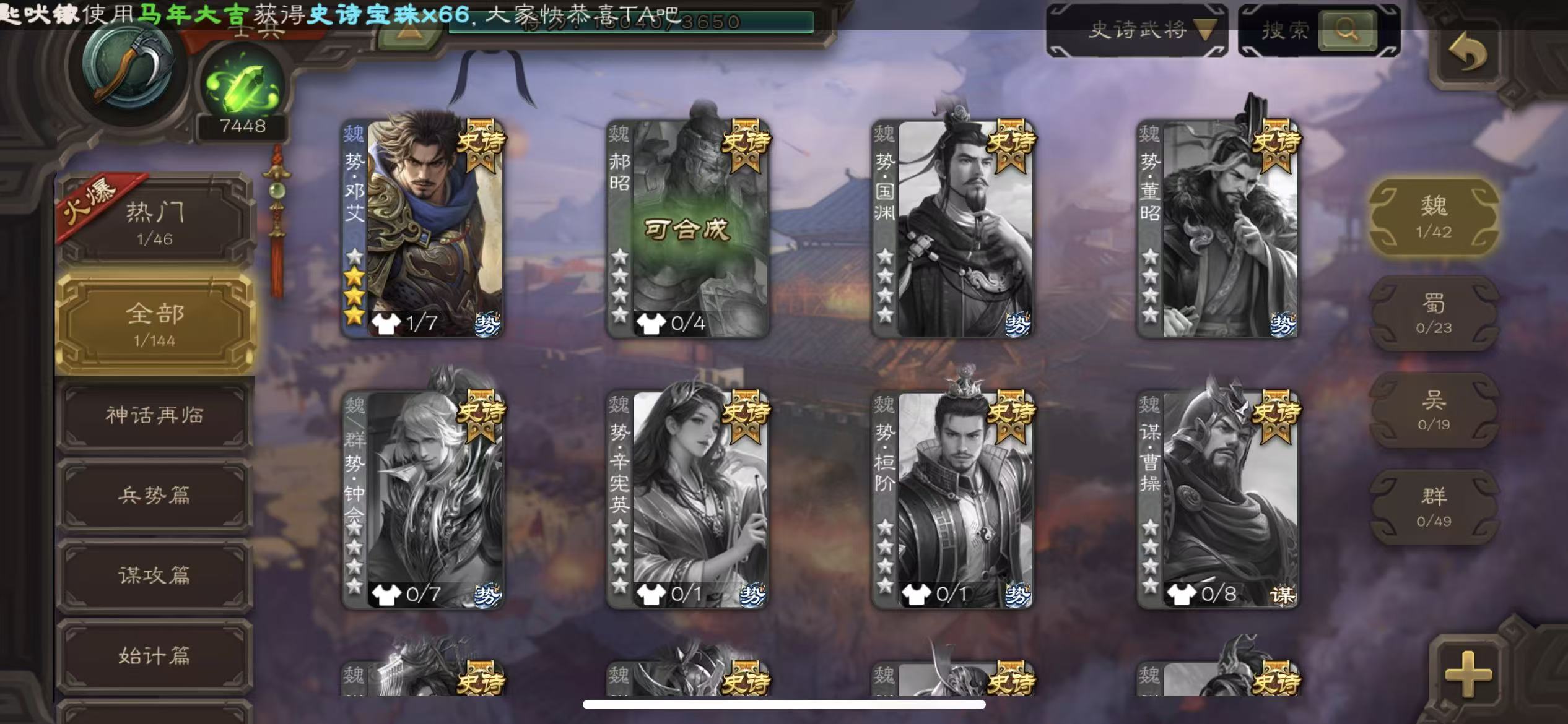 商品描述:士兵势邓艾7500将魂5.7万羽毛三卡
