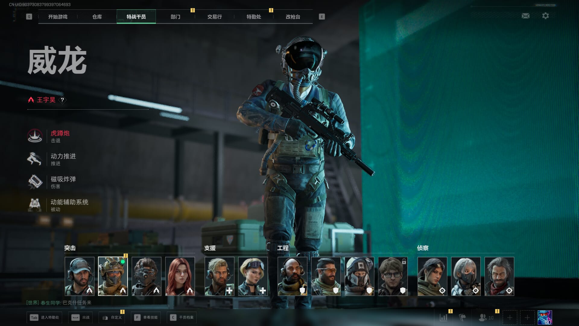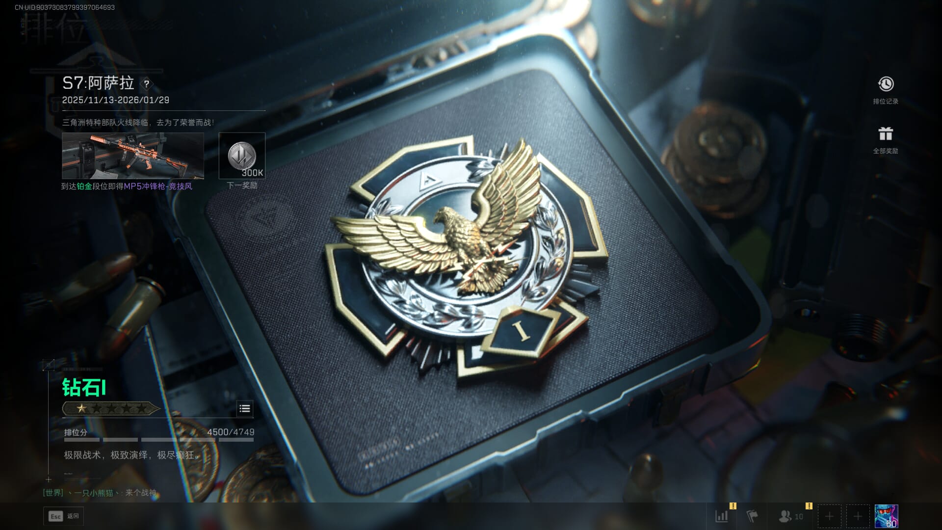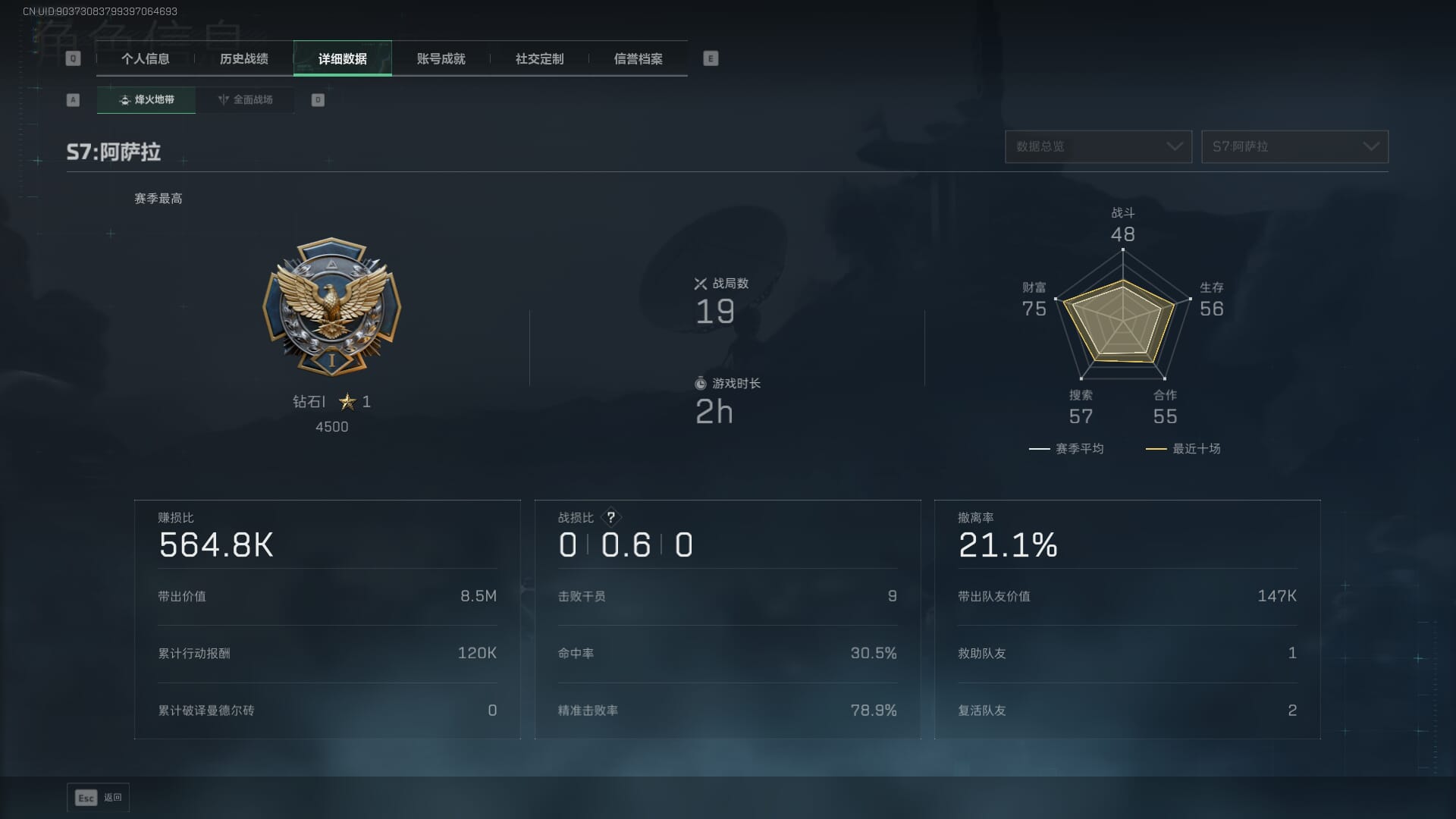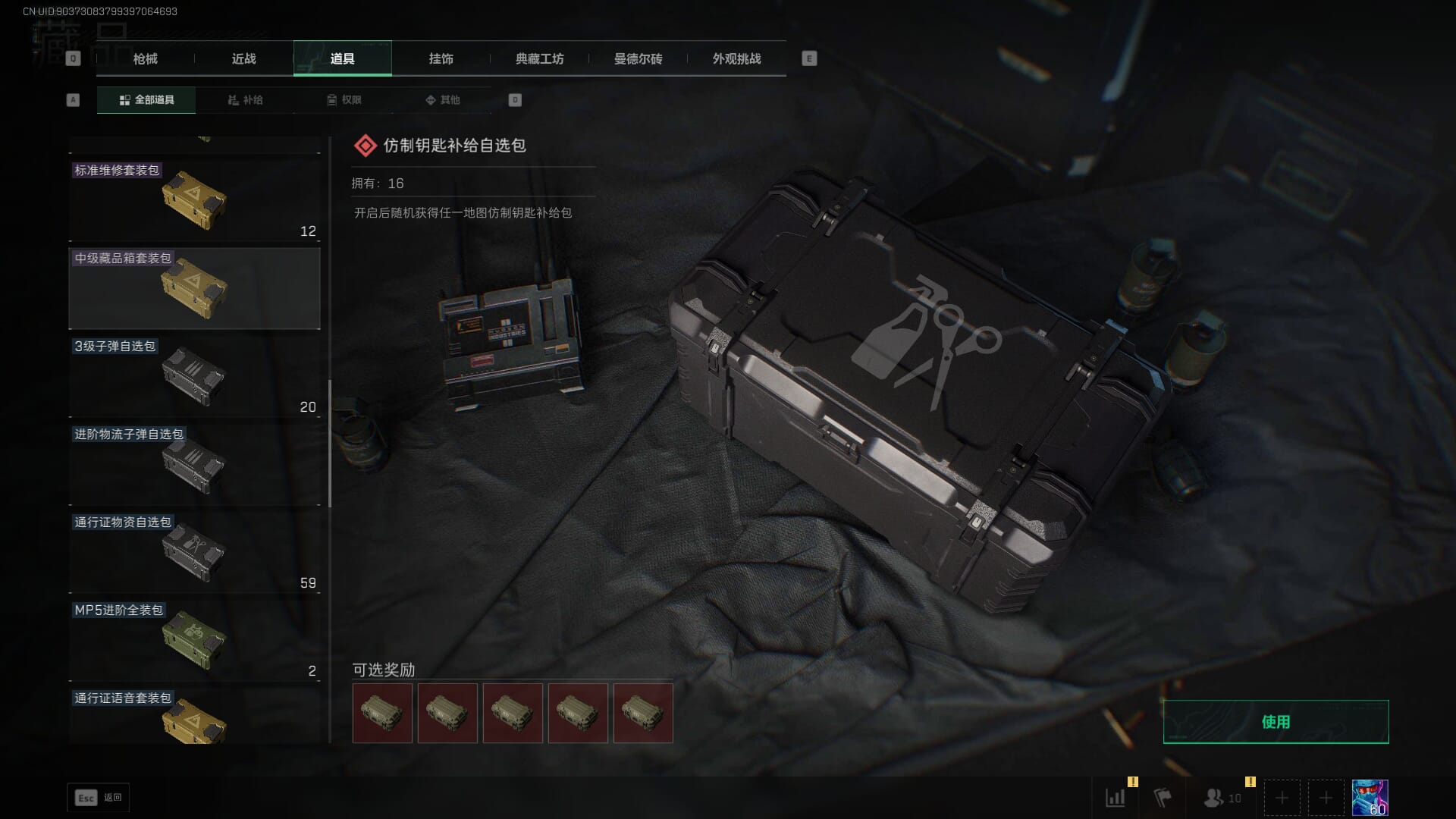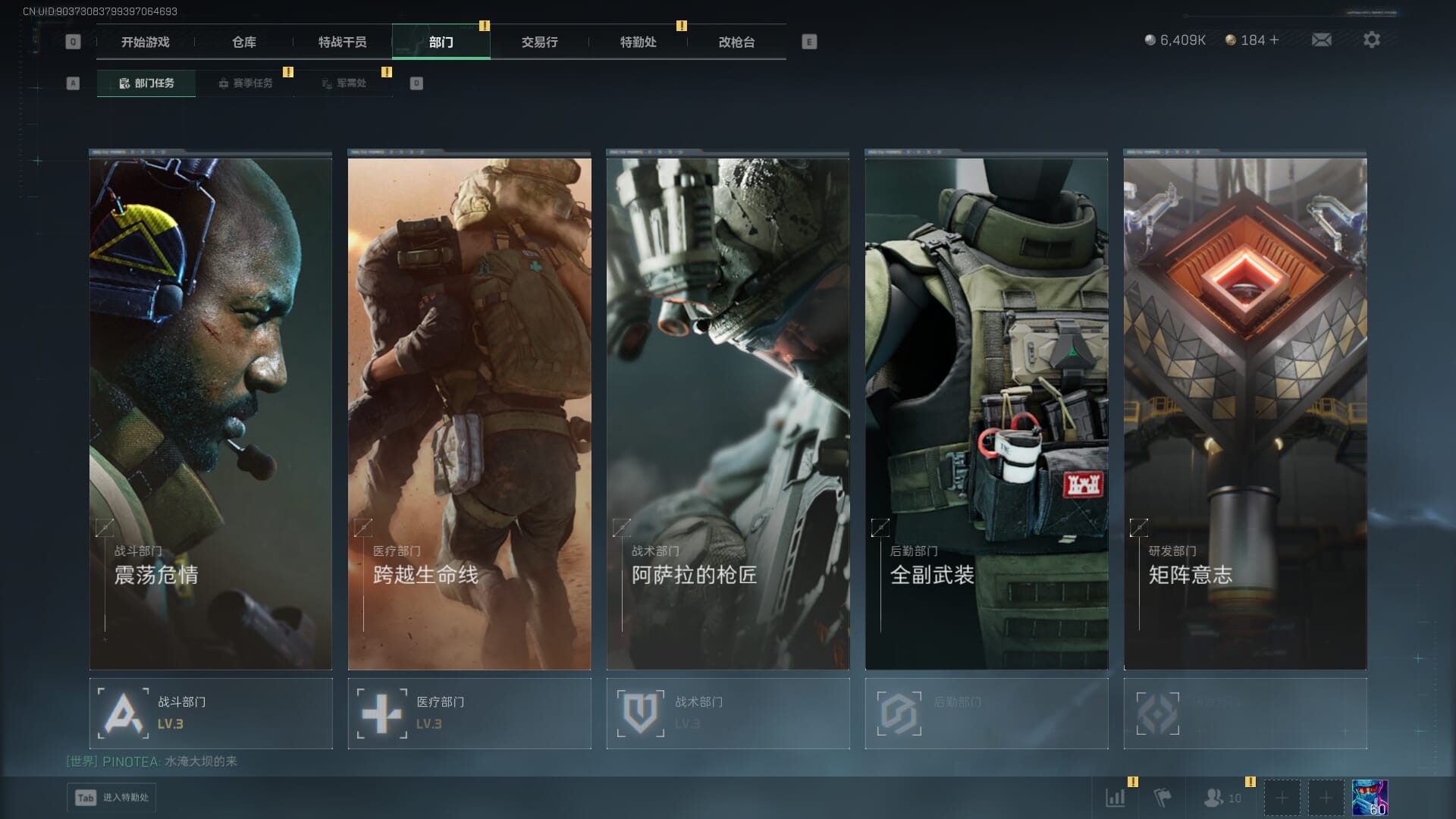 总资产:62.2M,哈夫币:84W,武器皮肤:5,黑鹰_,战场60级:列兵,【安全箱】基础安全箱;【特勤处等级】仓库LV.5,靶场LV.4,训练中心LV.4;【干员皮肤】骇爪维什戴尔,红狼电锯惊魂;【近战武器】近战武器-黑鹰;【步枪皮肤】M4A1突击步枪-阿米娅,SCAR-H战斗步枪-启航,KC17突击步枪-电锯惊魂;【狙击步枪皮肤】R93狙击步枪-维什戴尔;